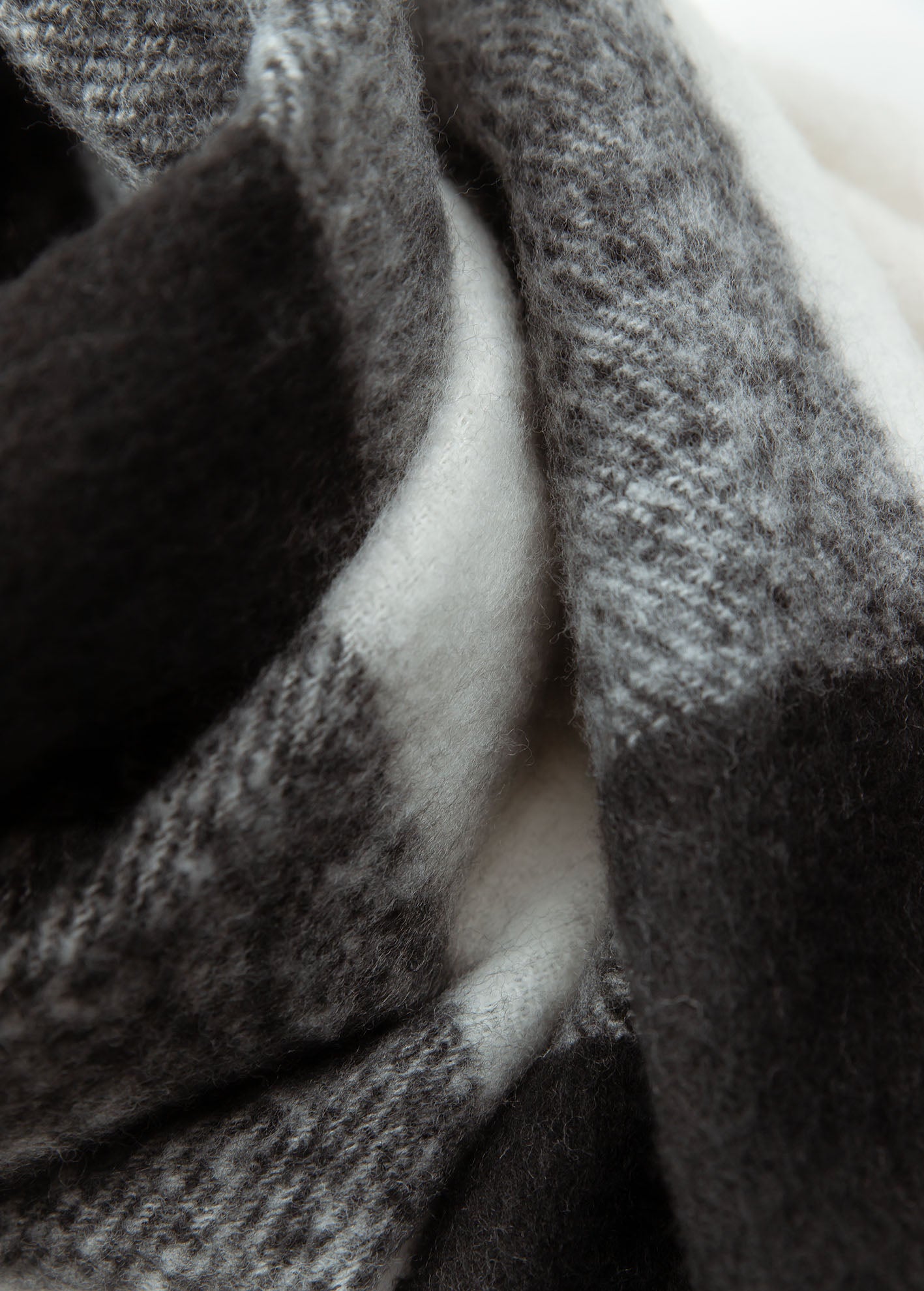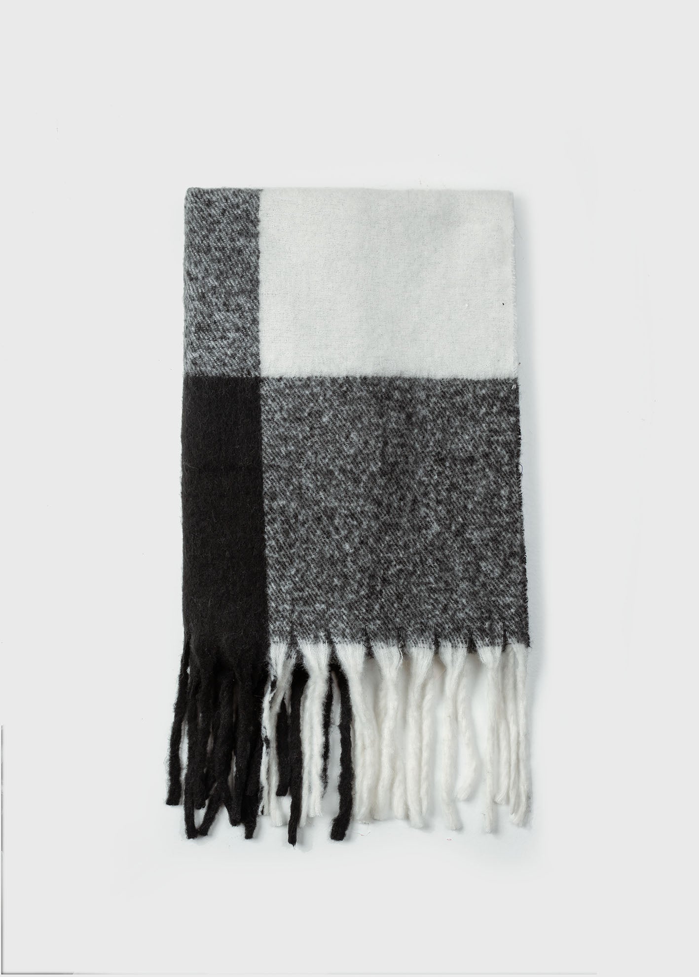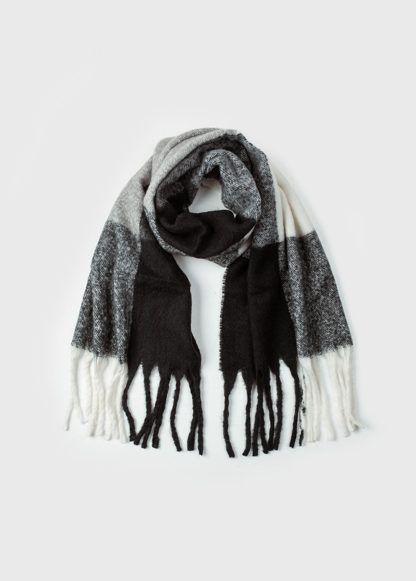Μακρύ κασκόλ με σχέδιο, απαλή υφή και κρόσσια στο τελείωμα.