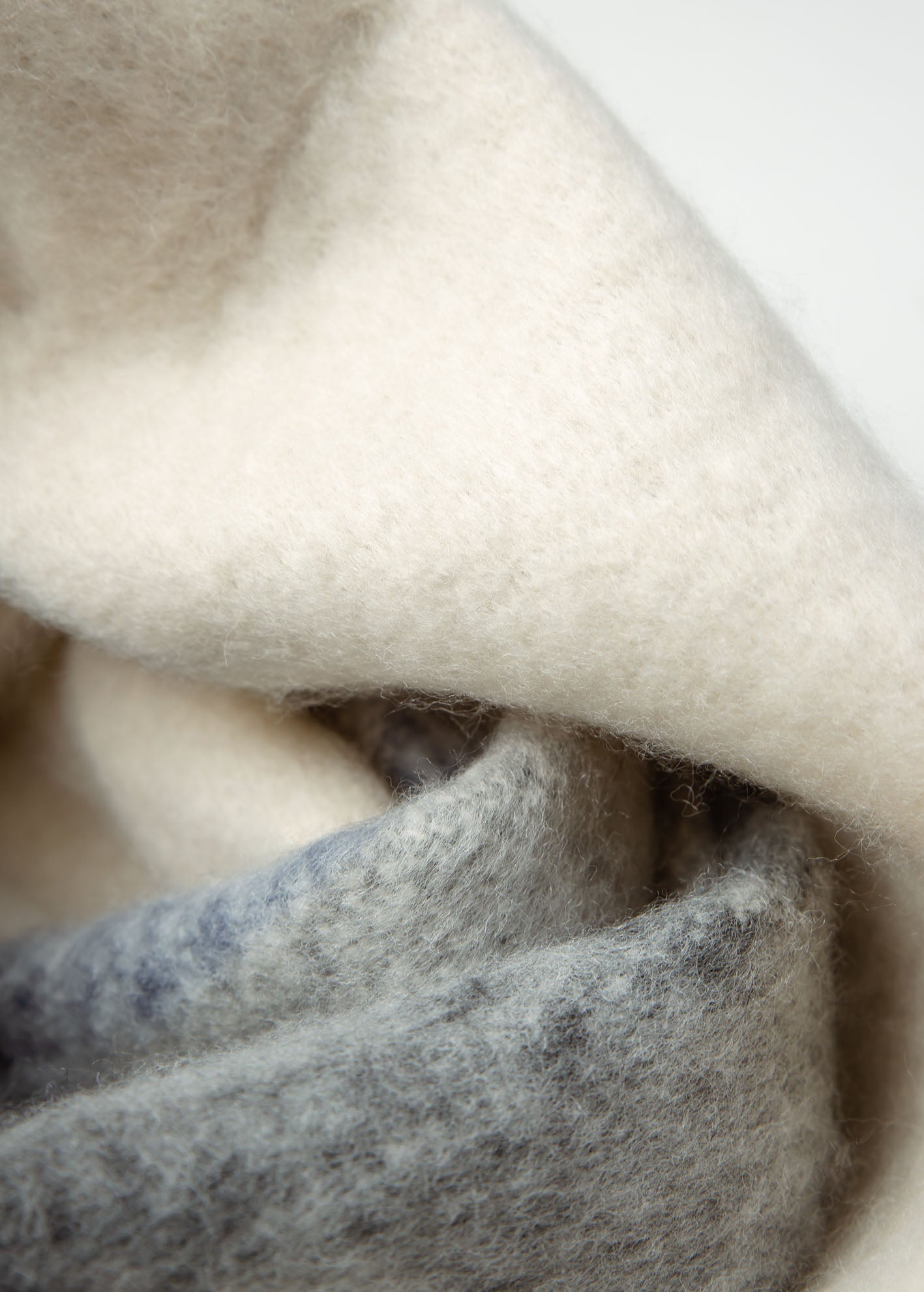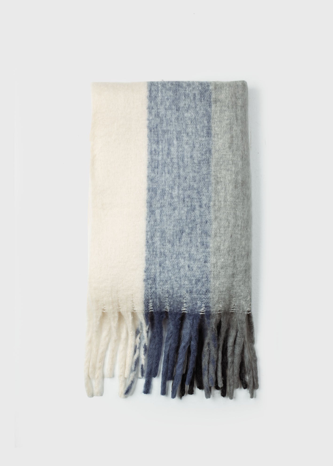 Μακρύ κασκόλ με σχέδιο, απαλή υφή και κρόσσια στο τελείωμα.