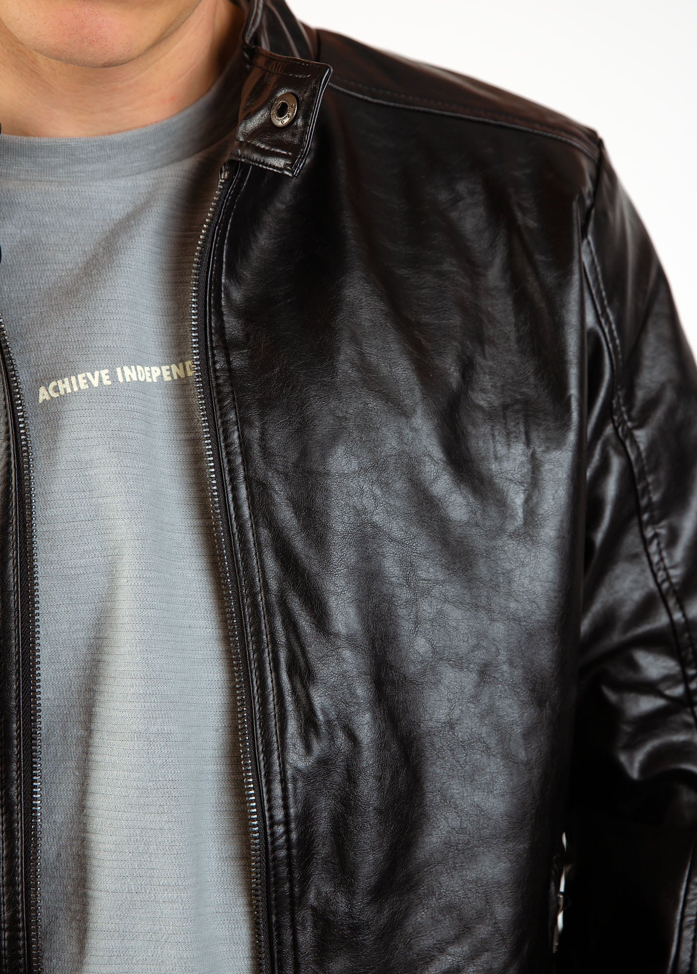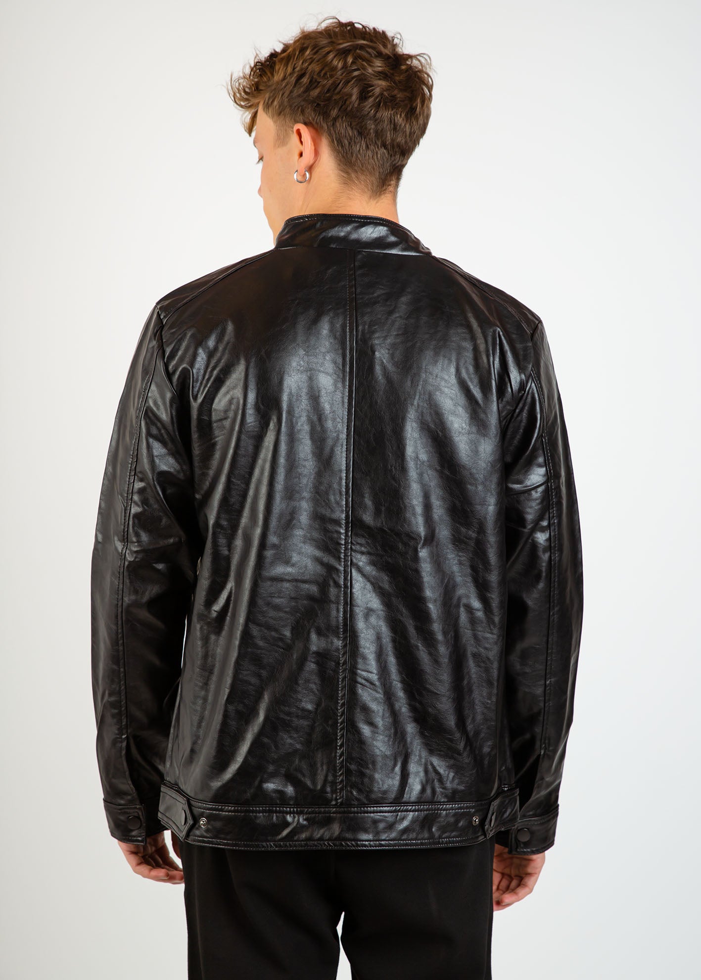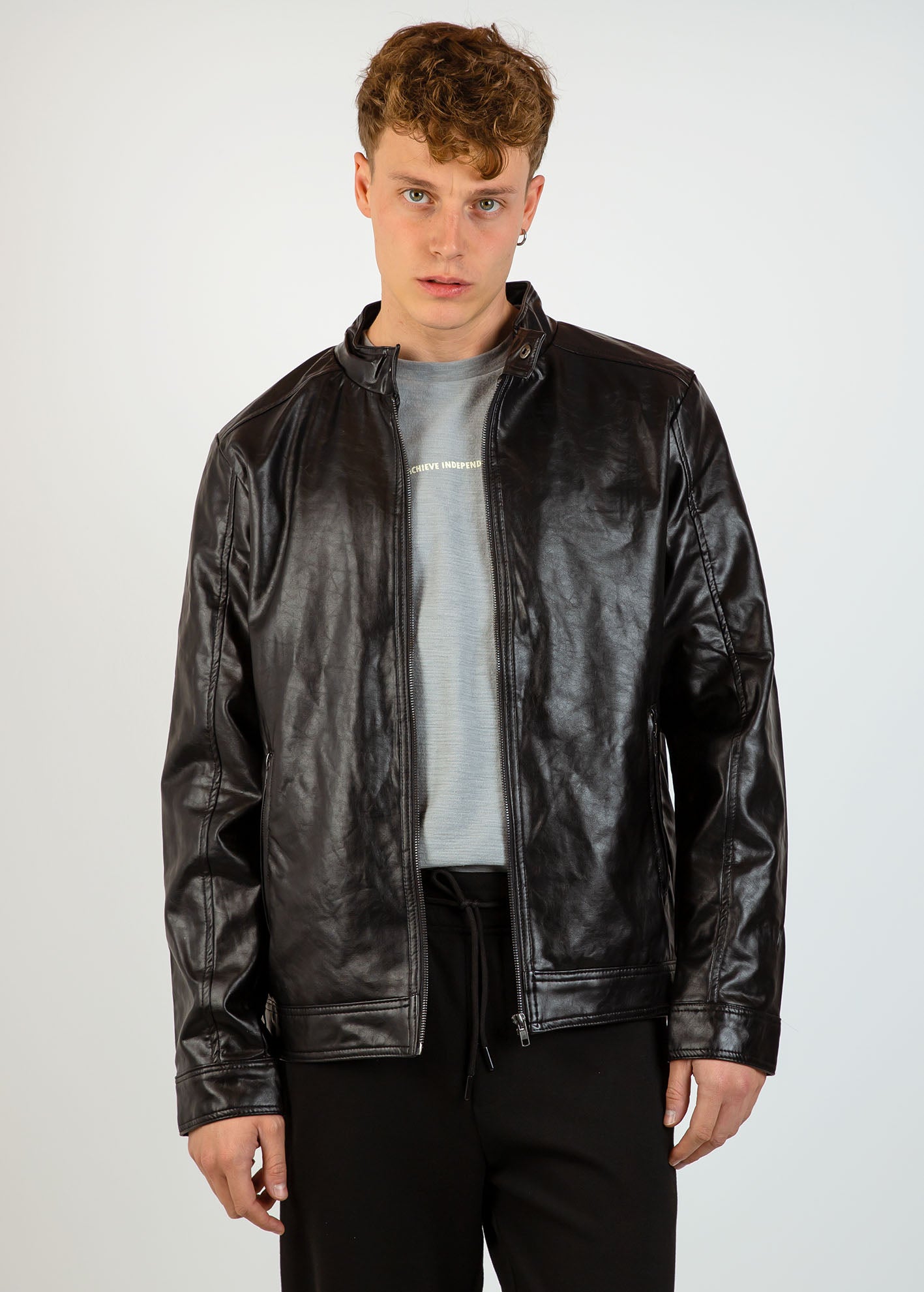 Ανδρικό τζάκετ όψη δερματίνης regular fit 'Avelino'-BLACK