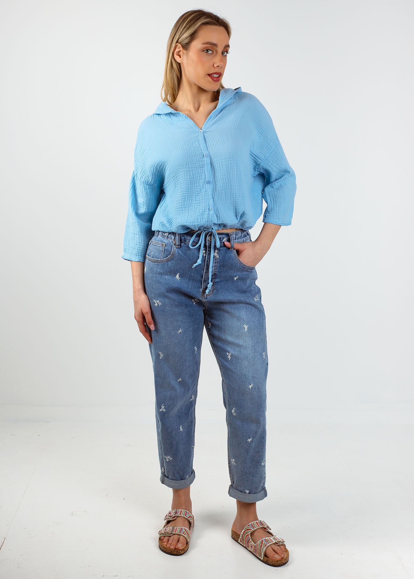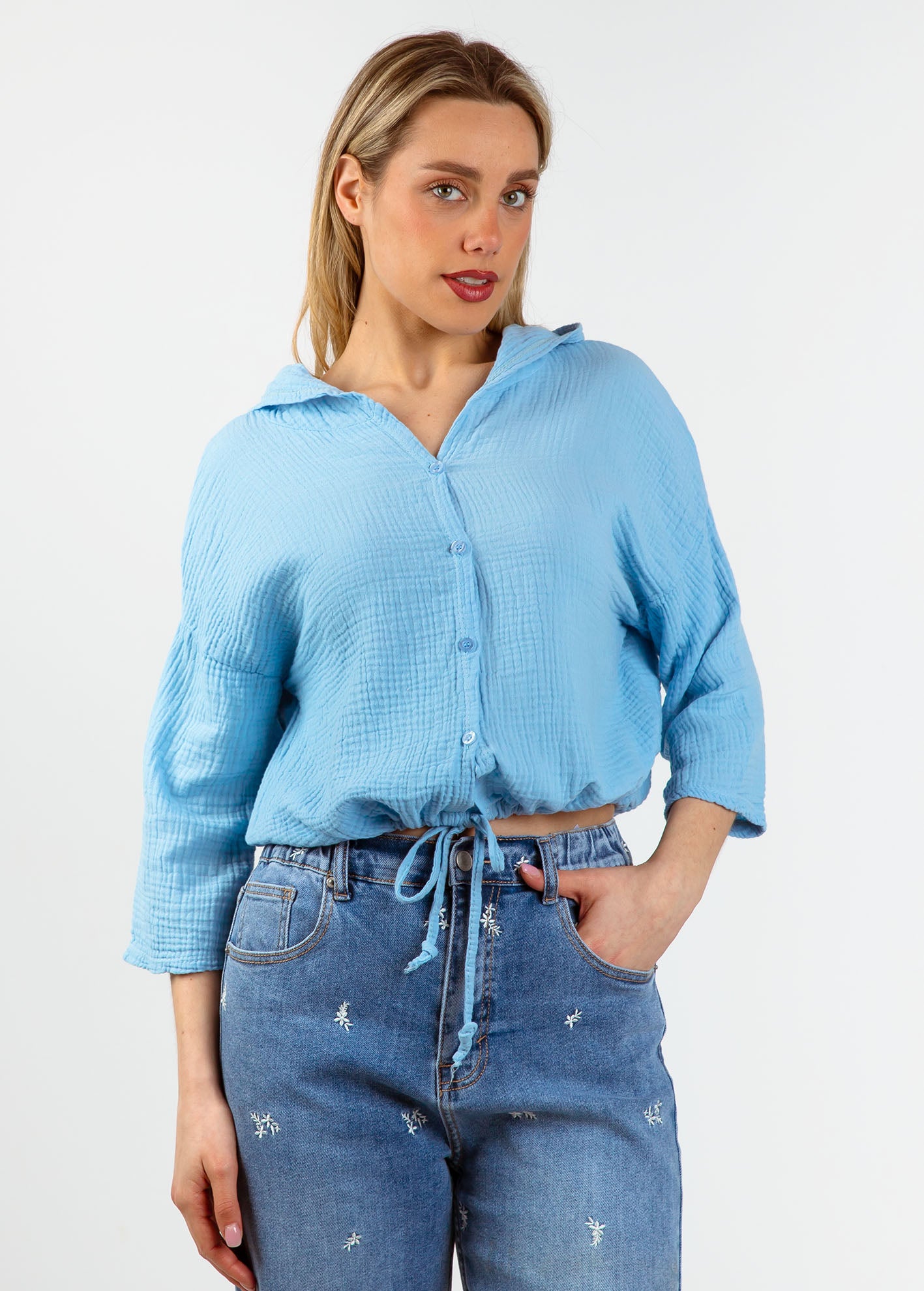 Γυναικείο γκοφρέ πουκάμισο 3/4 'Ma44ddy'-lblue