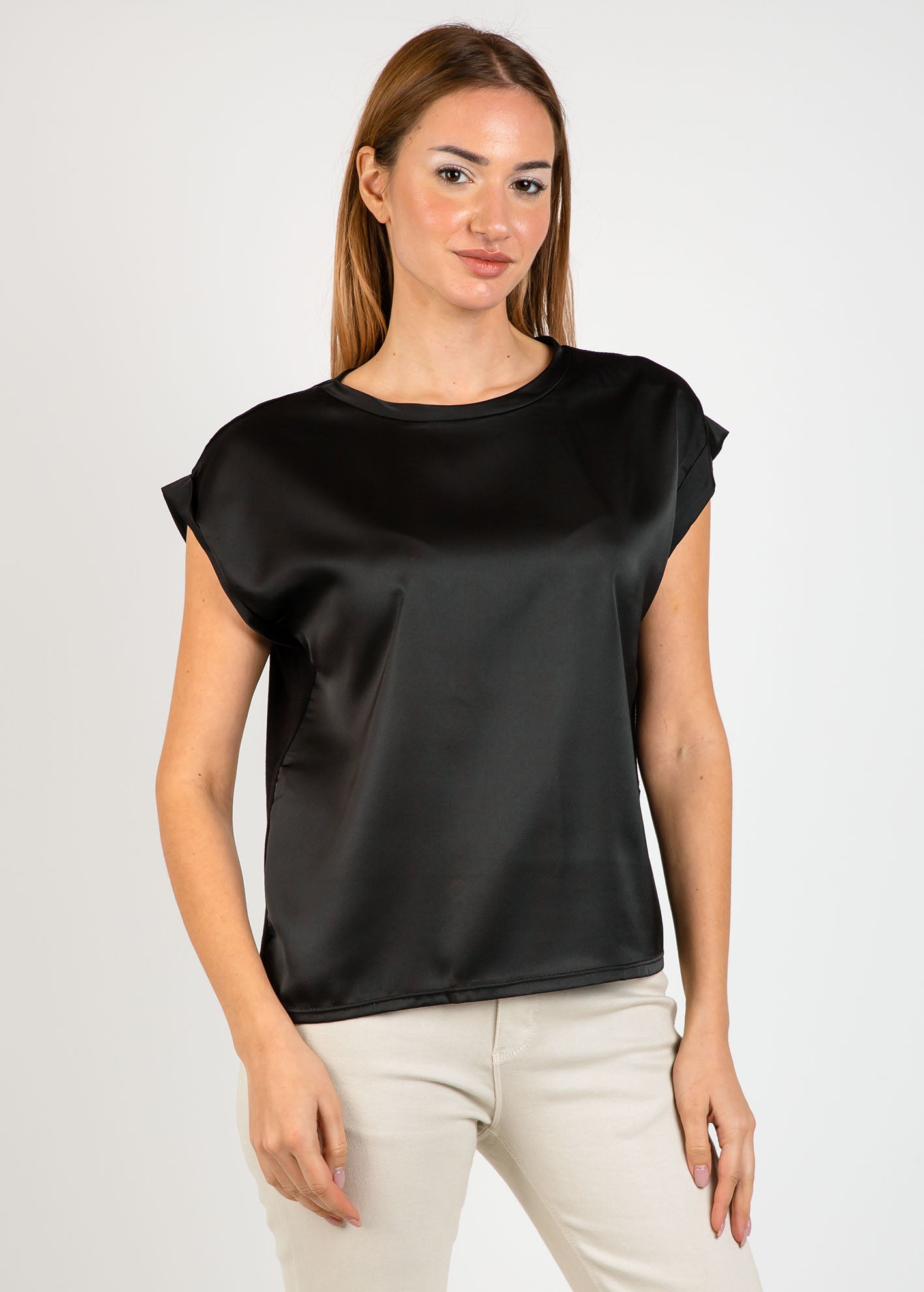 Σατινέ μπλούζα με κοντά γυριστά μανίκια και στρογγυλή λαιμόκοψη.
