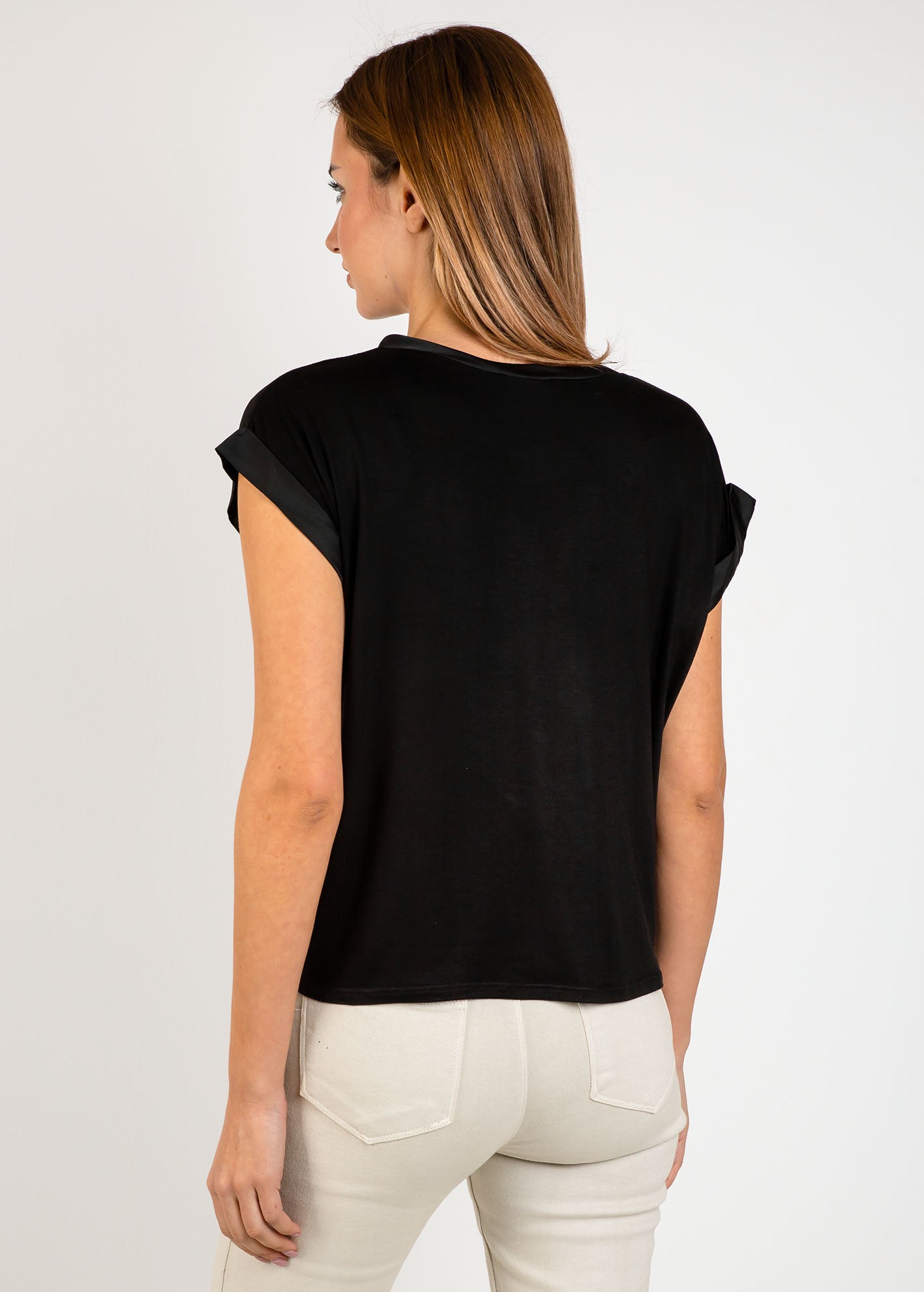 Γυναικεία μπλούζα κοντομάνικη σατέν όψη 'Sa44na'-black