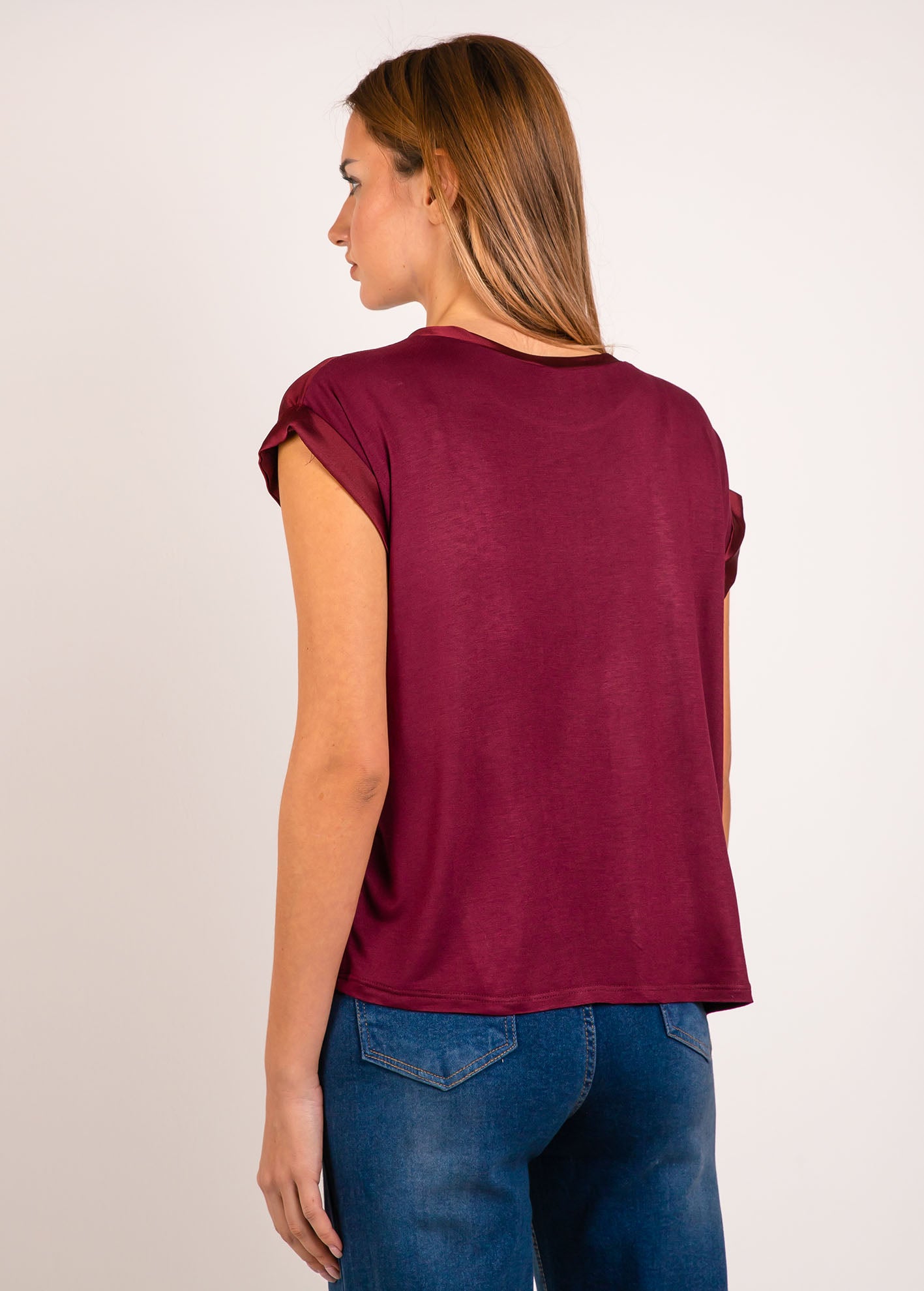 Γυναικεία μπλούζα κοντομάνικη σατέν όψη 'Sa44na'-ruby red