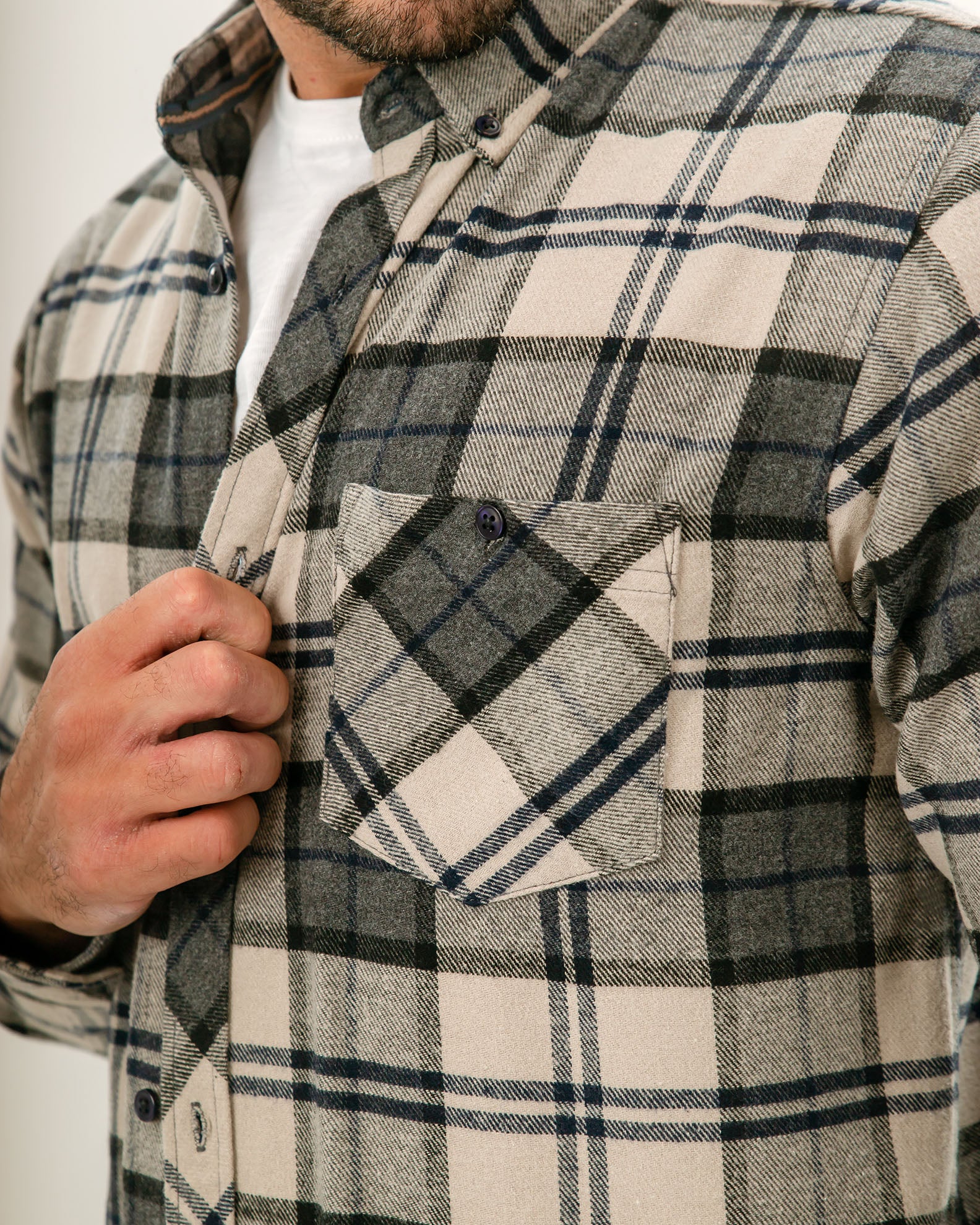 Κάρο φανελένιο πουκάμισο με μακρύ μανίκι, γιακά και κλείσιμο μπροστά με κουμπιά. Λεπτομέρεια με τσέπη στο μπούστο.