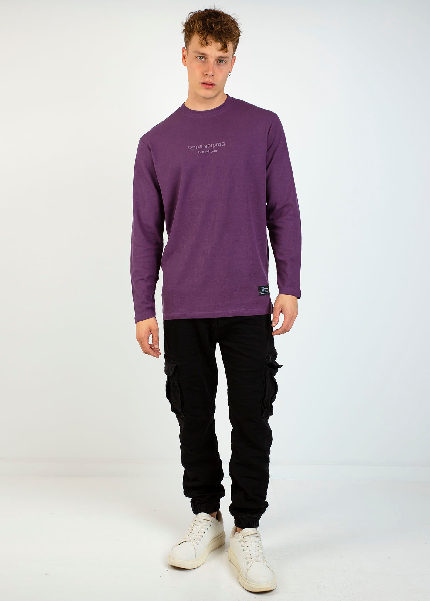 Ανδρική μπλούζα με ανάγλυφο τύπωμα 'Studios waffle'-PURPLE
