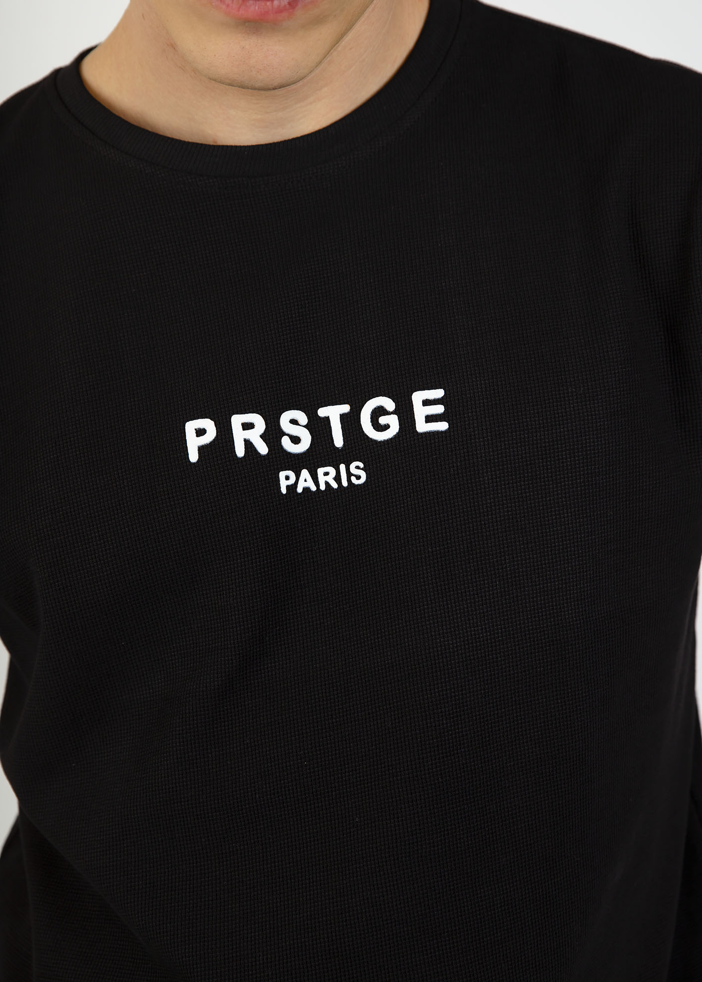 Ανδρική μπλούζα 'Prestige waffle' ανάγλυφη-BLACK