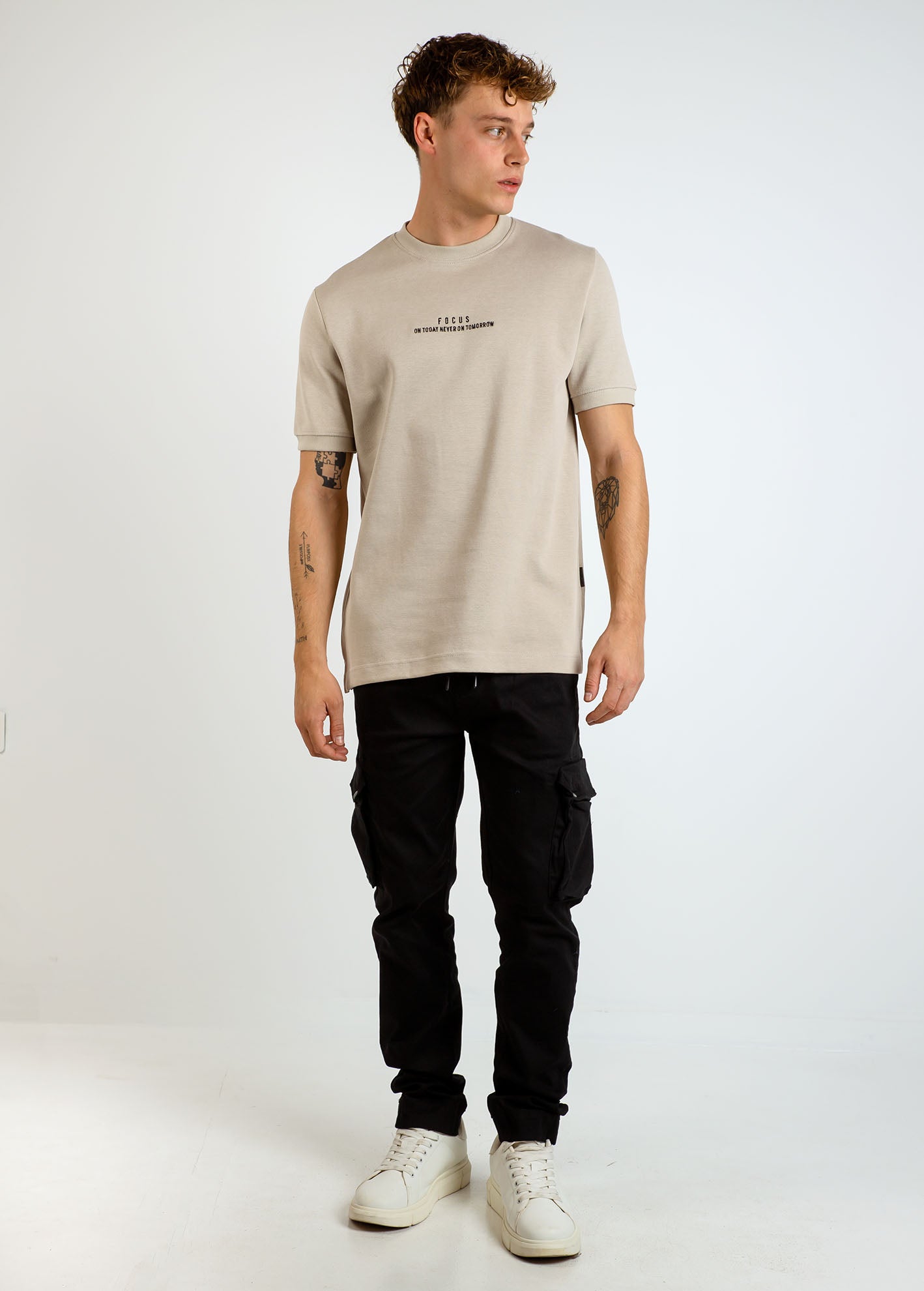 Ανδρική μπλούζα loose fit κοντομάνικη 'Focus'-BEIGE