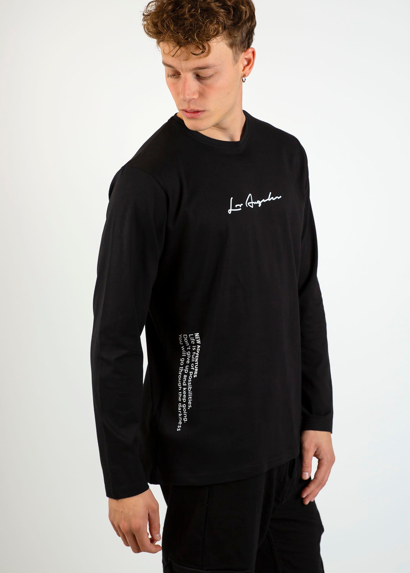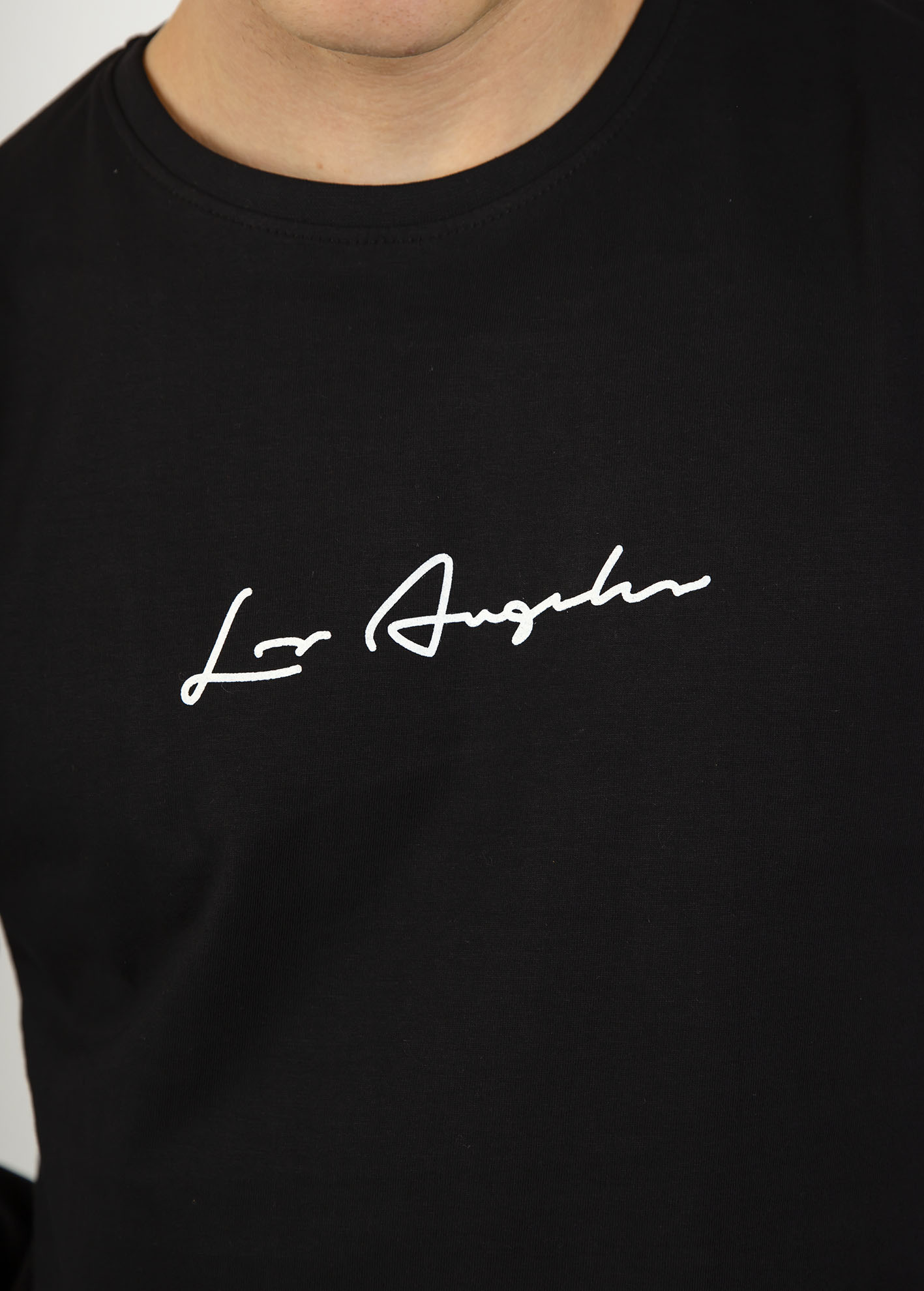 Ανδρική μπλούζα με μακρύ μανίκι και τύπωμα "Los Angeles"-BLACK