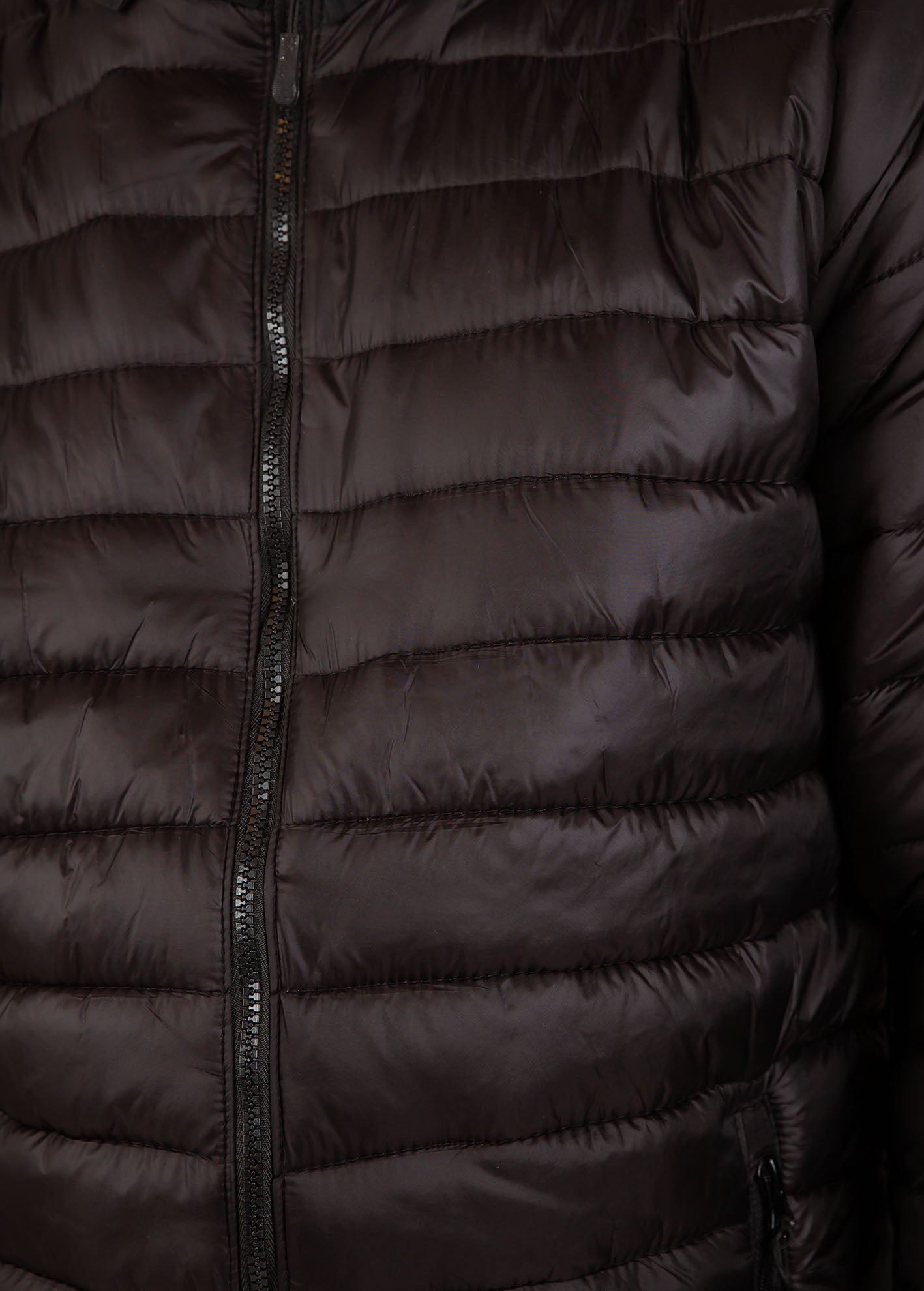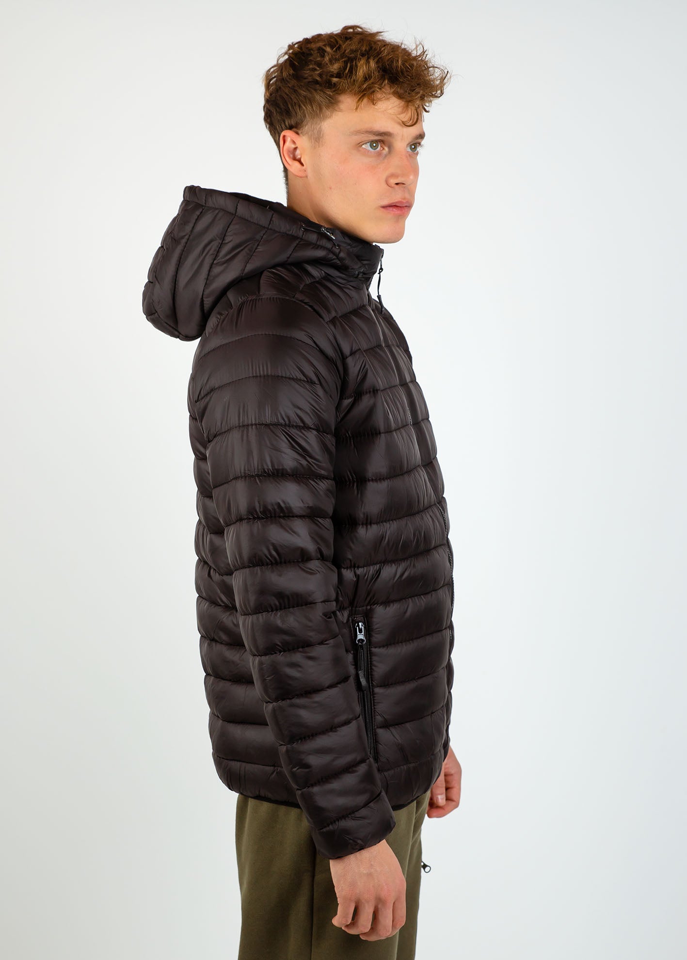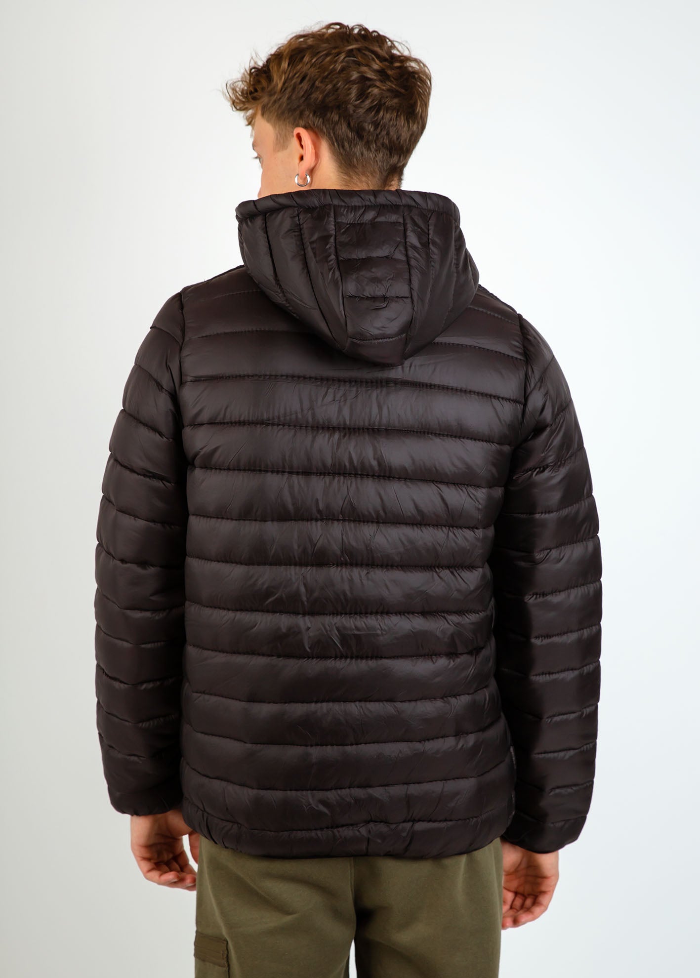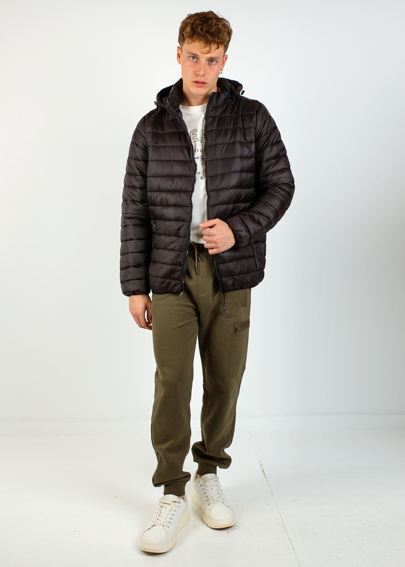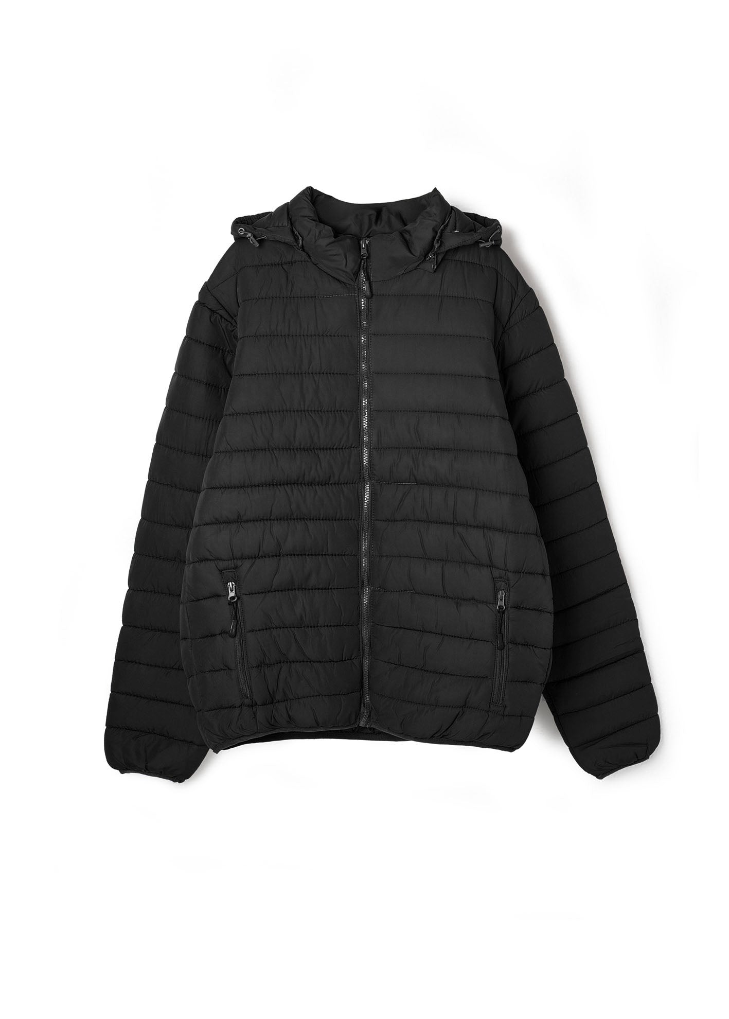 Μπουφάν bomber με επένδυση, αποσπώμενη κουκούλα, μακρύ μανίκι και τσέπες στα πλάγια. Κλείσιμο μπροστά με φερμουάρ.