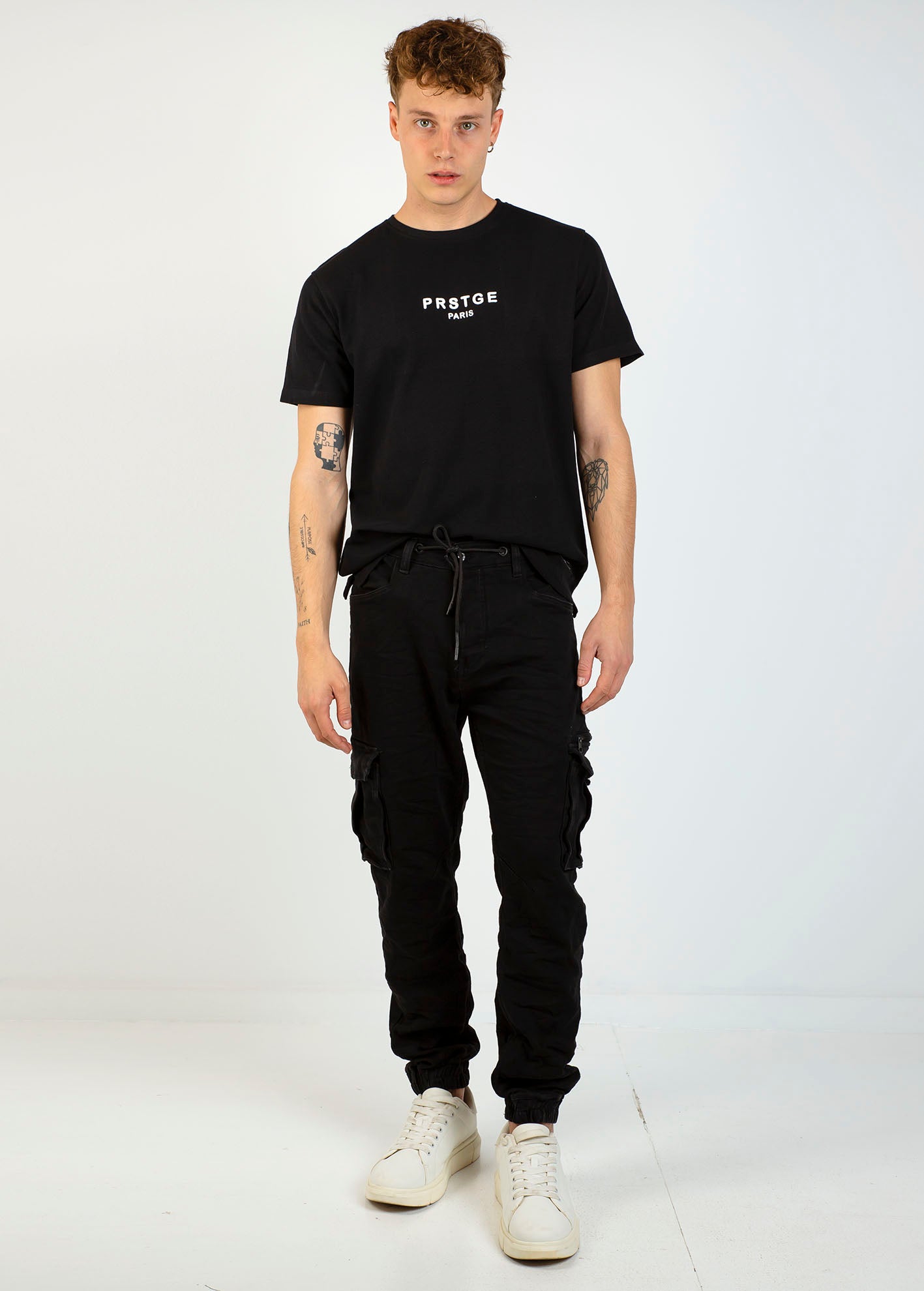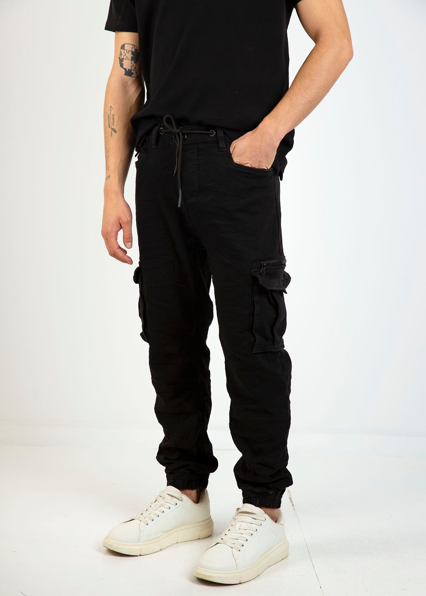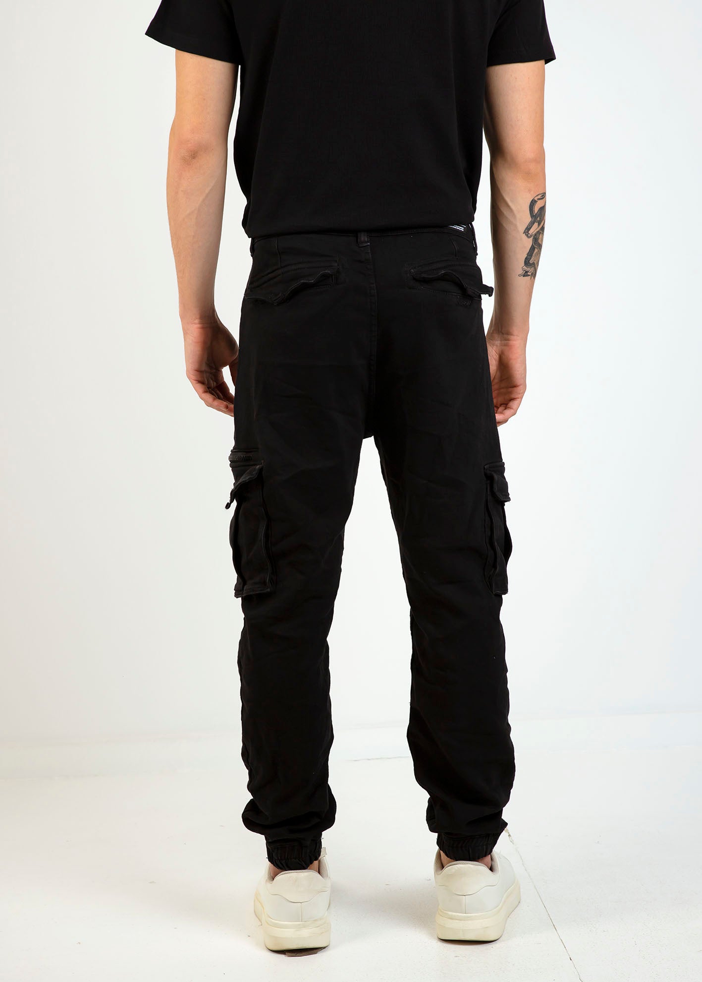 Παντελόνι cargo από ελαστικό ύφασμα, με τσέπες στα πλάγια και μπροστά, ελαστική μέση και ελαστικό τελείωμα.