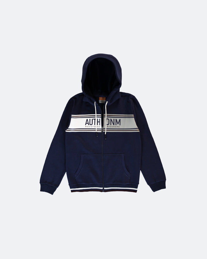 Φούτερ τζάκετ με κουκούλα, επένδυση στο εσωτερικό, μακρύ μανίκι και σχέδιο με τύπωμα μπροστά σε αντίθεση. Κλείσιμο μπροστά με φερμουάρ και ριπ τελείωμα.