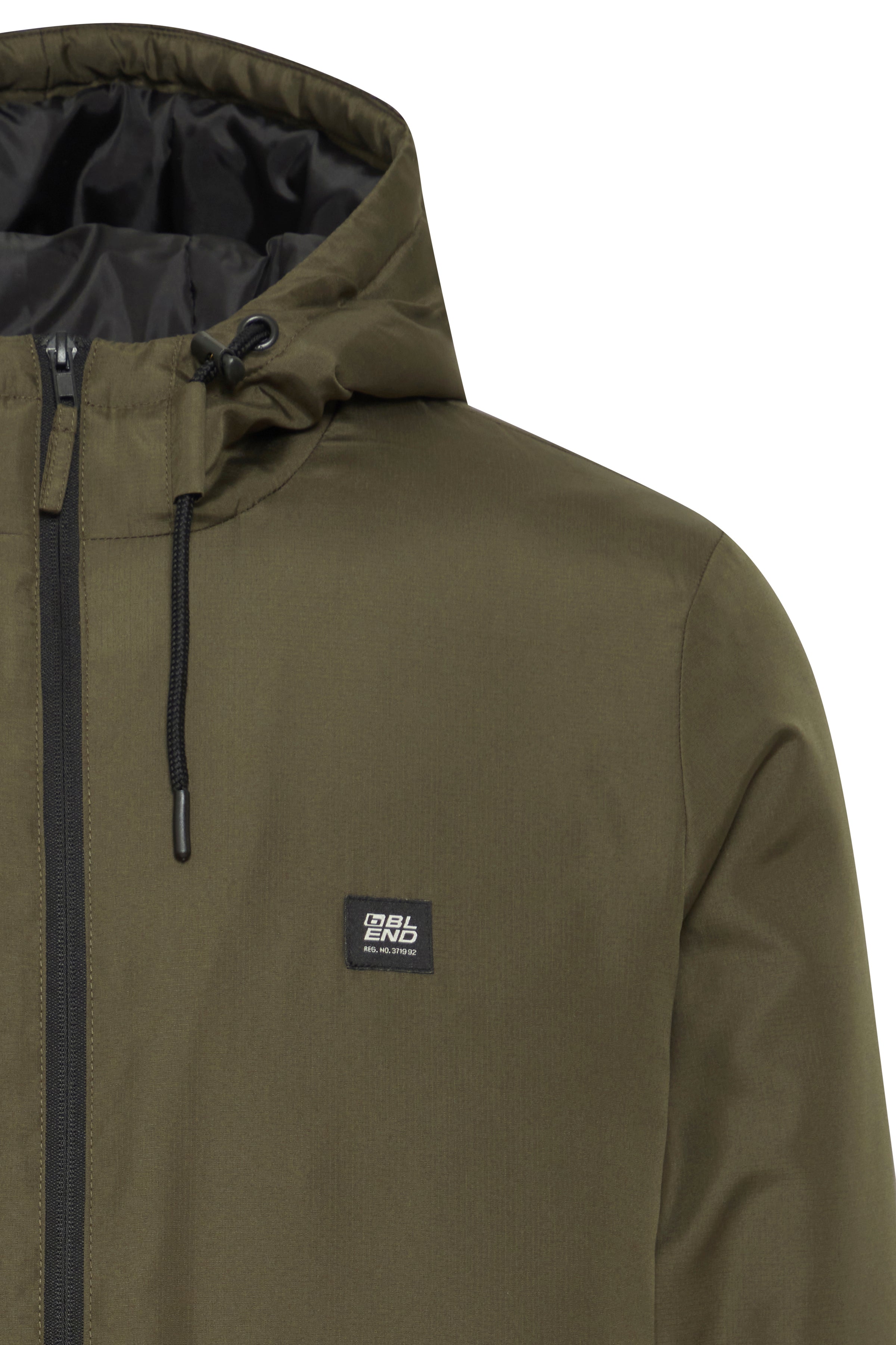 Ανδρικό μπουφάν με ελαφριά υφή. Διαθέτει κουκούλα, κεντρικό φερμουάρ και πλαϊνές τσέπες με φερμουάρ.