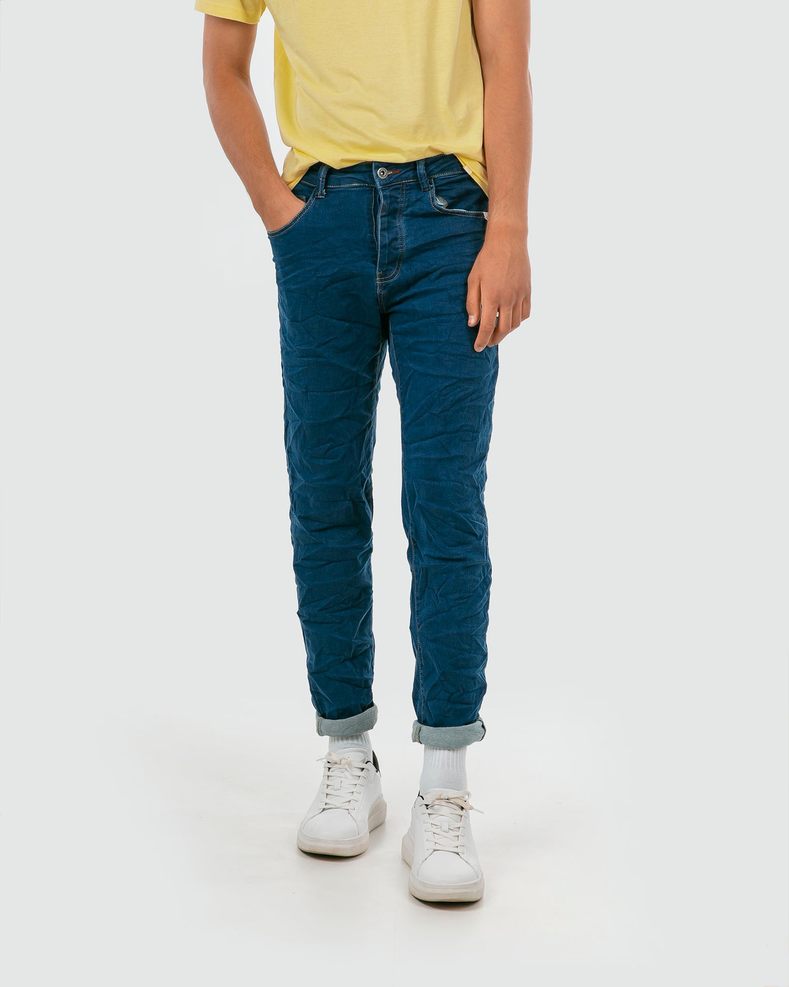 Παντελόνι ντένιμ σε ίσια γραμή με τσέπες στα πλάγια και πίσω και κλείσιμο μπροστά με φερμουάρ