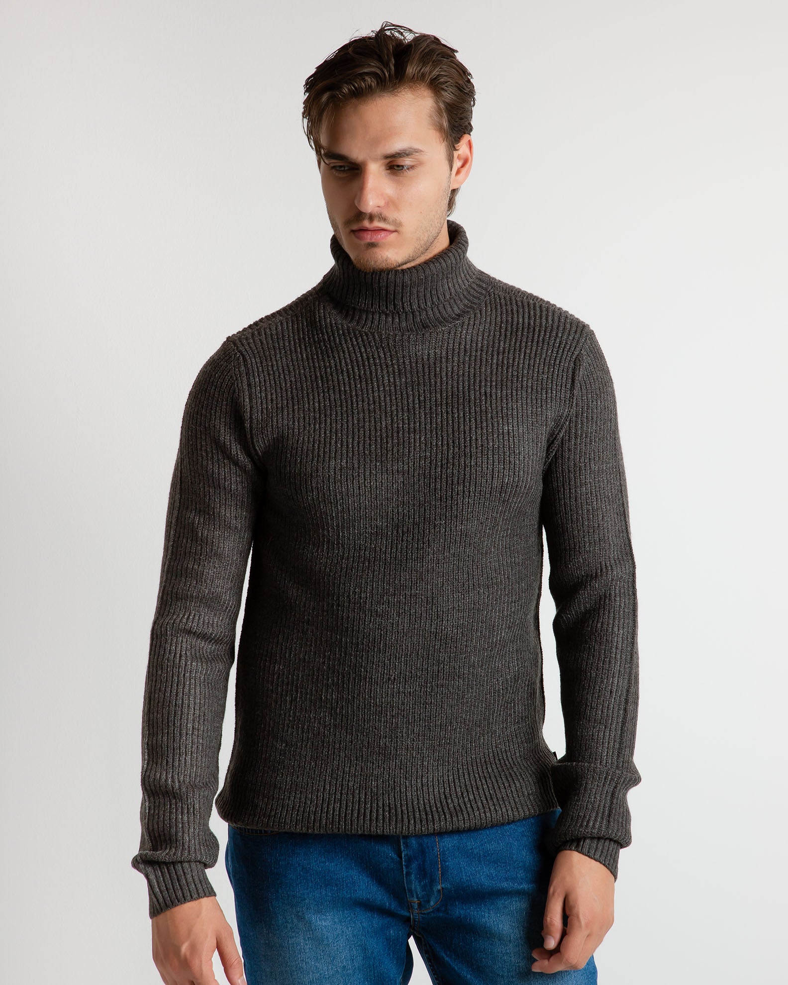 Ανδρικό πουλόβερ με όρθιο γιακά-Black