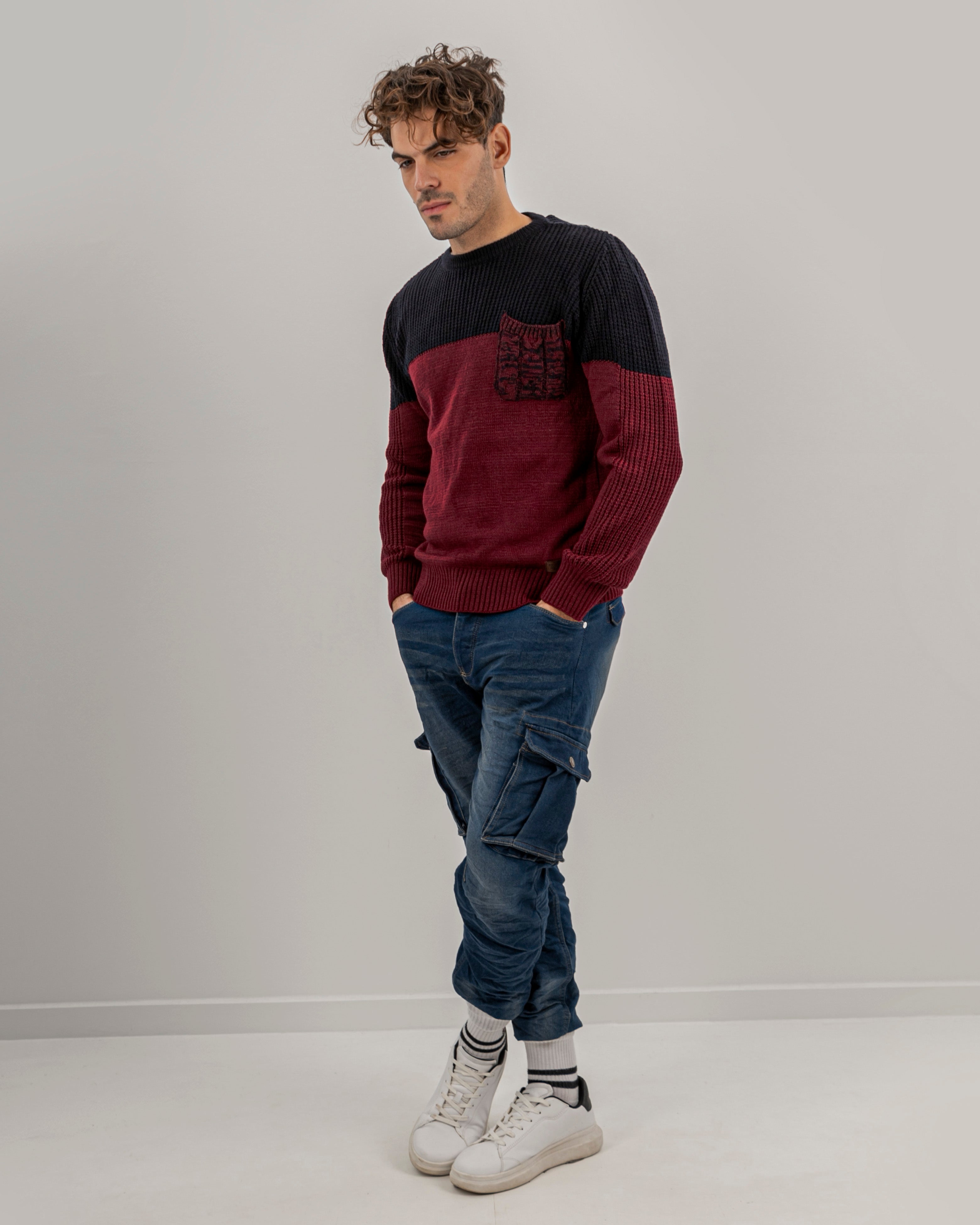 Ανδρικό πουλόβερ δίχρωμο RGAR-(c.572) -BORDEAUX-NAVY