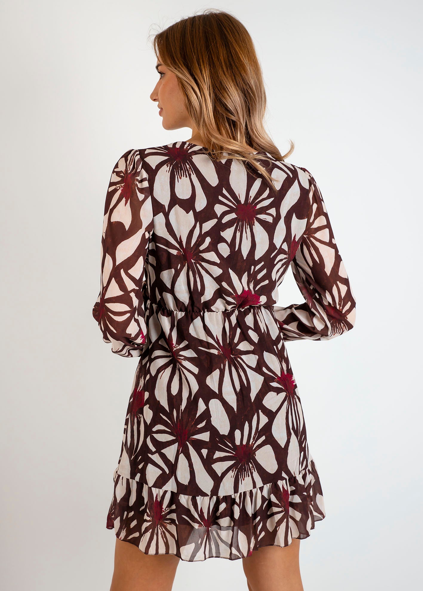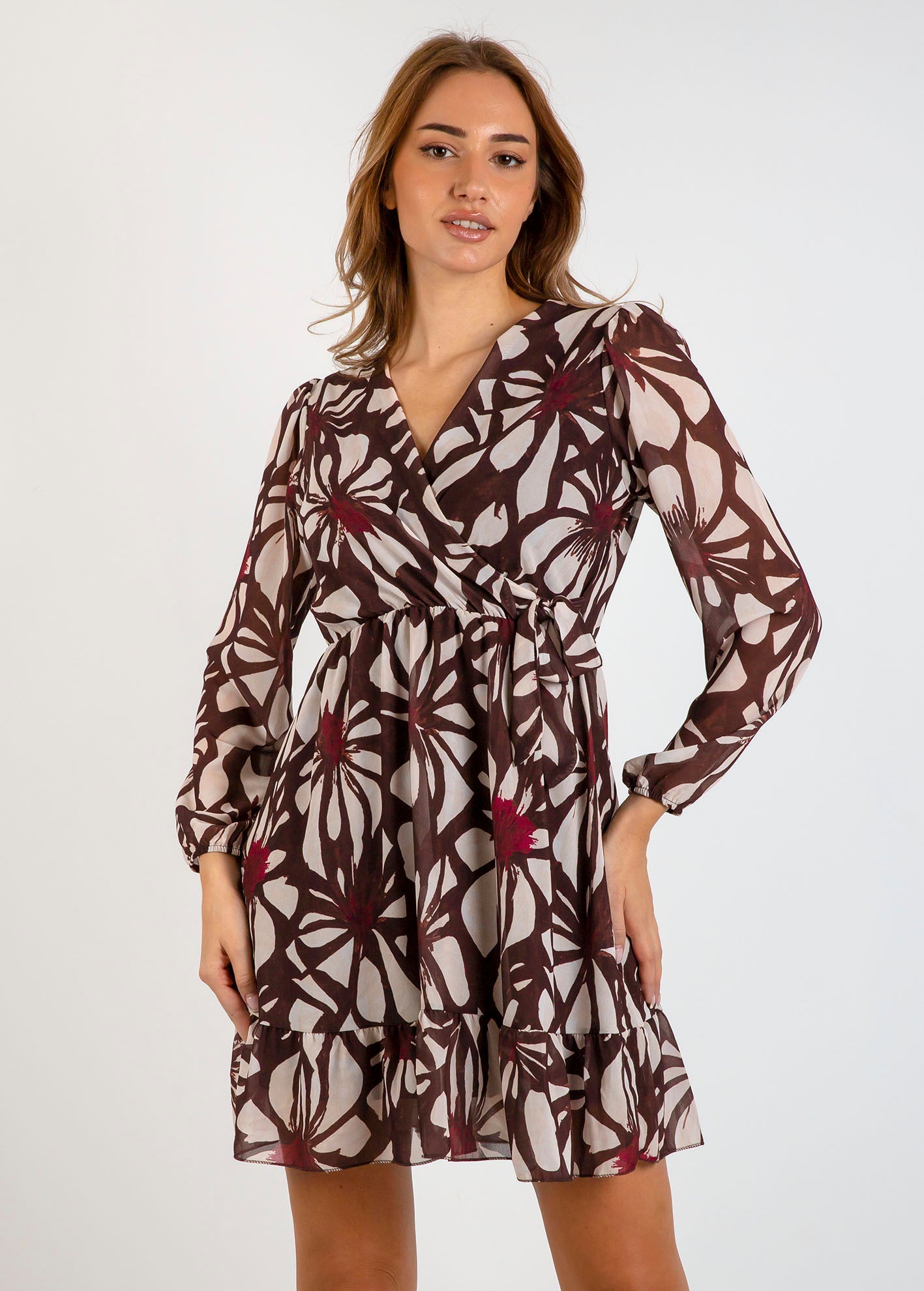 Εμπριμέ φόρεμα μακρυμάνικο 'Ro44mina'-brown flower
