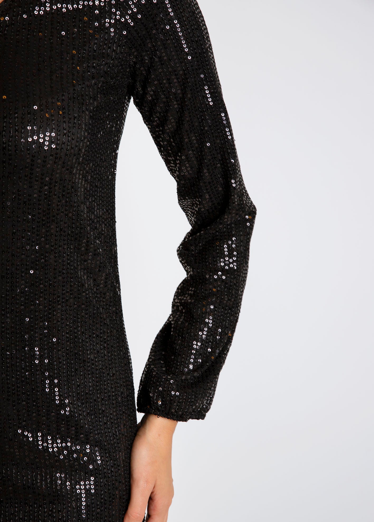 Μίνι φόρεμα κεντημένο με παγιέτες, με μακρύ μανίκι και V ντεκολτέ.