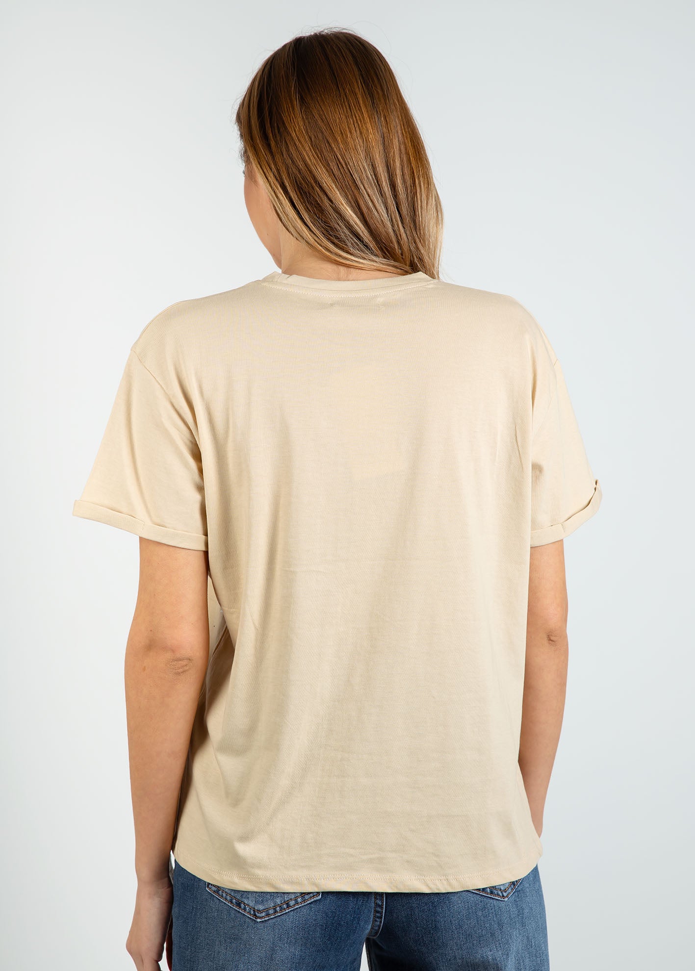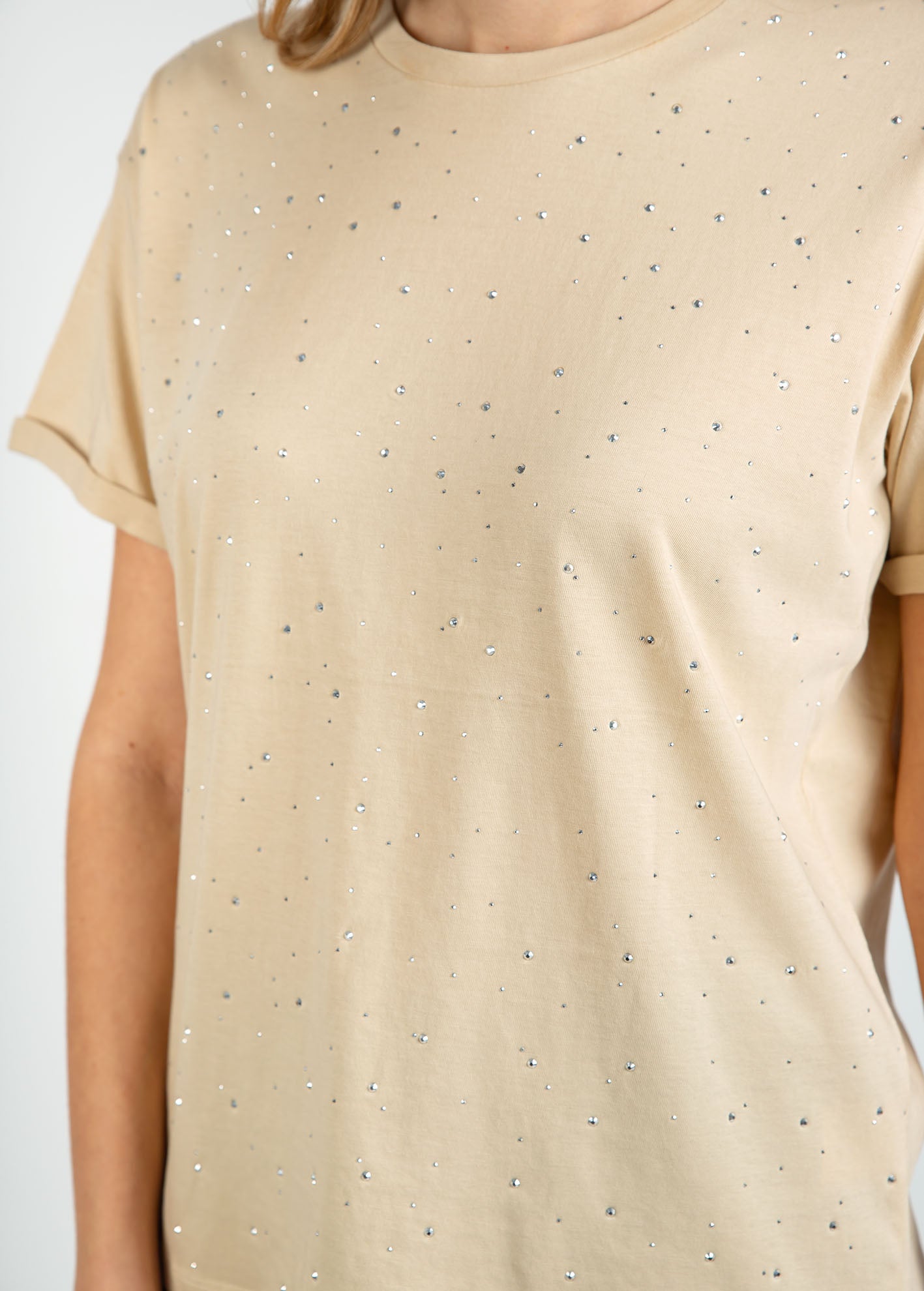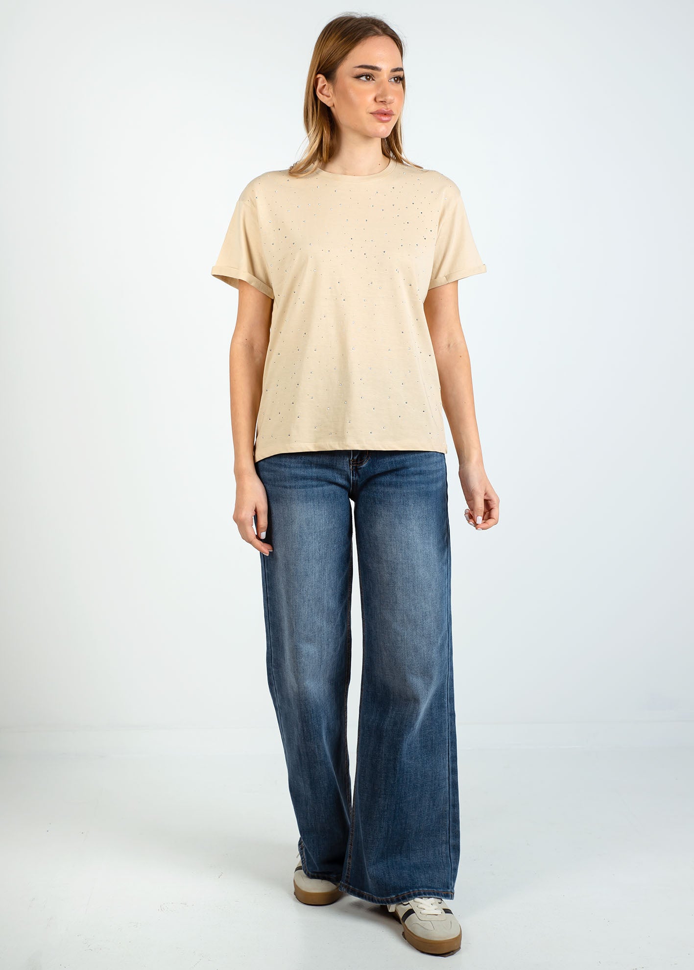 Γυναικεία μπλούζα loose fit με στρας 'Venia'-BEIGE