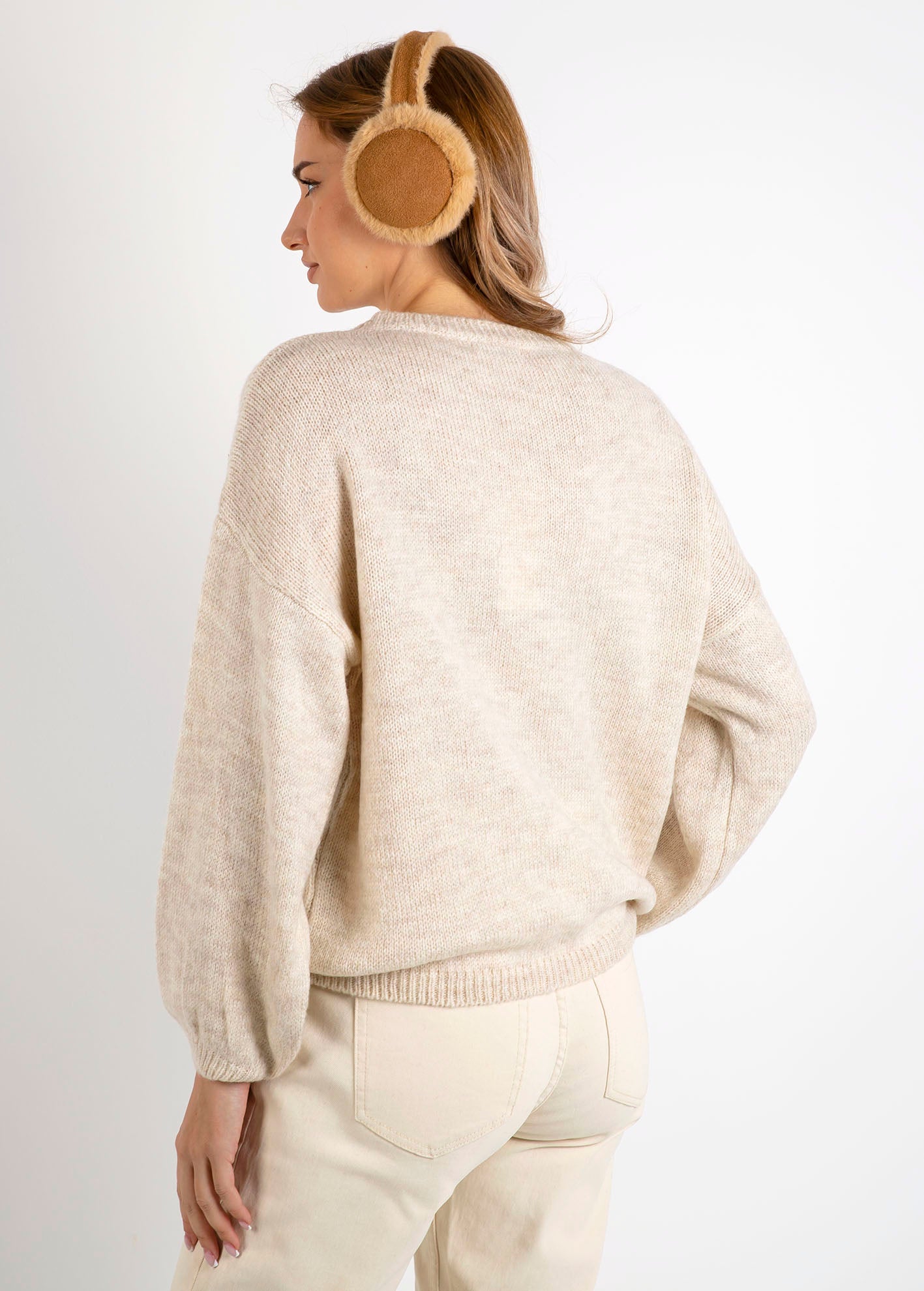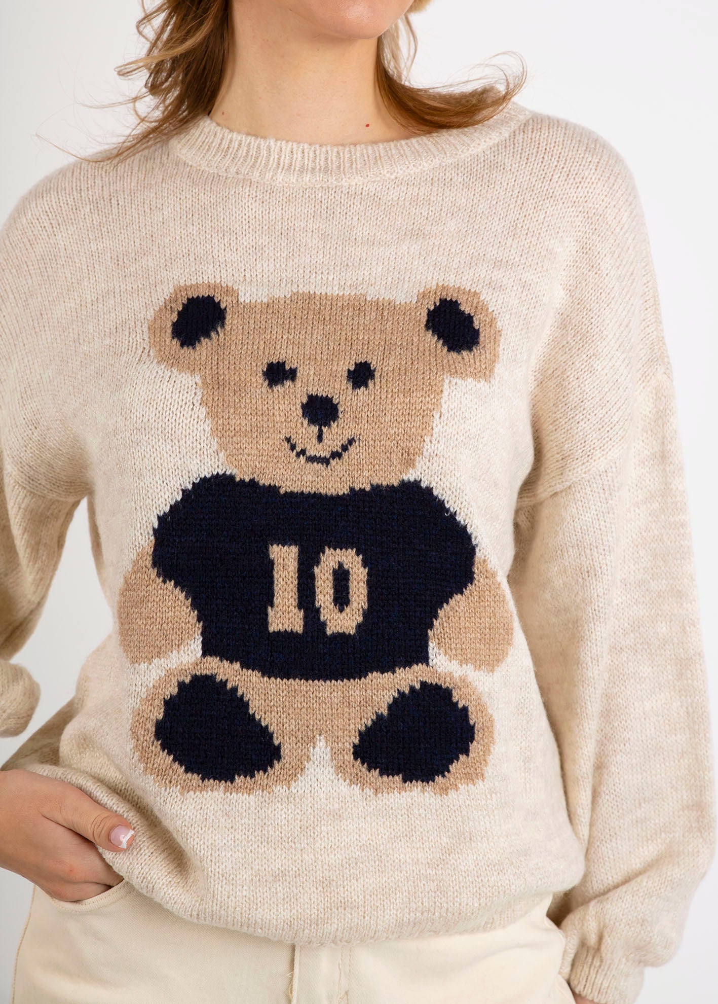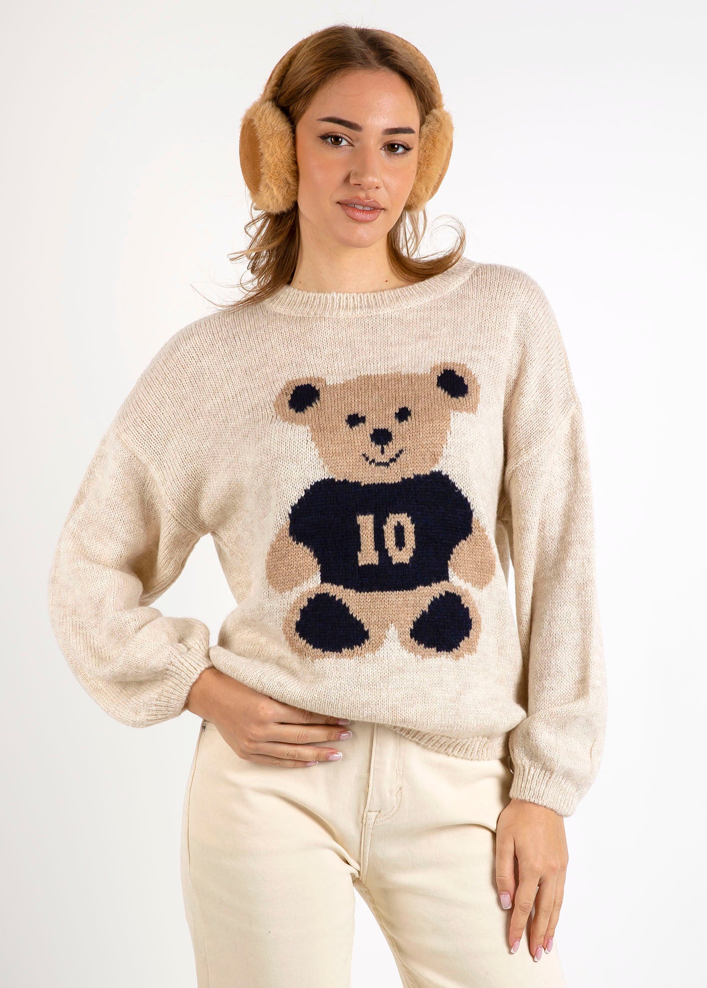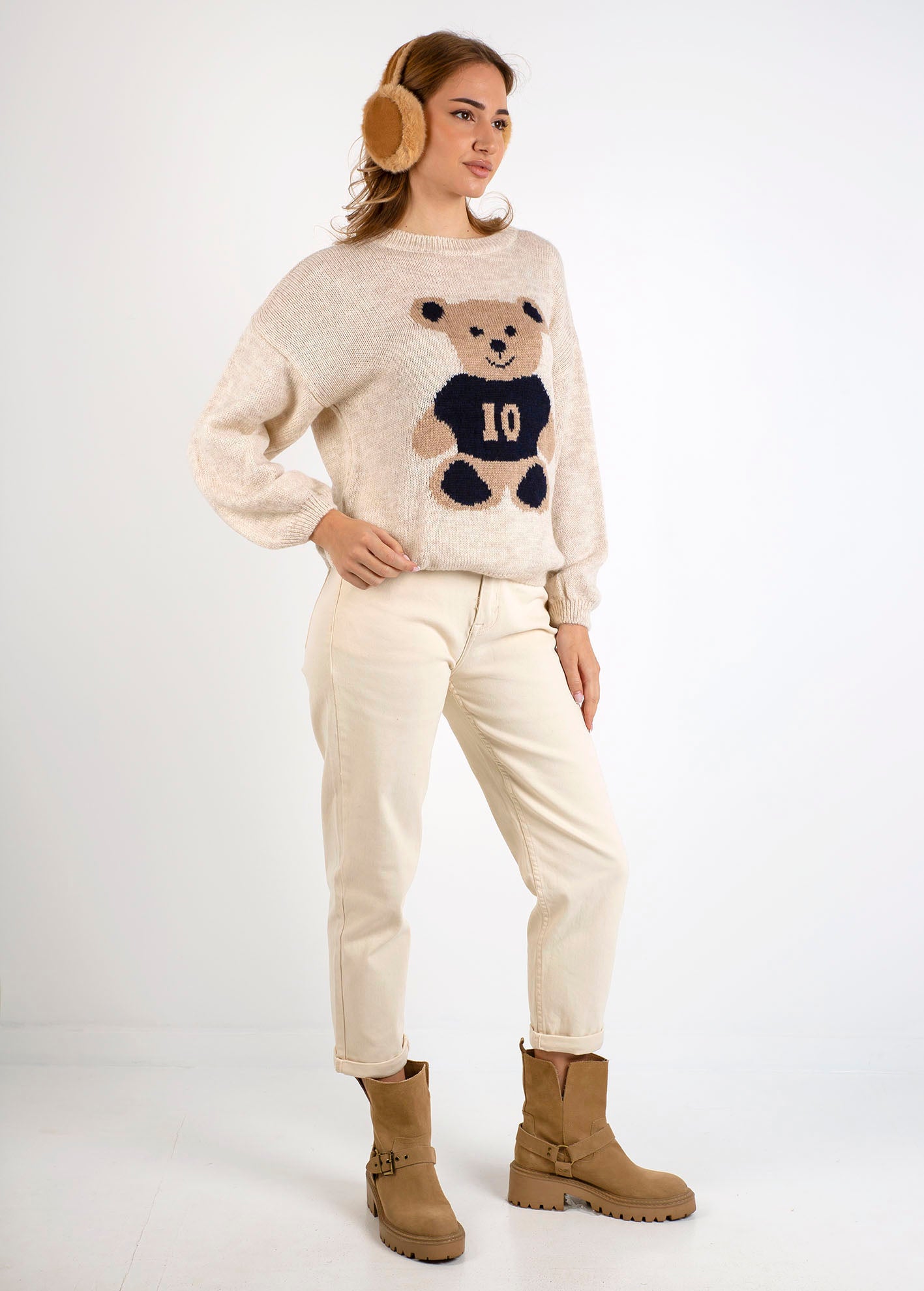 Γυναικείο πλεκτό με σχέδιο 'Te44d'-beige/ navy teddy