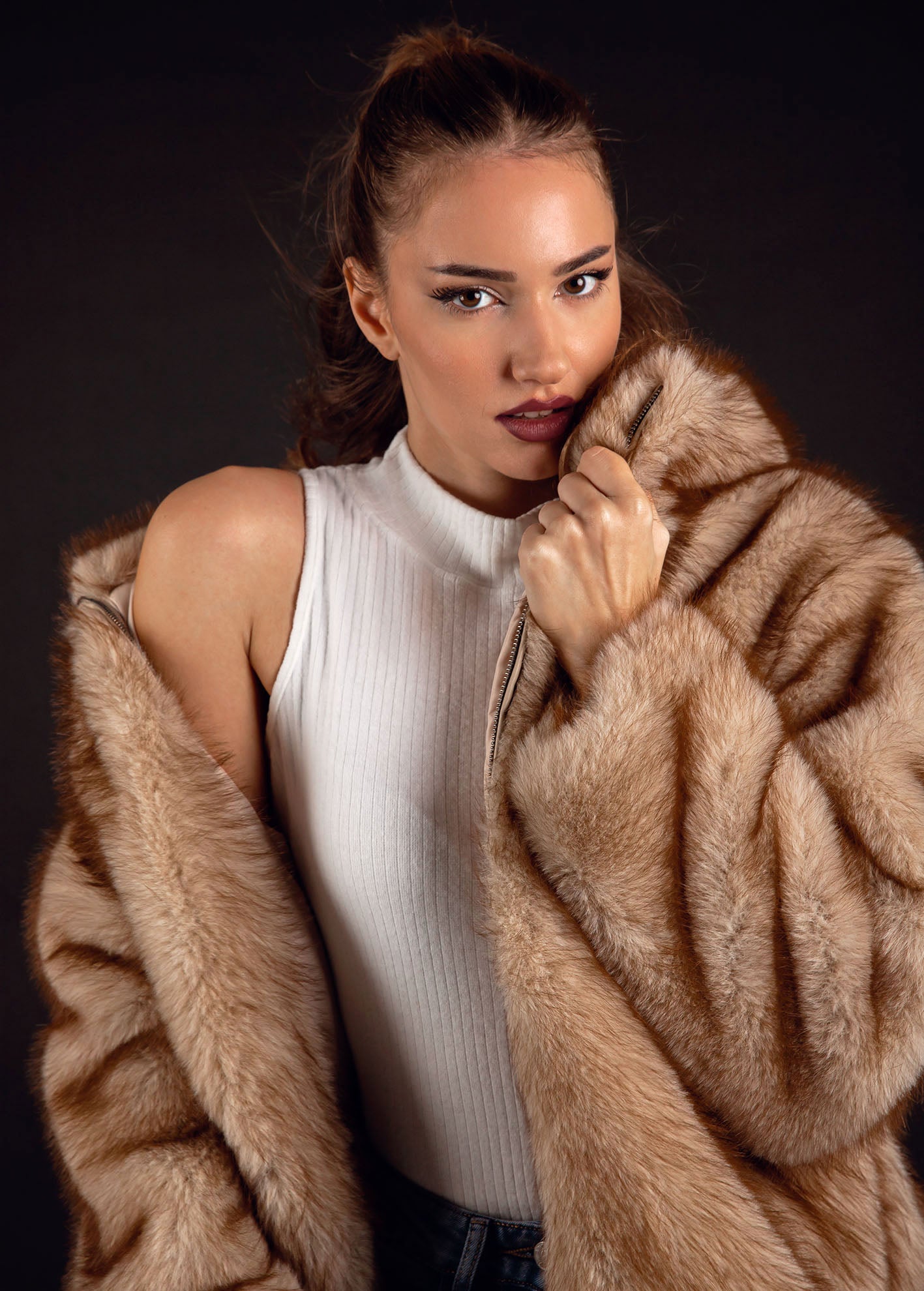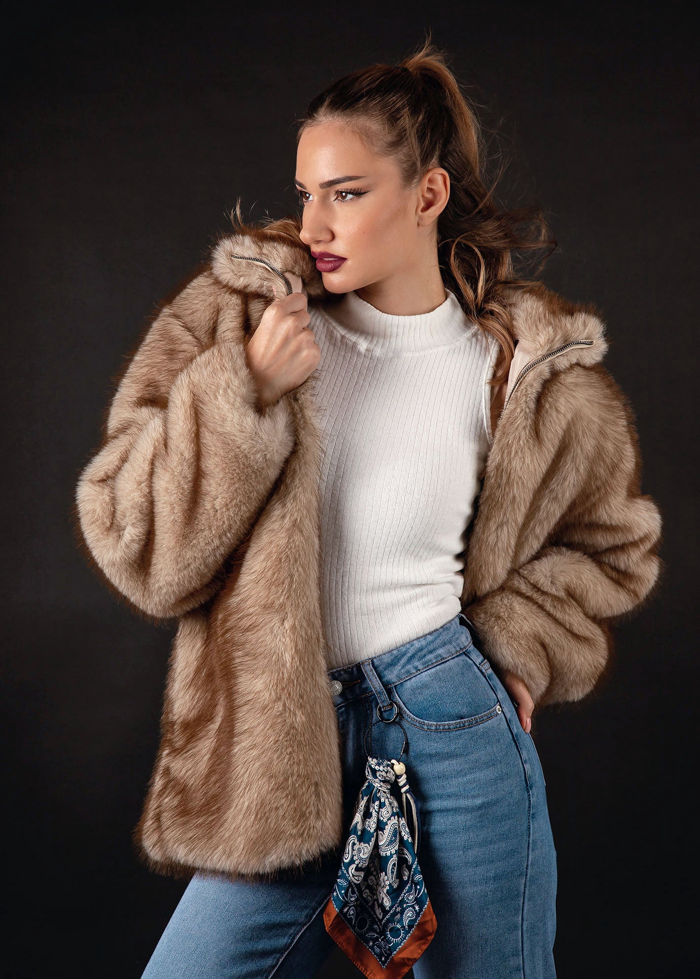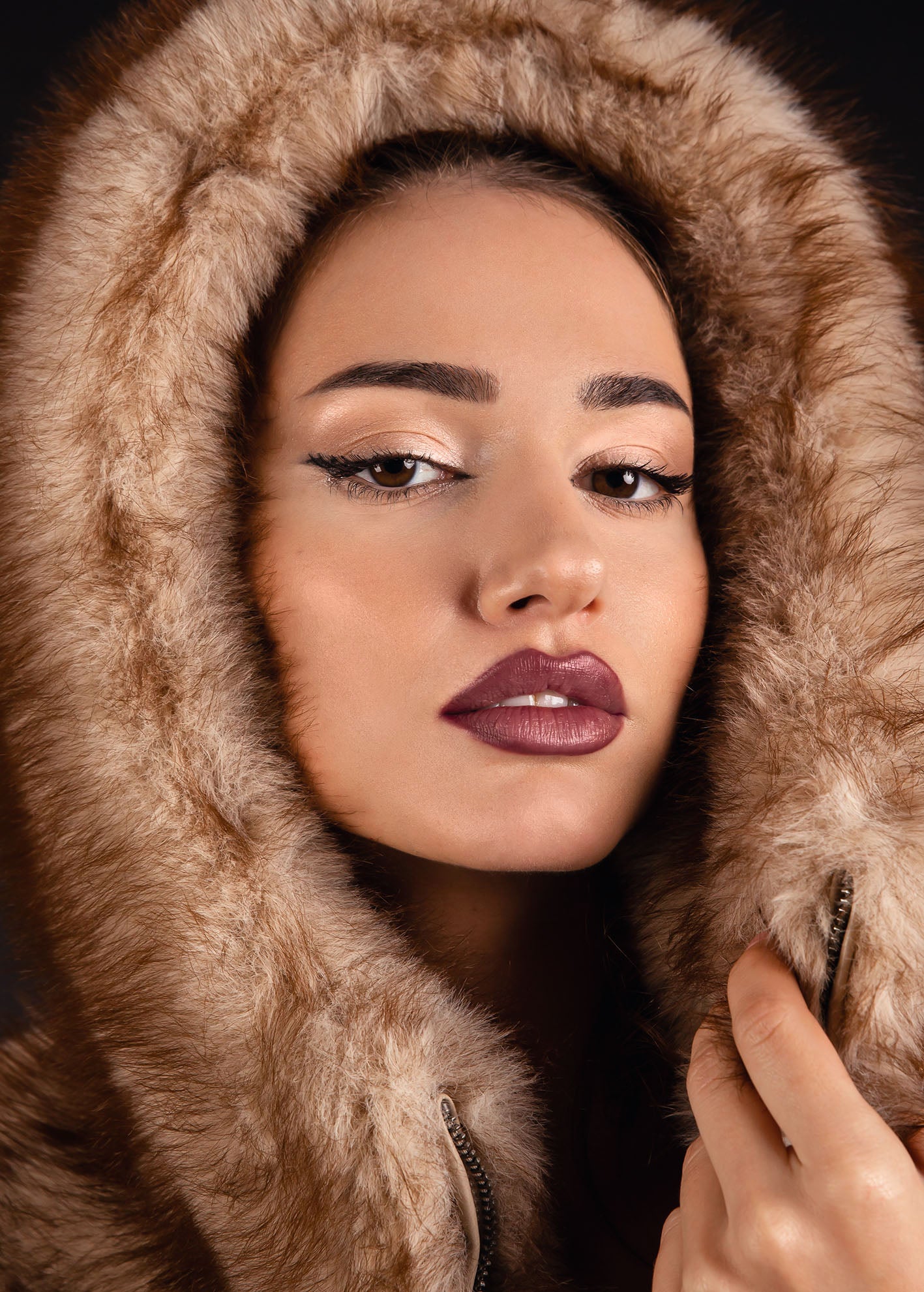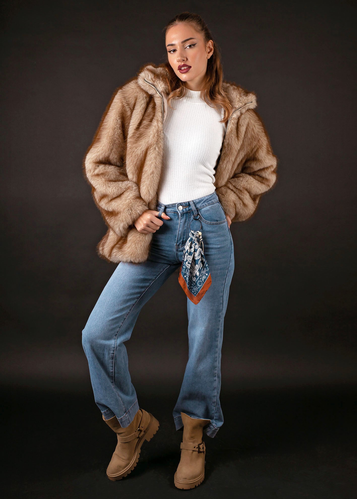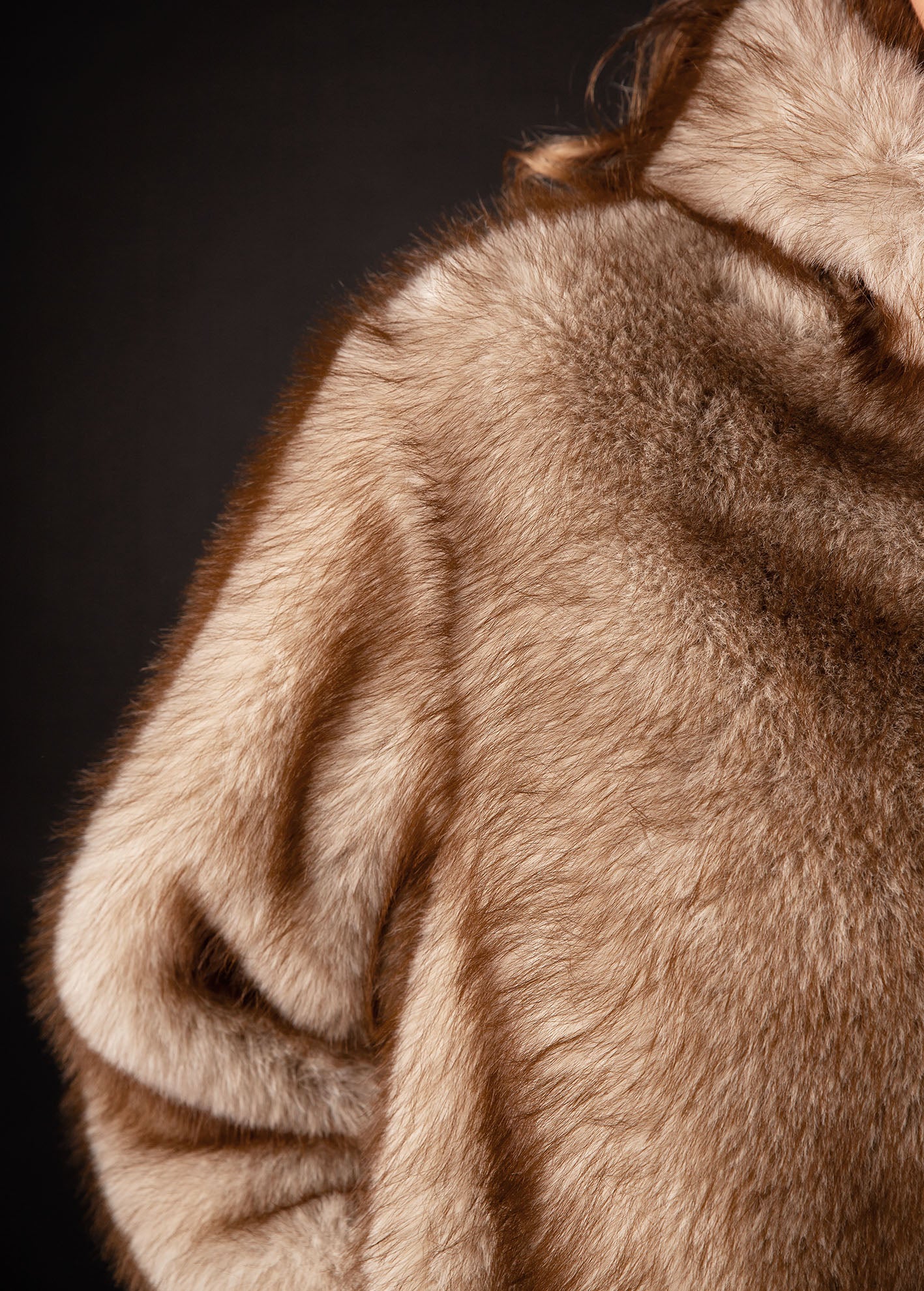 Γυναικείο τζάκετ-παλτό απο οικολογική γουνα με κουκούλα 'Albina'-BEIGE