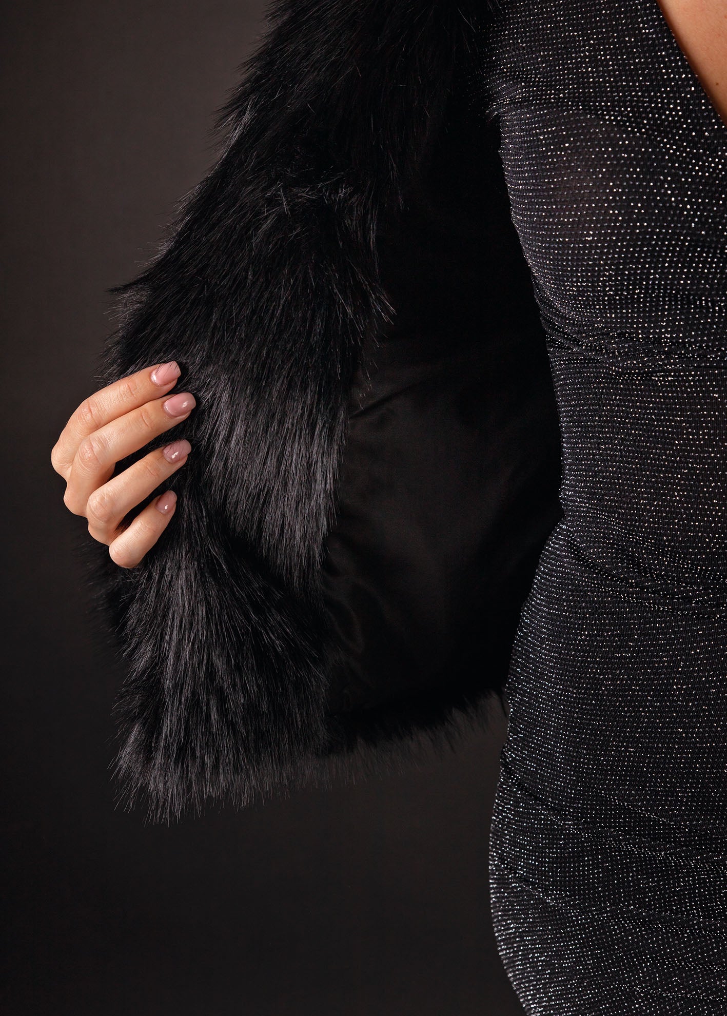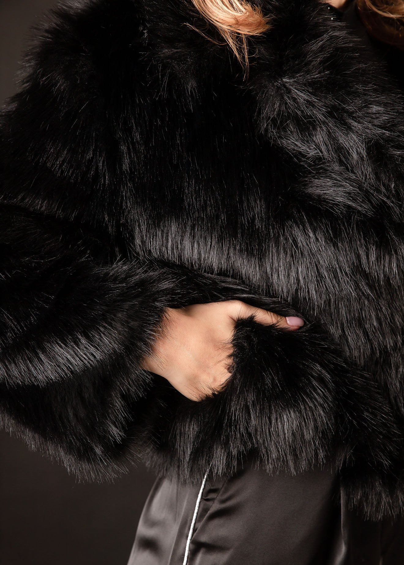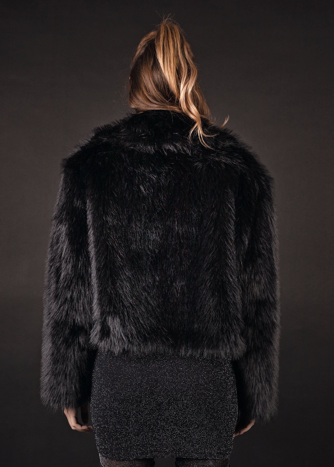 Γυναικείο τζάκετ-σακάκι από οικολογική γούνα 'Jennifer'-BLACK
