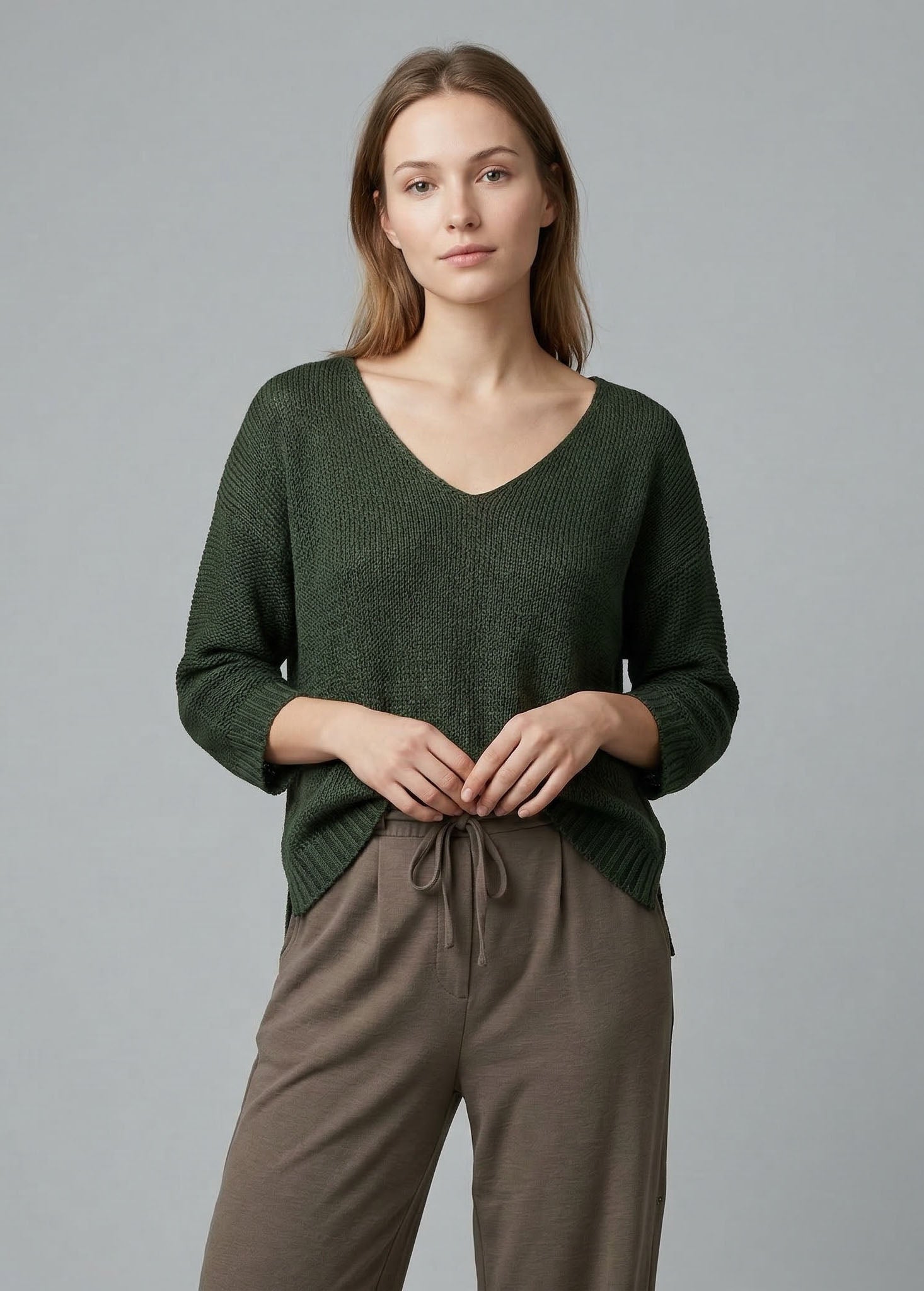 Ελαφριά πλεκτή μπλούζα με μανίκι 7/8, σχέδιο πλέξης και V ντεκολτέ.
