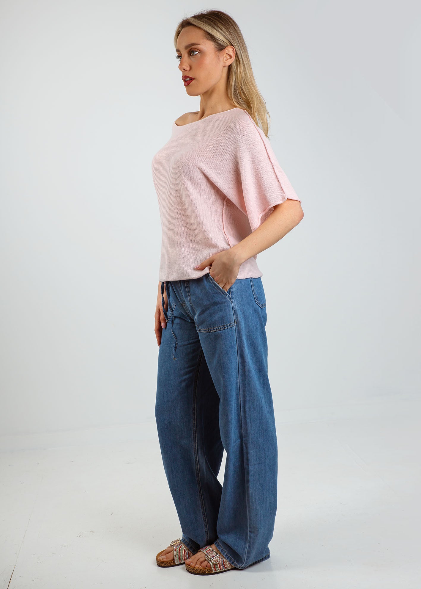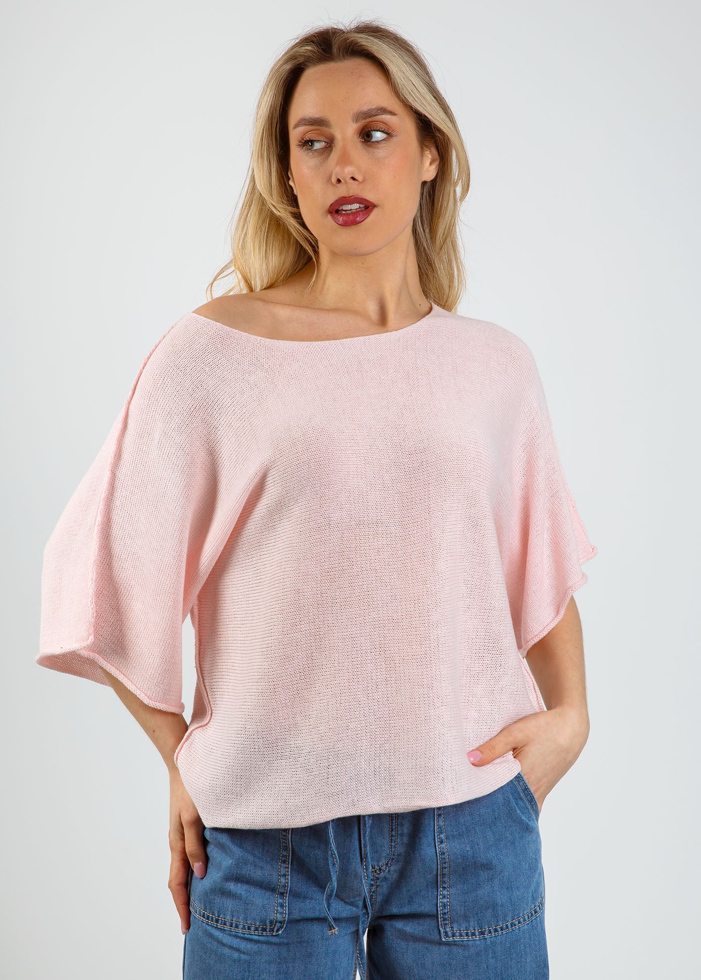 Γυναικεία ελαφριά πλεκτή μπλούζα κοντομάνικη 'Ki44na'-rose