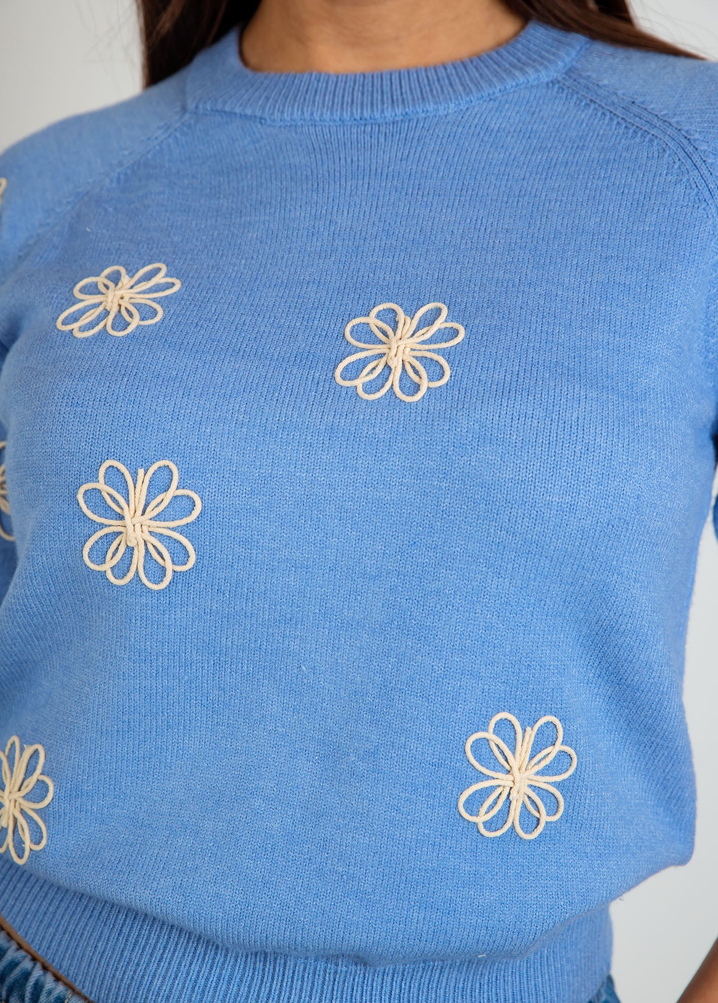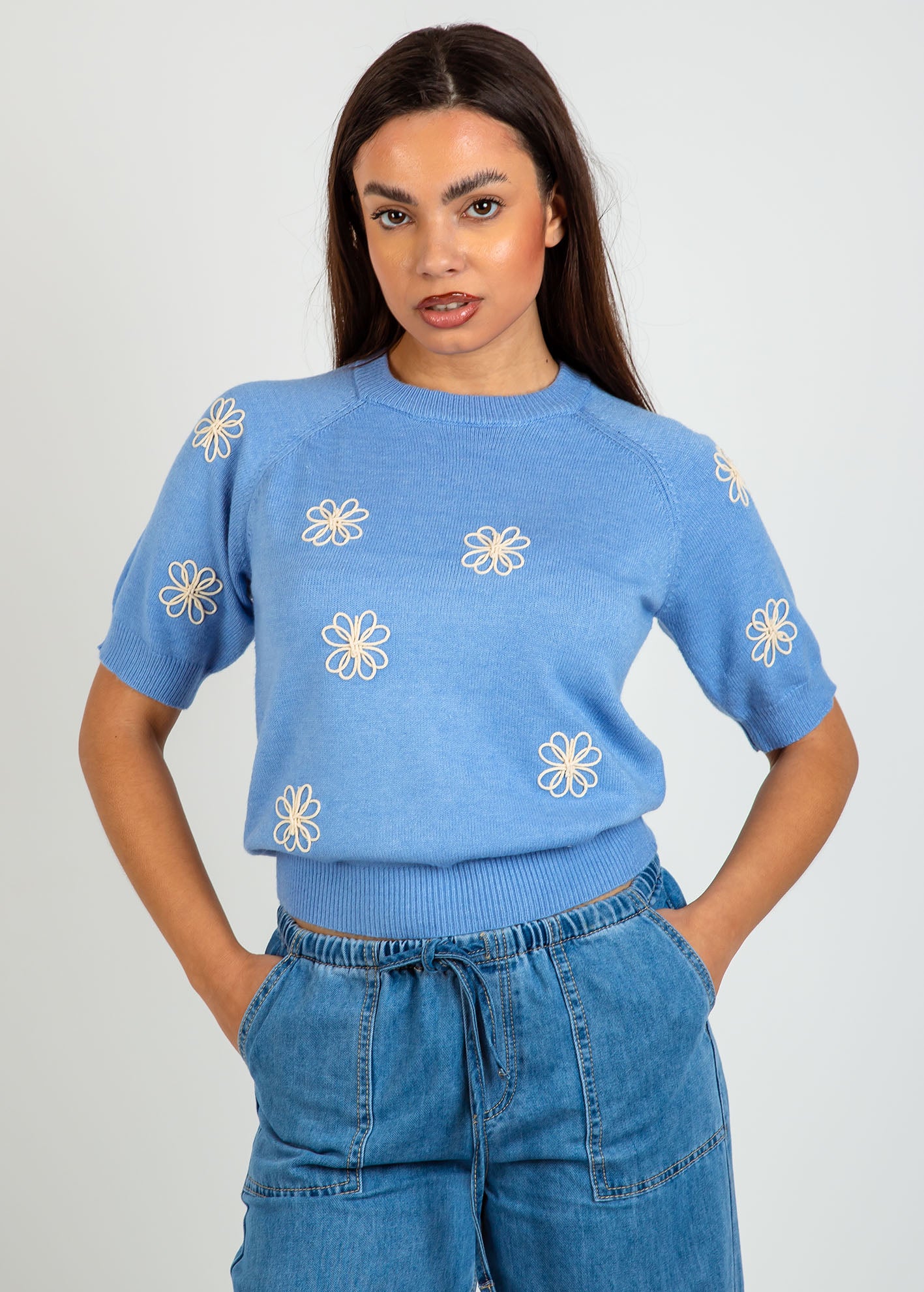 Γυναικεία κοντομάνικη μπλούζα με σχέδιο 'Su44se'-blue marl/cream flower