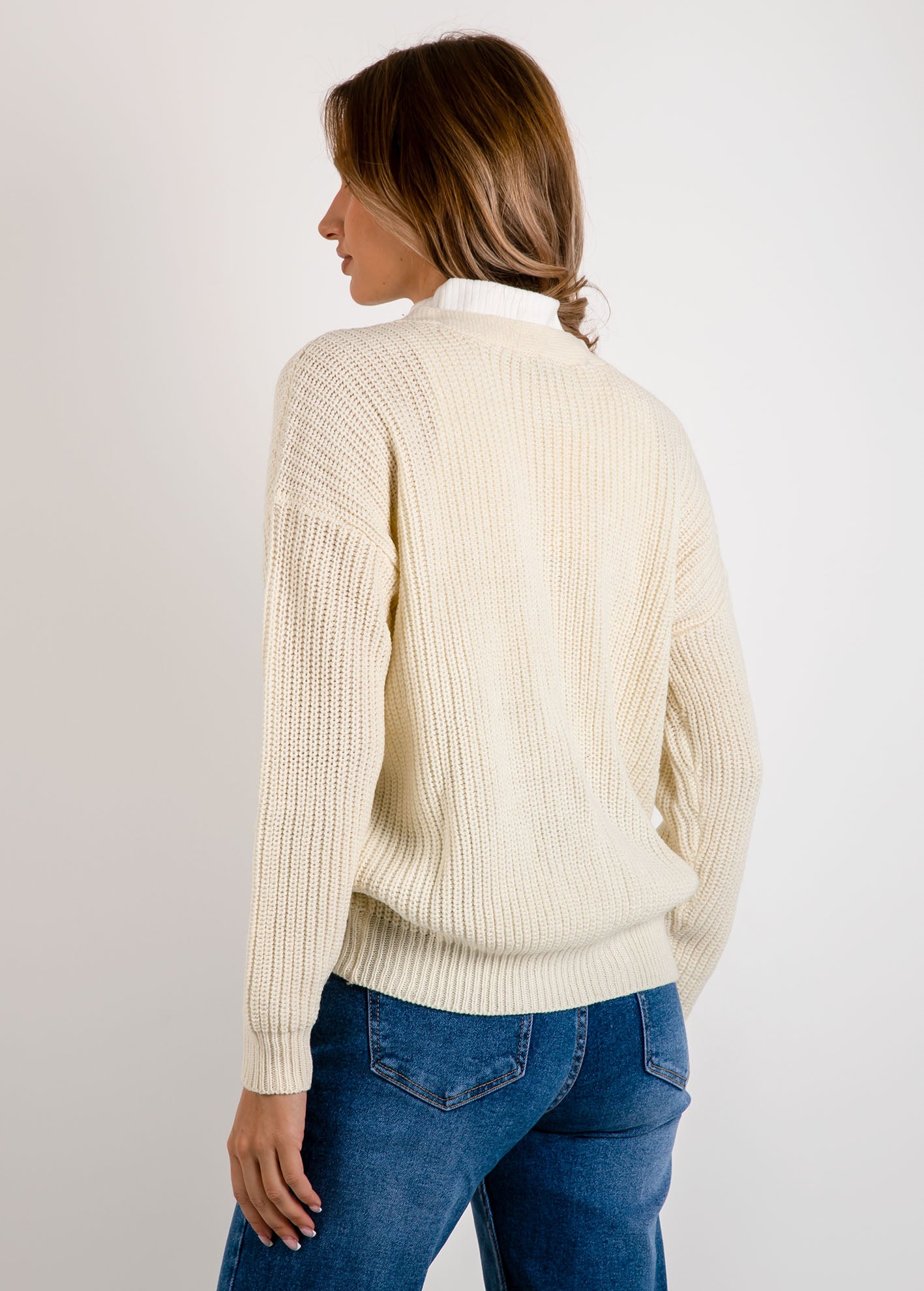 Ζακέτα πλεκτή με ανάγλυφη πλέξη σε χαλαρή γραμμή 'Irvine'-OFFWHITE