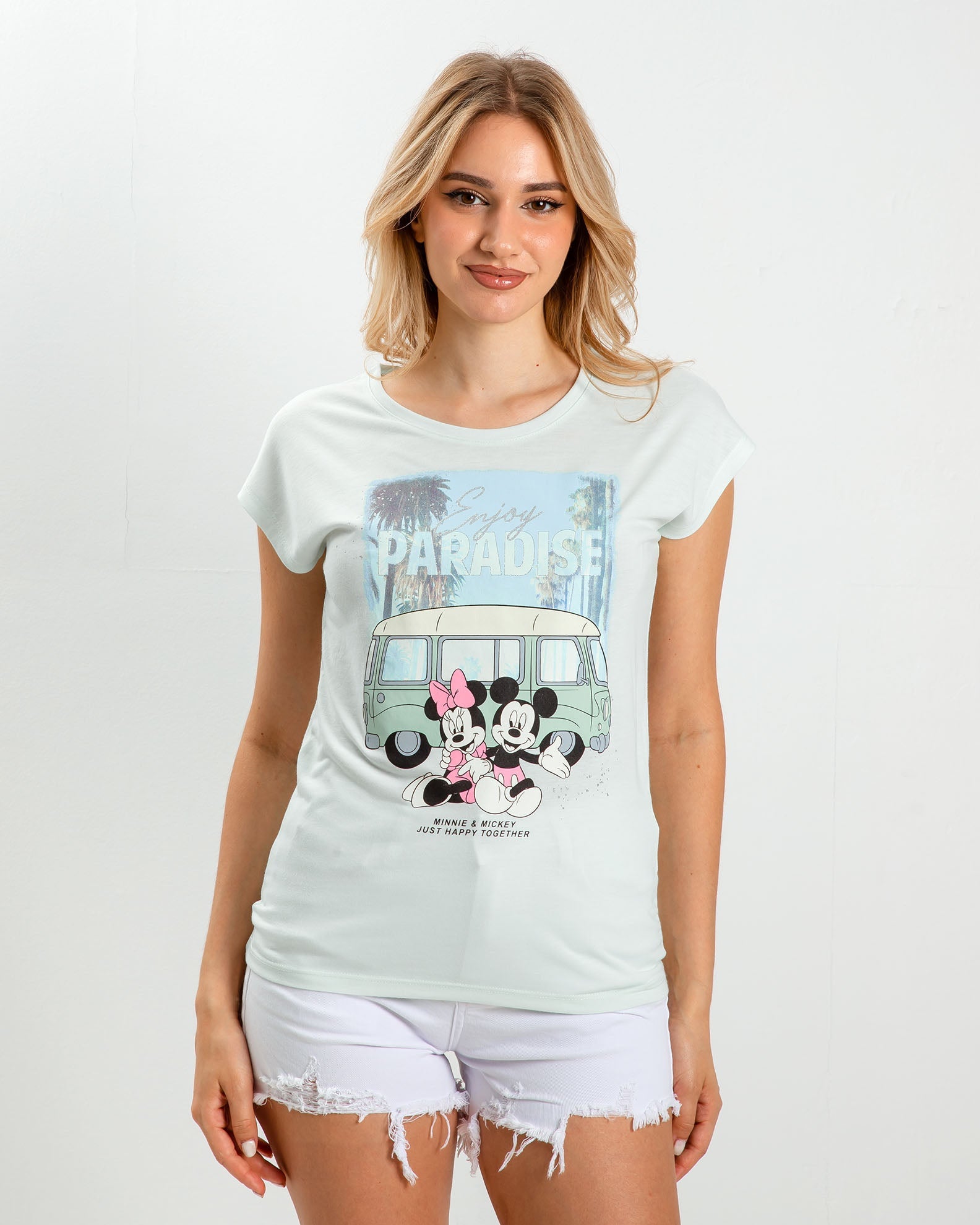 Μπλούζα με κοντό μανίκι, στρογγυλή λαιμόκοψη και σχέδιο με τύπωμα μπροστά σε αντίθεση.
