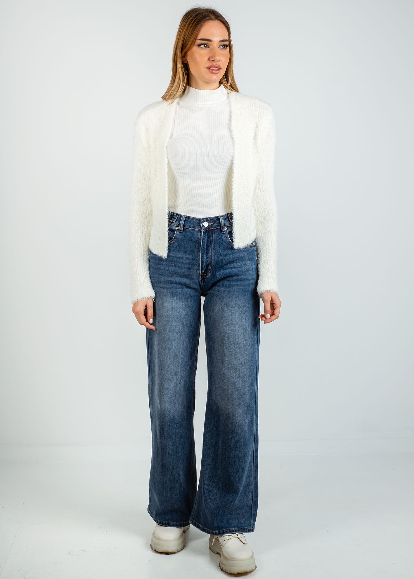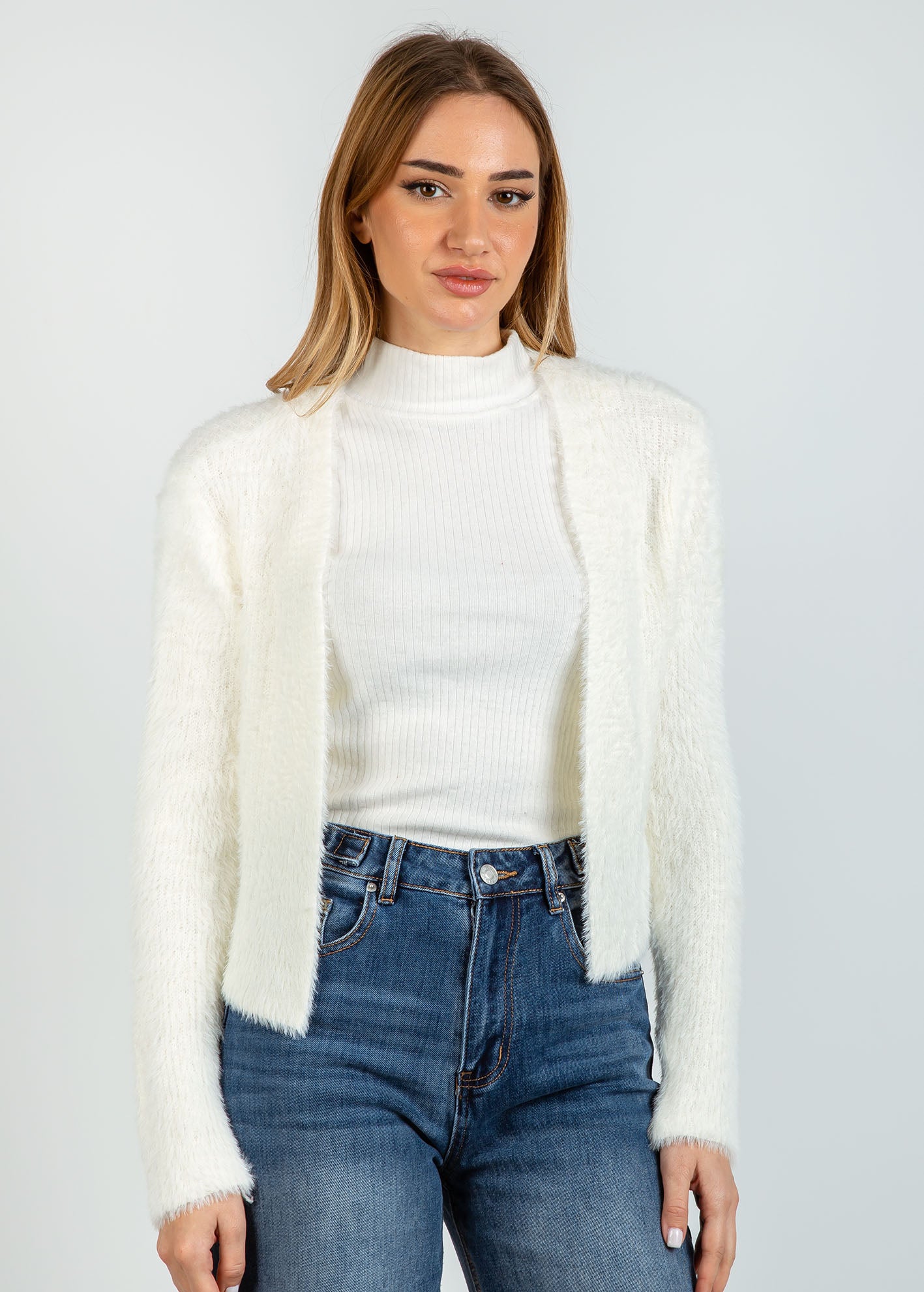 Ανοιχτή ζακέτα με απαλή υφή, κοντή με μακρύ μανίκι.