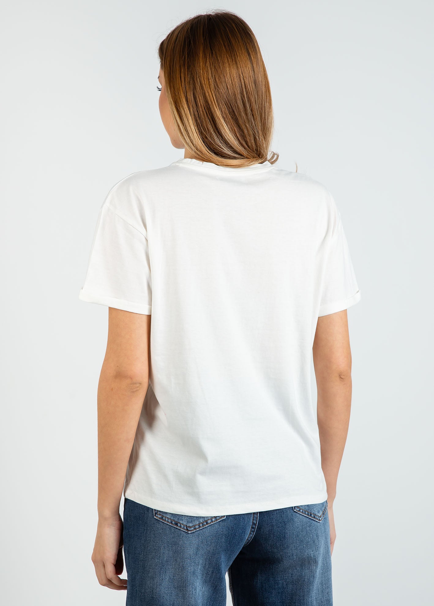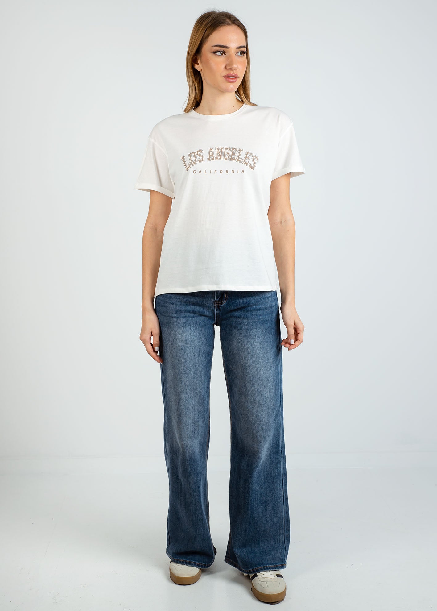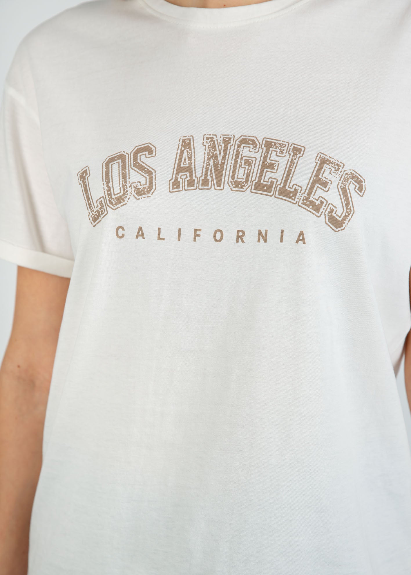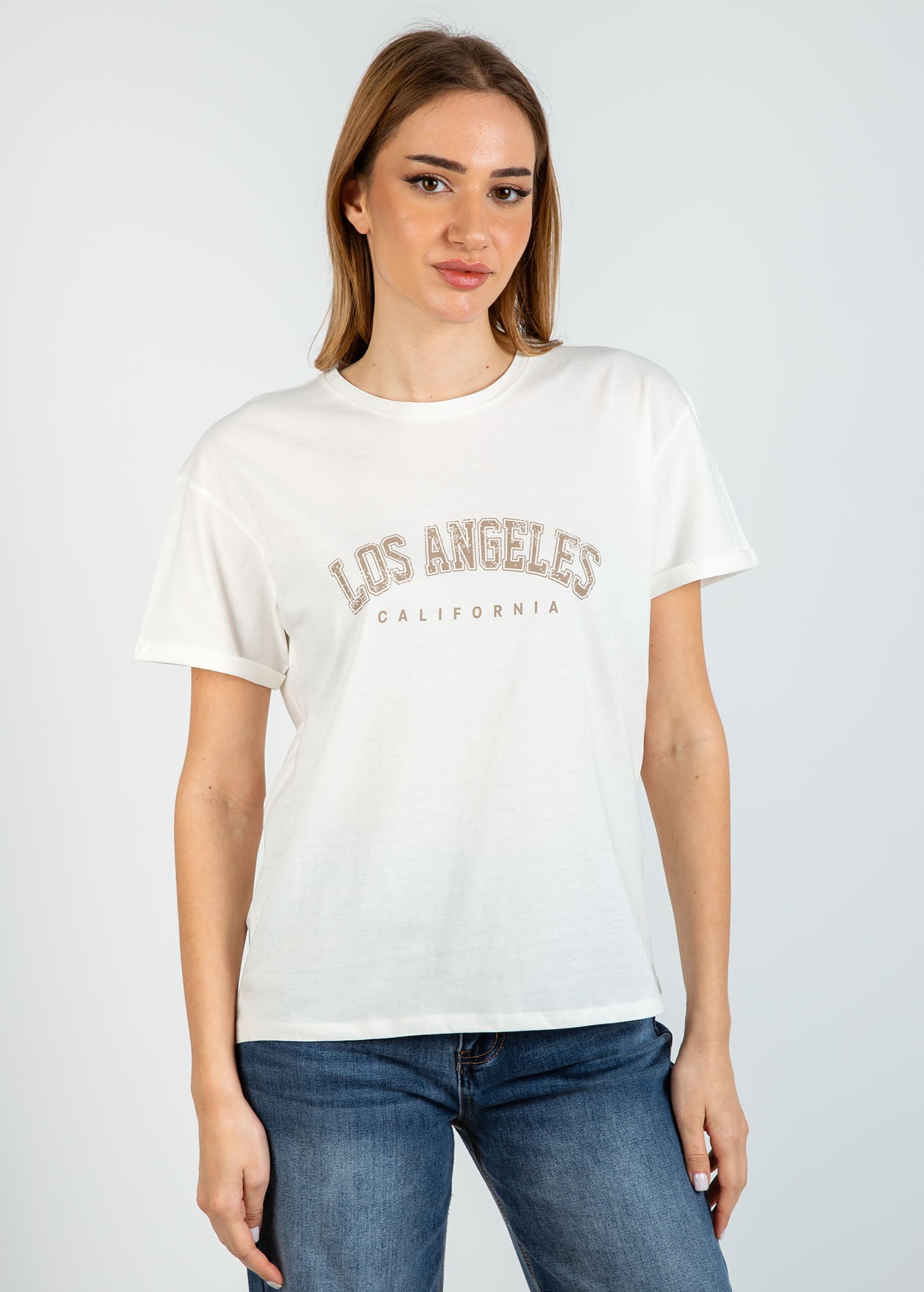 Γυναικεία κοντομάνικη μπλούζα με τύπωμα 'New Los Angeles'-OFFWHITE