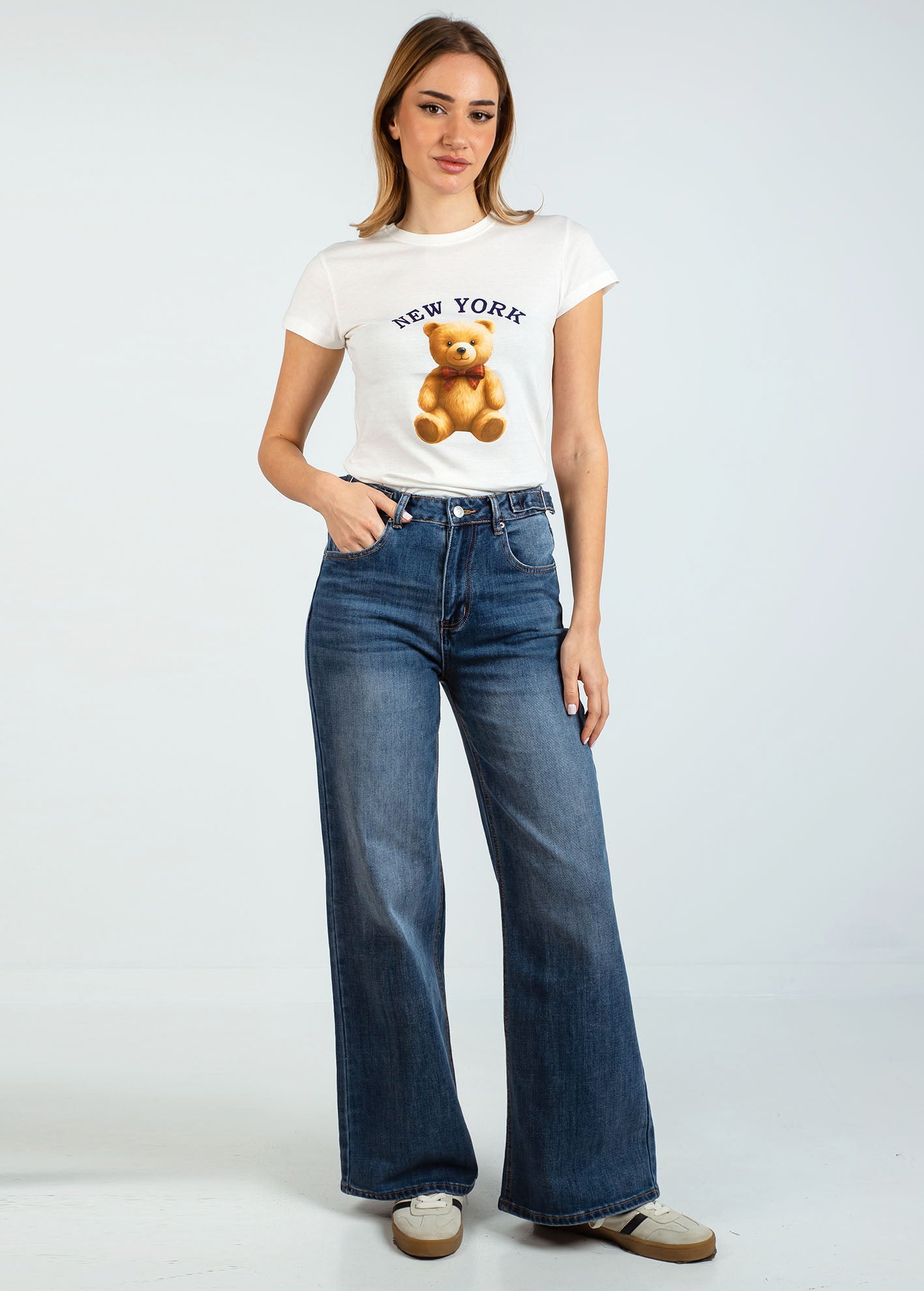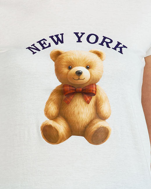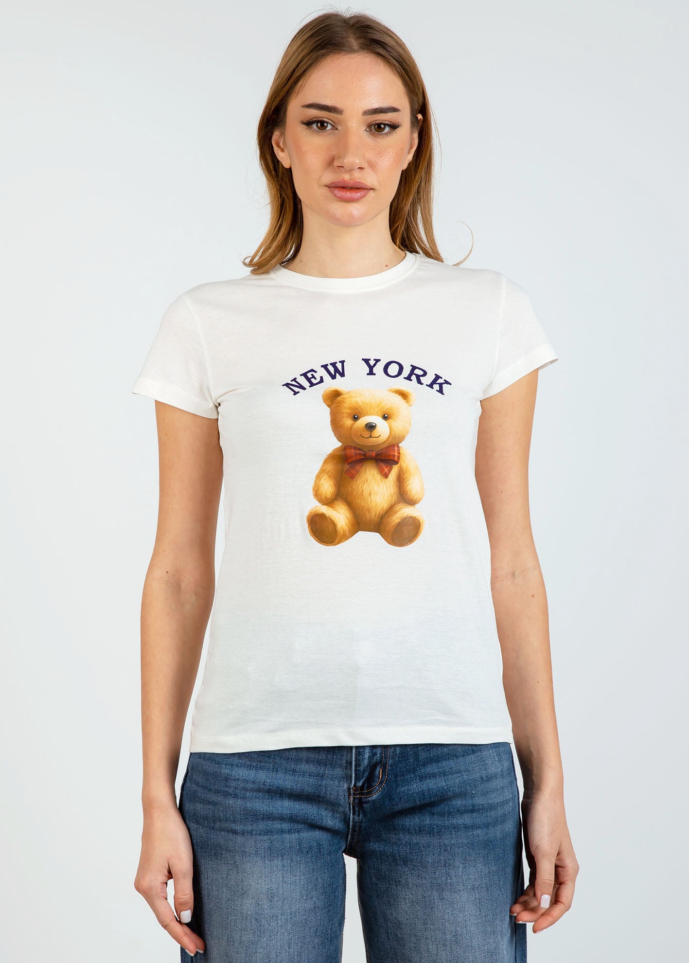 Γυναικεία κοντομάνικη μπλούζα με τύπωμα regular 'Teddy'-OFFWHITE