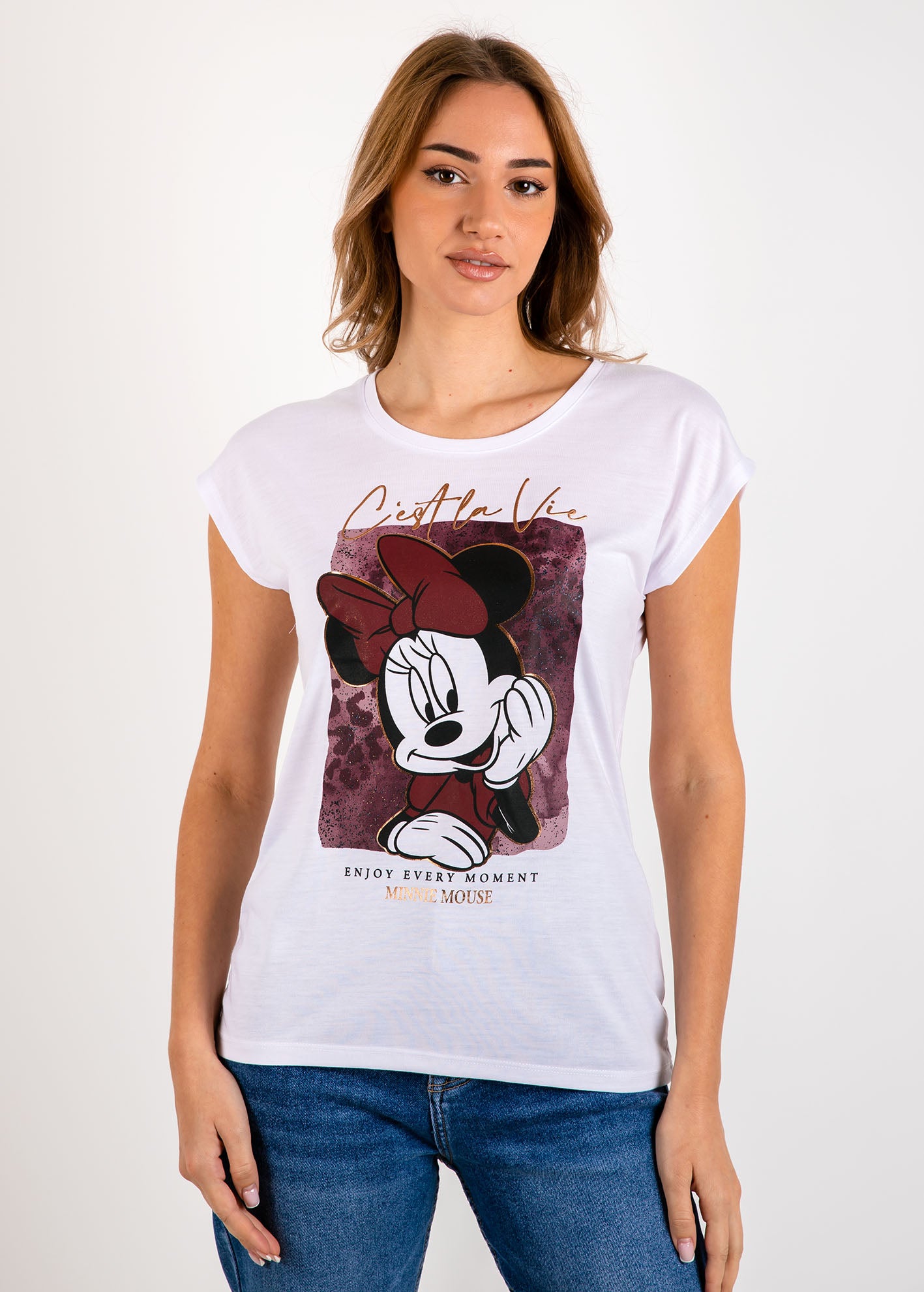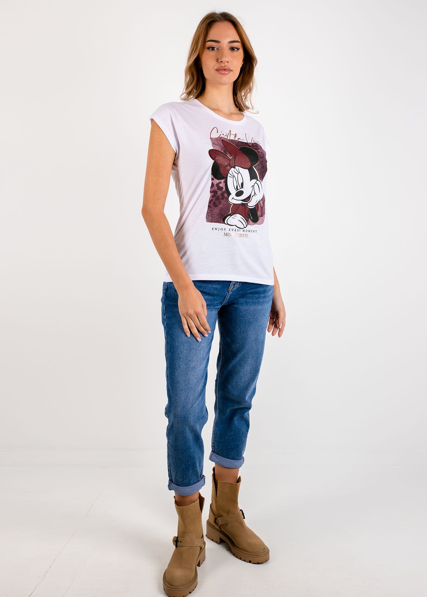 Μπλούζα με κοντό μανίκι, στρογγυλή λαιμόκοψη και σχέδιο με τύπωμα μπροστά.
