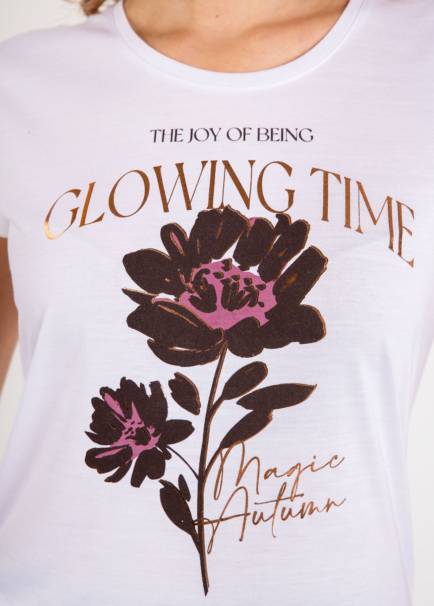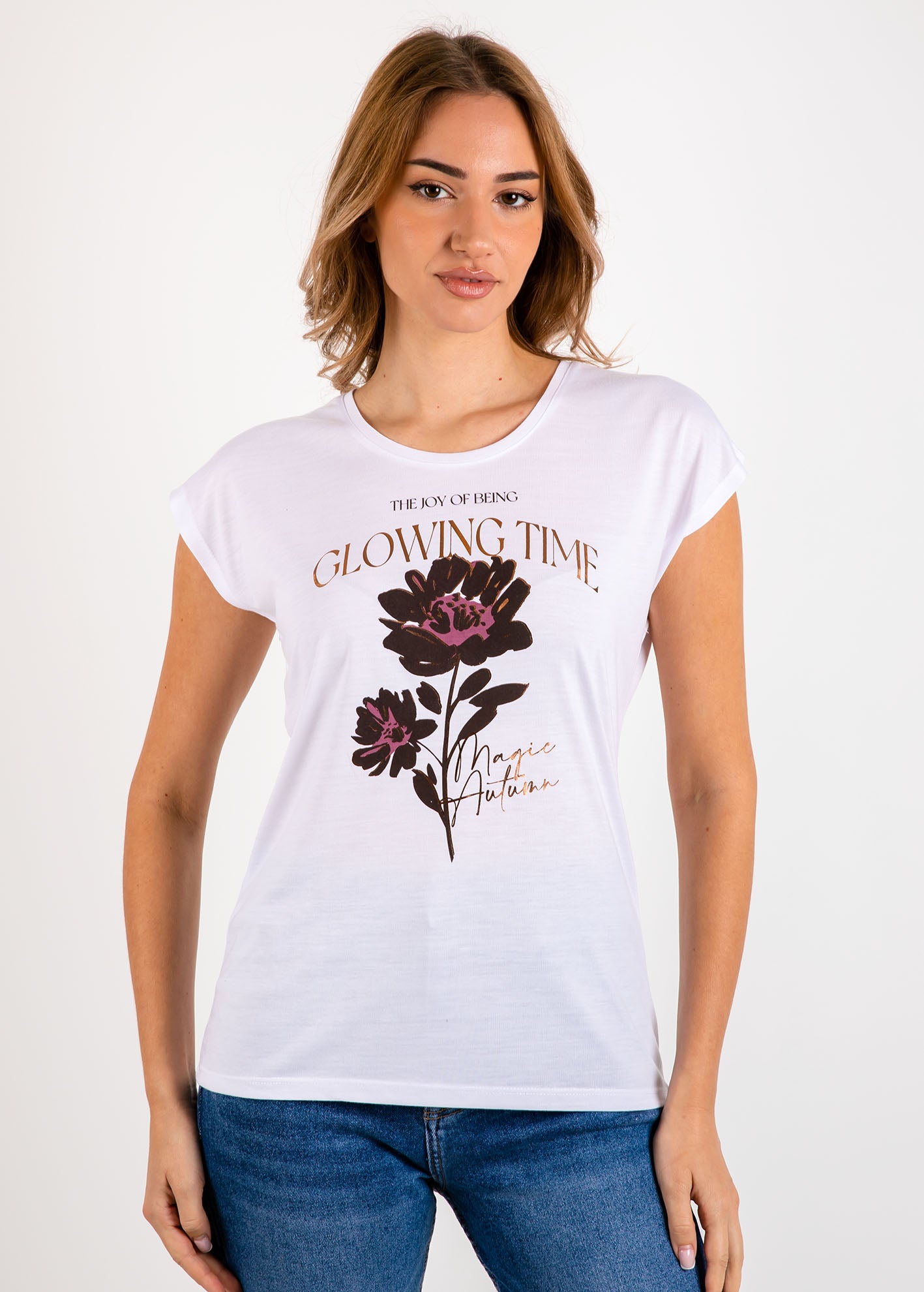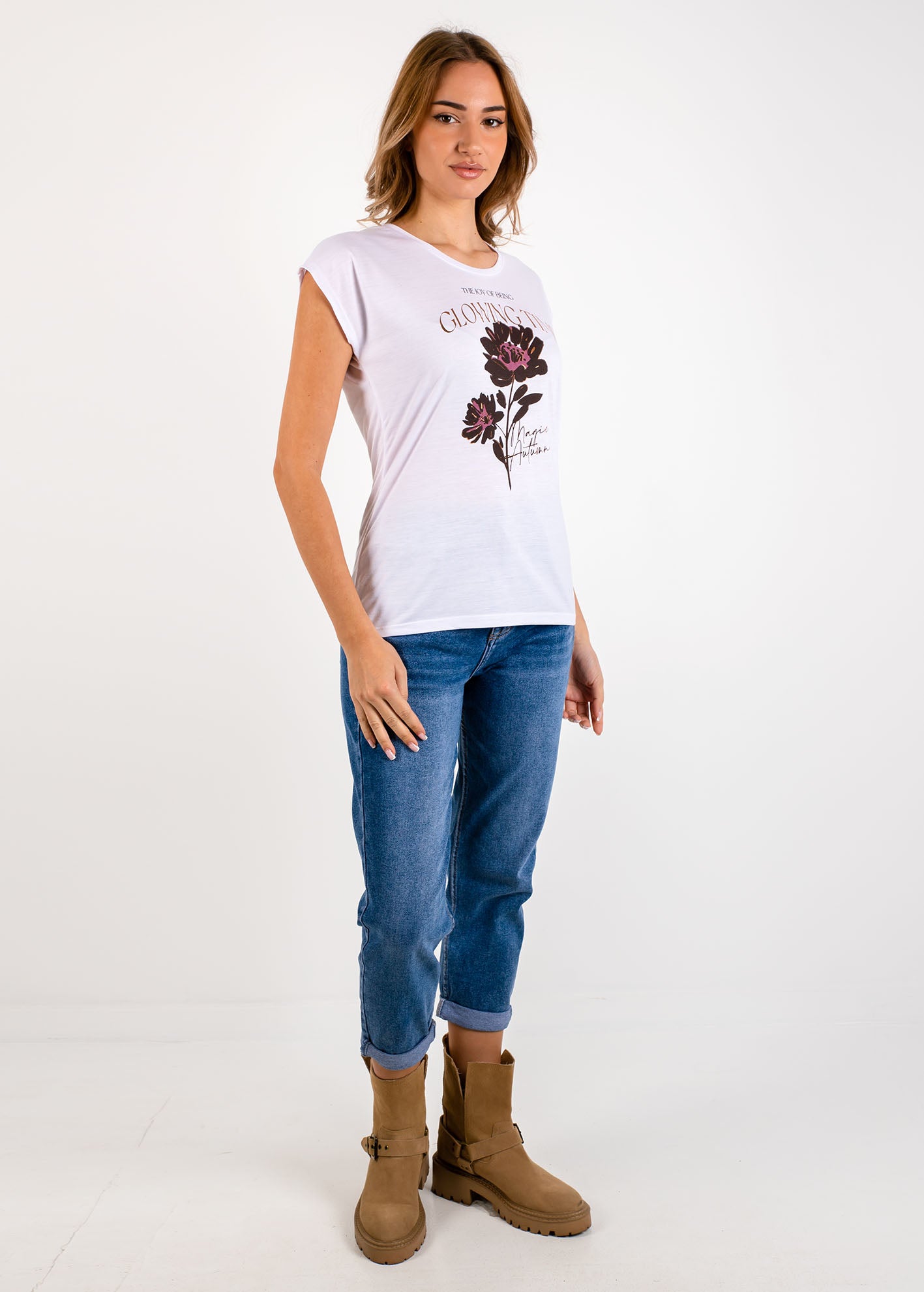 Μπλούζα με κοντό μανίκι, στρογγυλή λαιμόκοψη και σχέδιο με τύπωμα μπροστά.