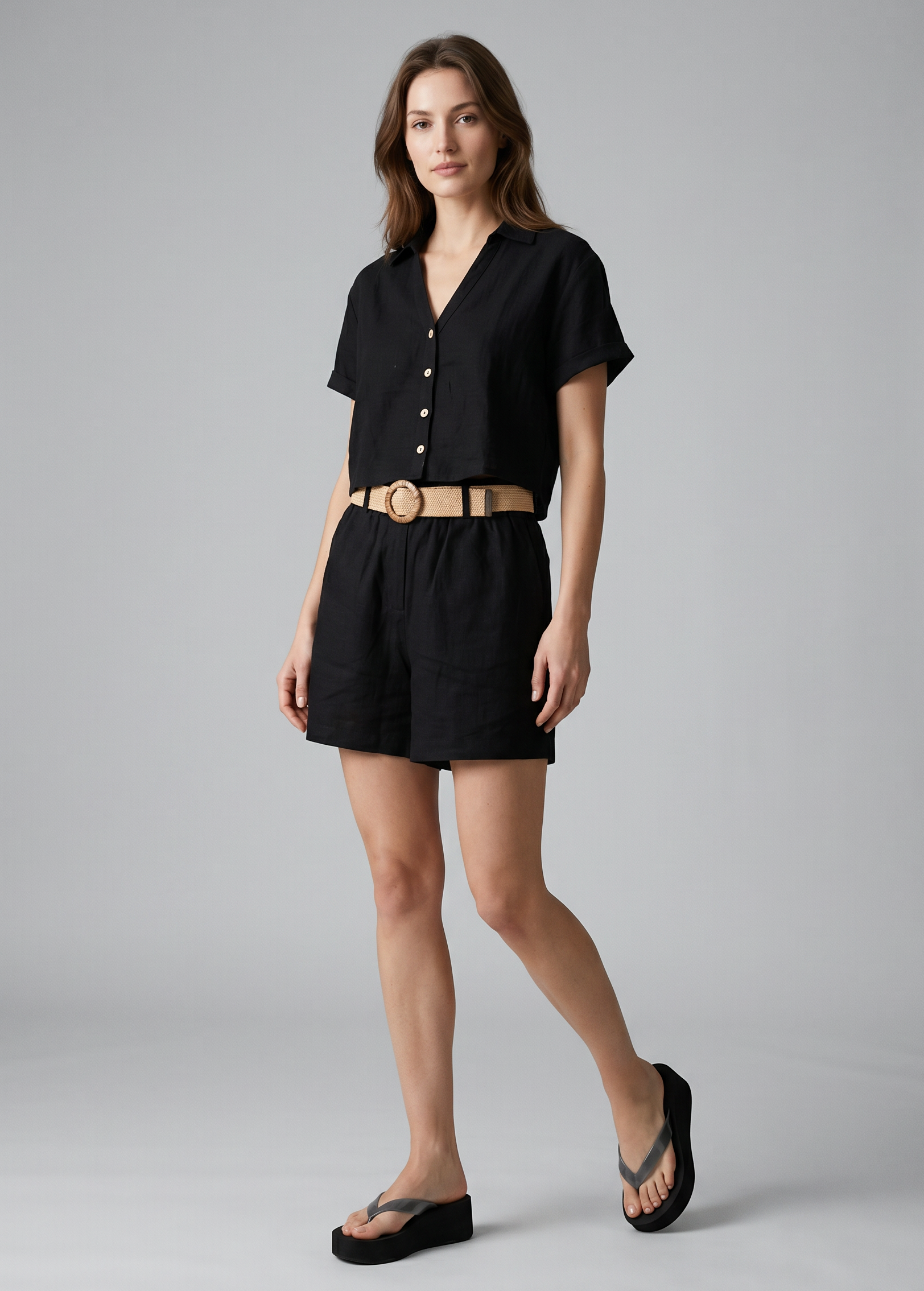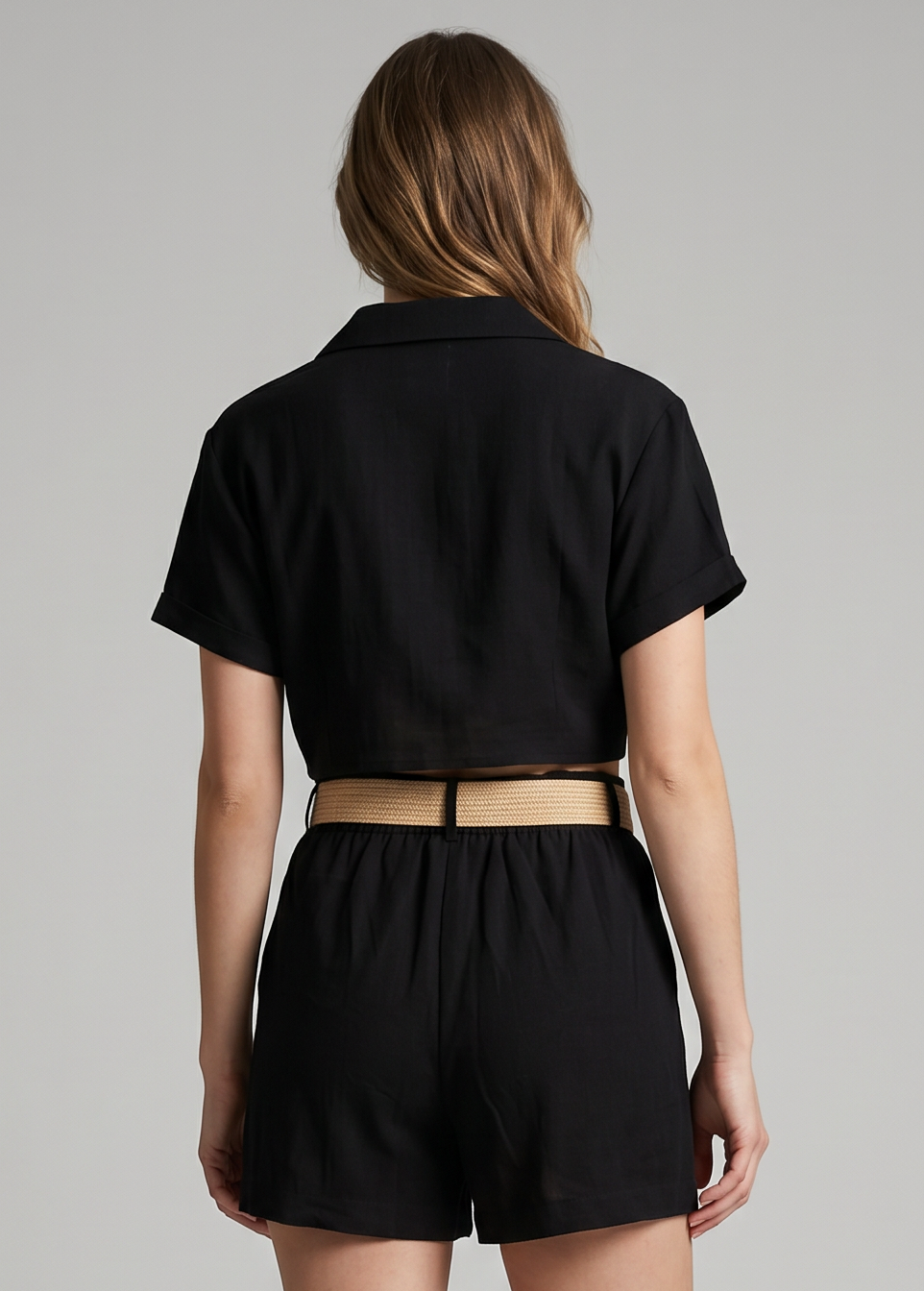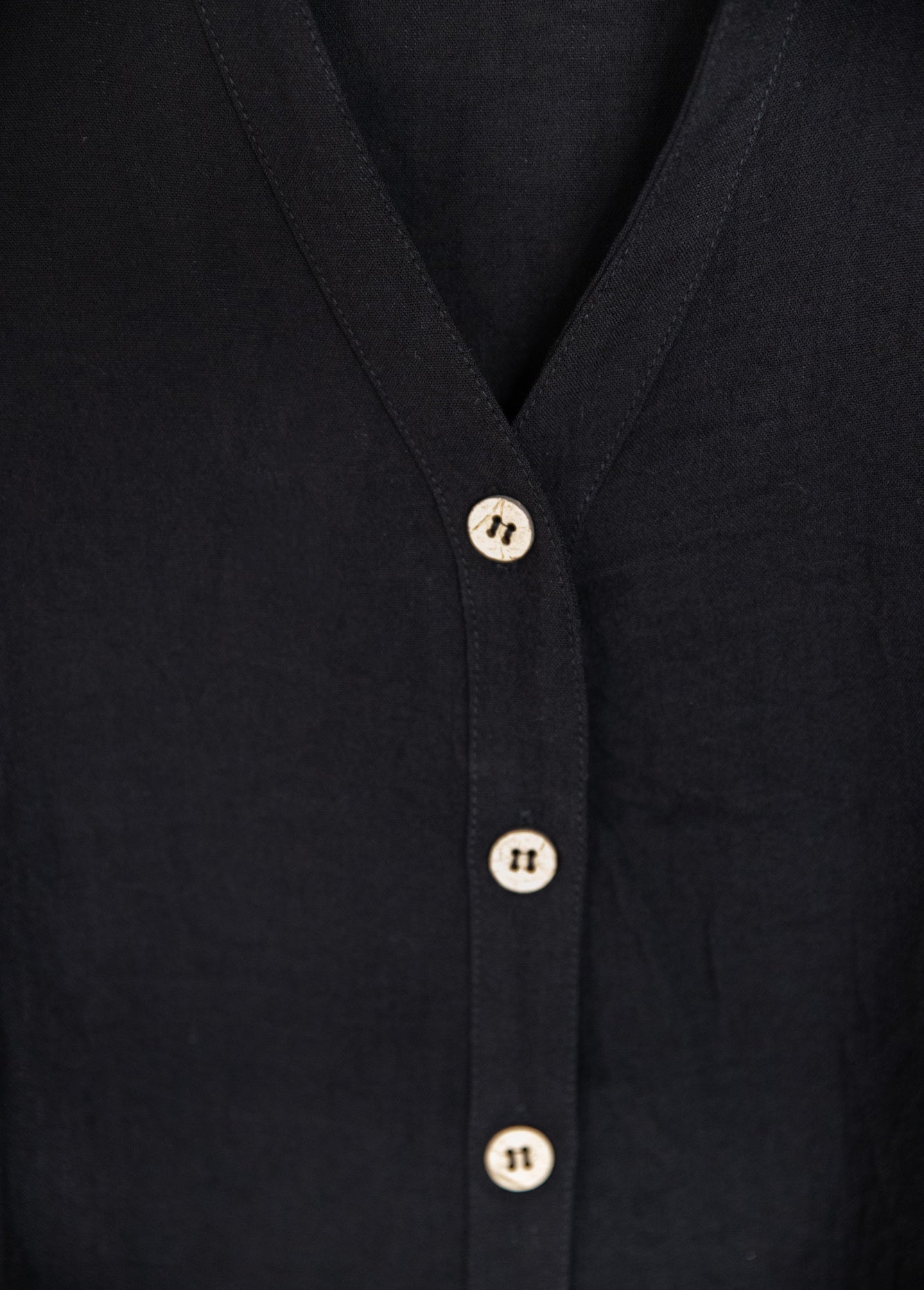 Γυναικείο πουκάμισο κοντομάνικο όψη λινού 'Agathe'-BLACK