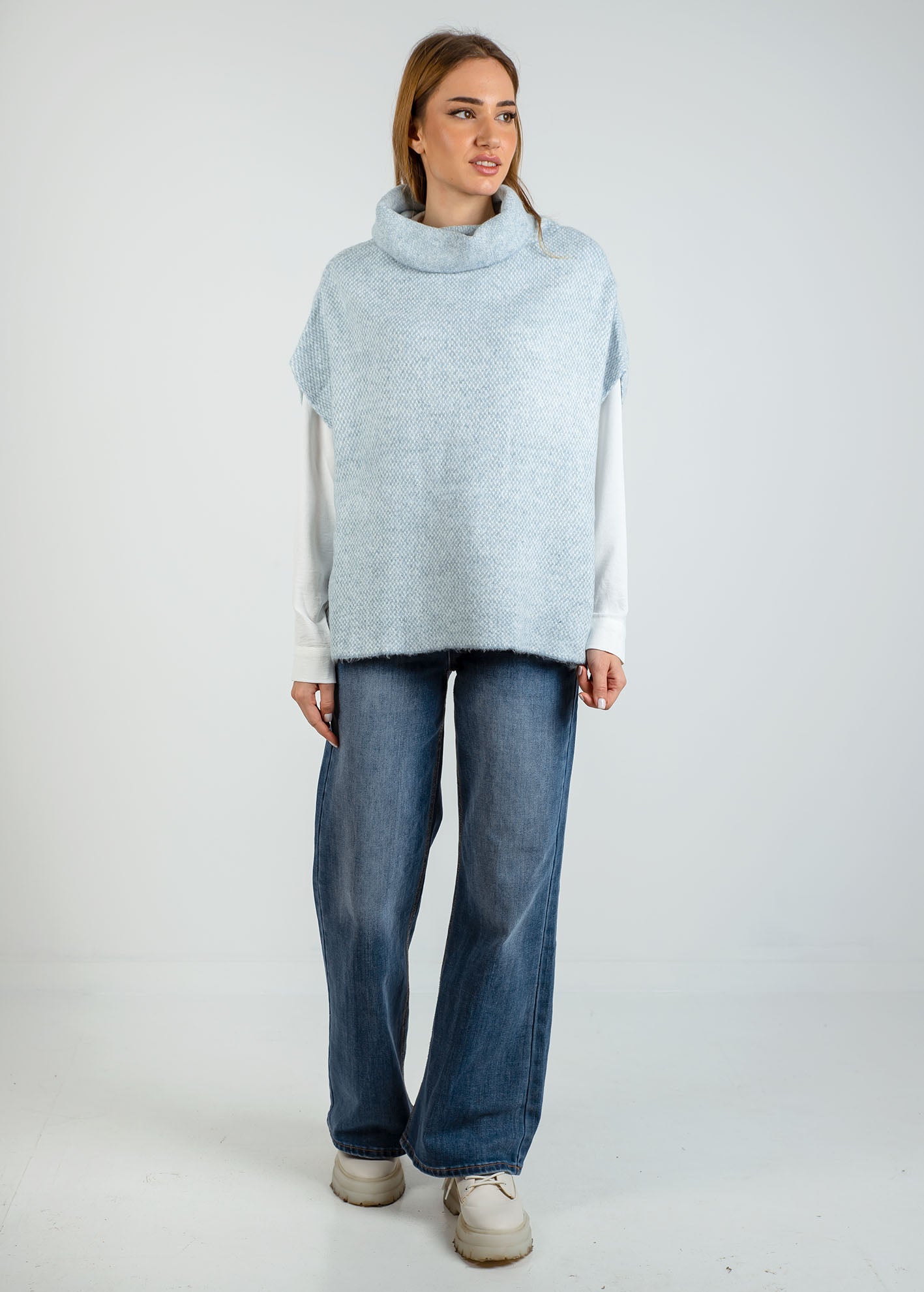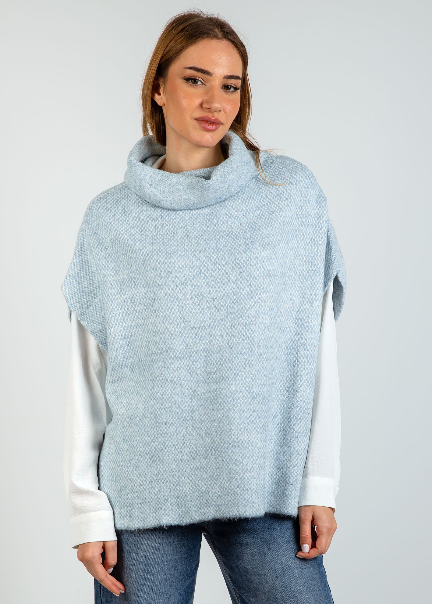 Πουλόβερ oversized με σχέδιο πλέξης, όρθιο γιακά, και κοντό μανίκι.