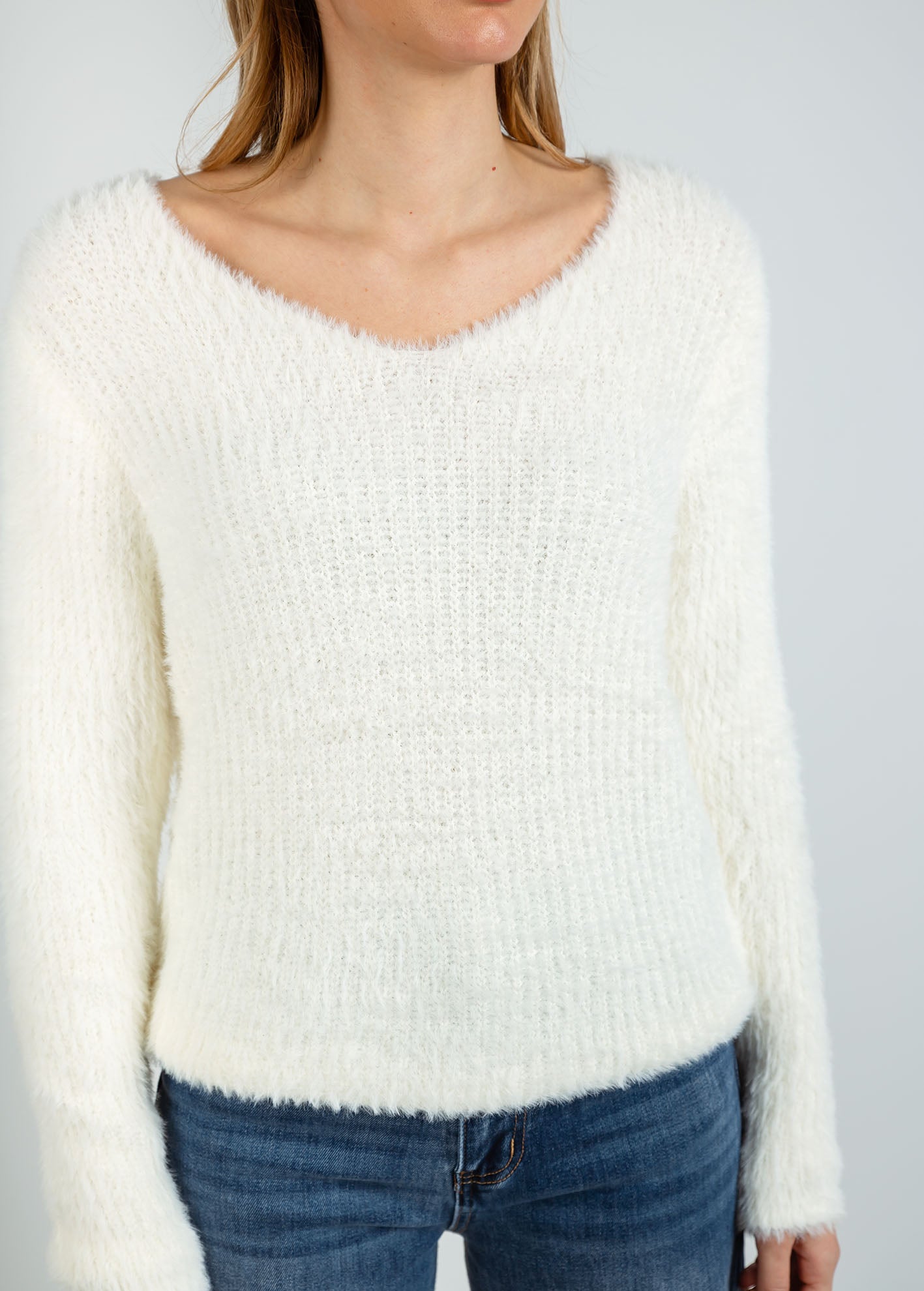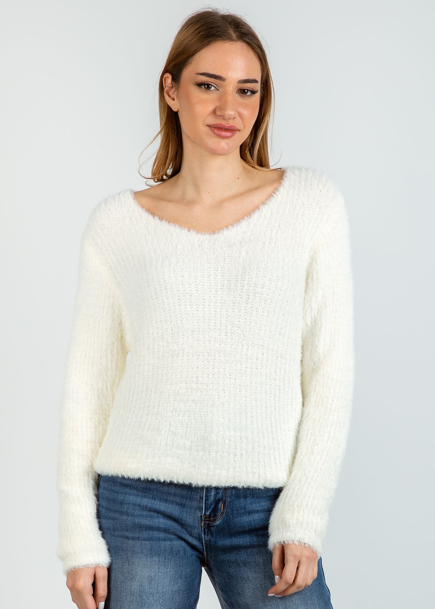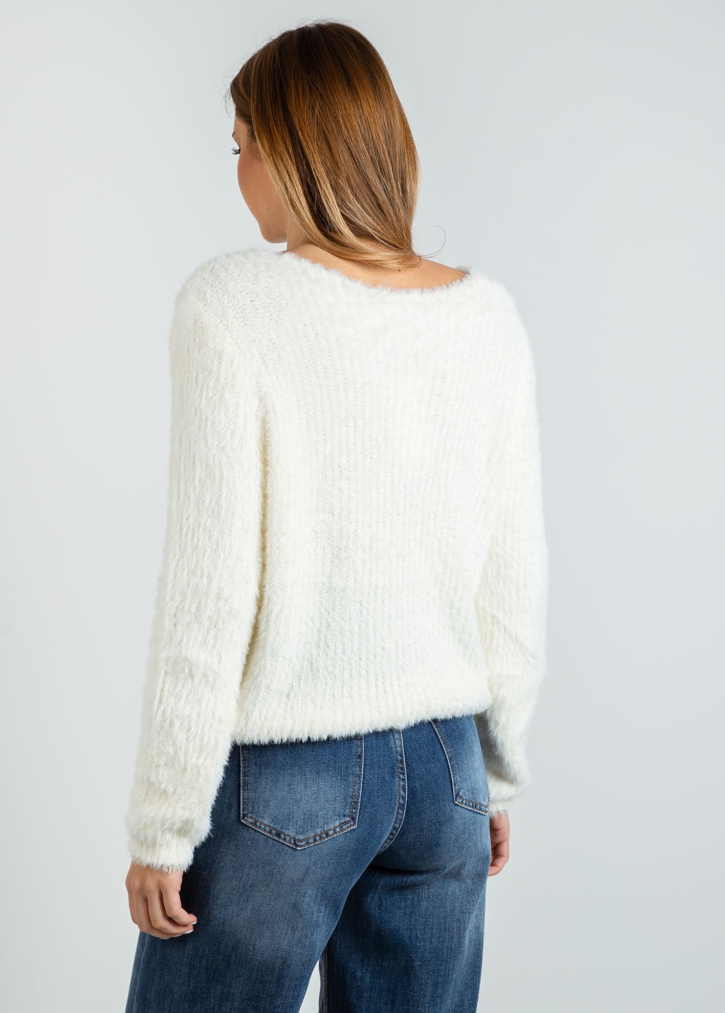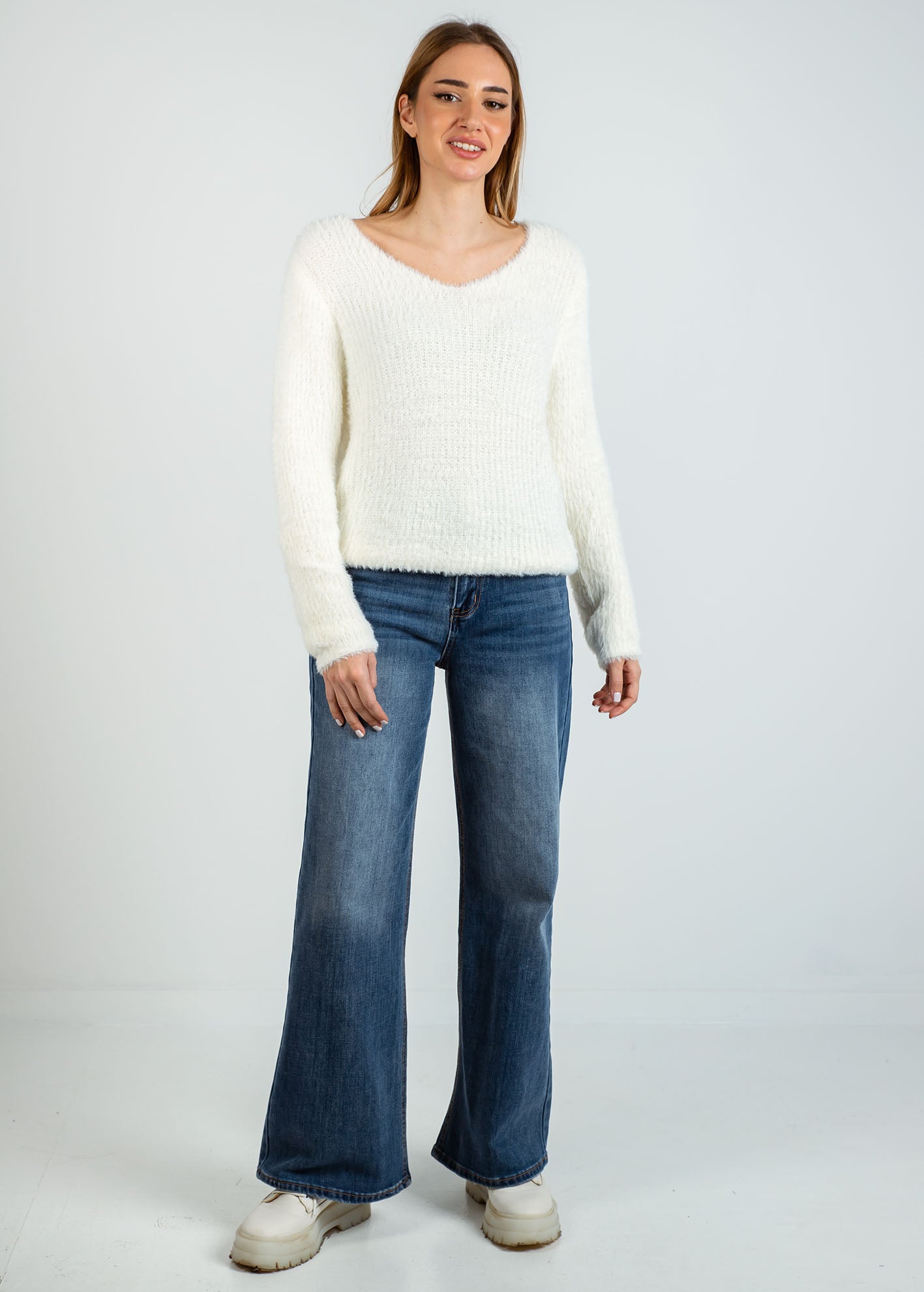 Πουλόβερ με απαλή υφή, μακρύ μανίκι και V ντεκολτέ.