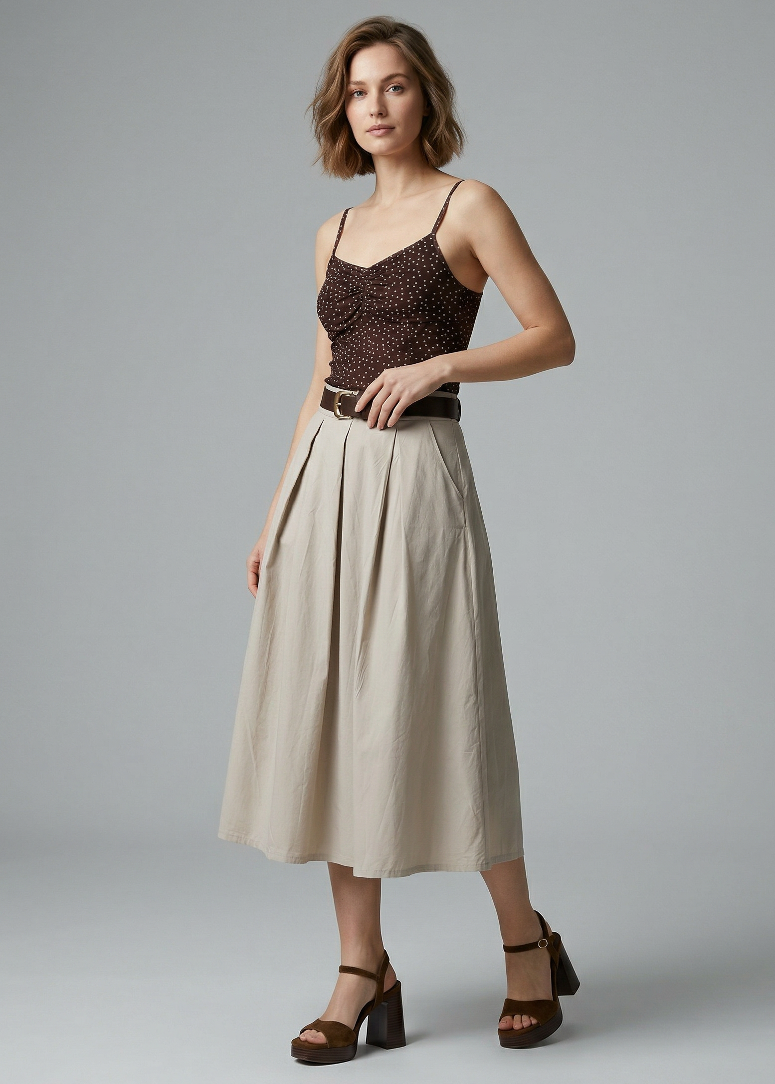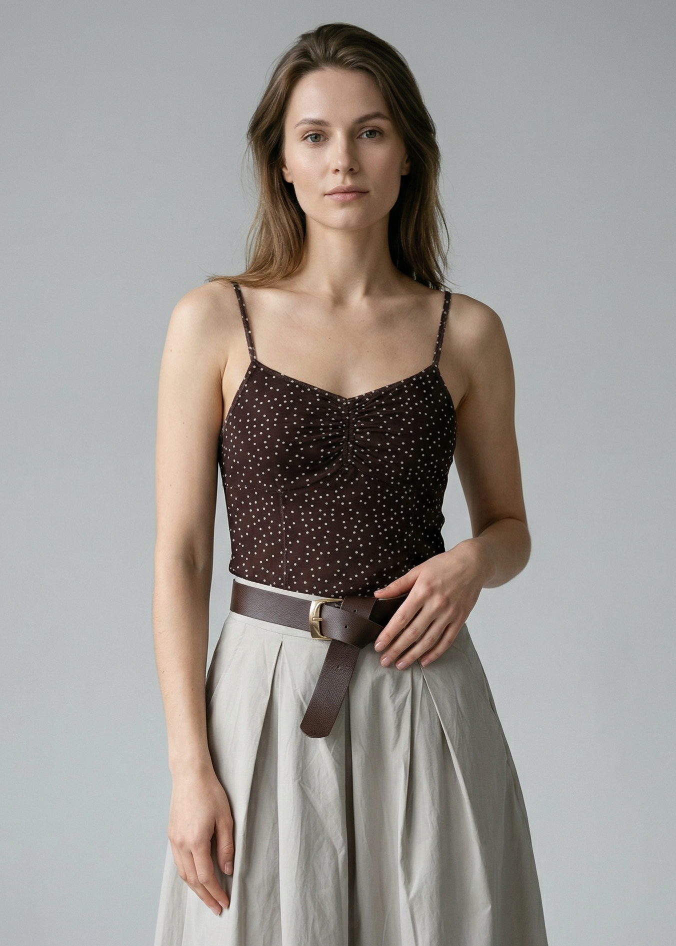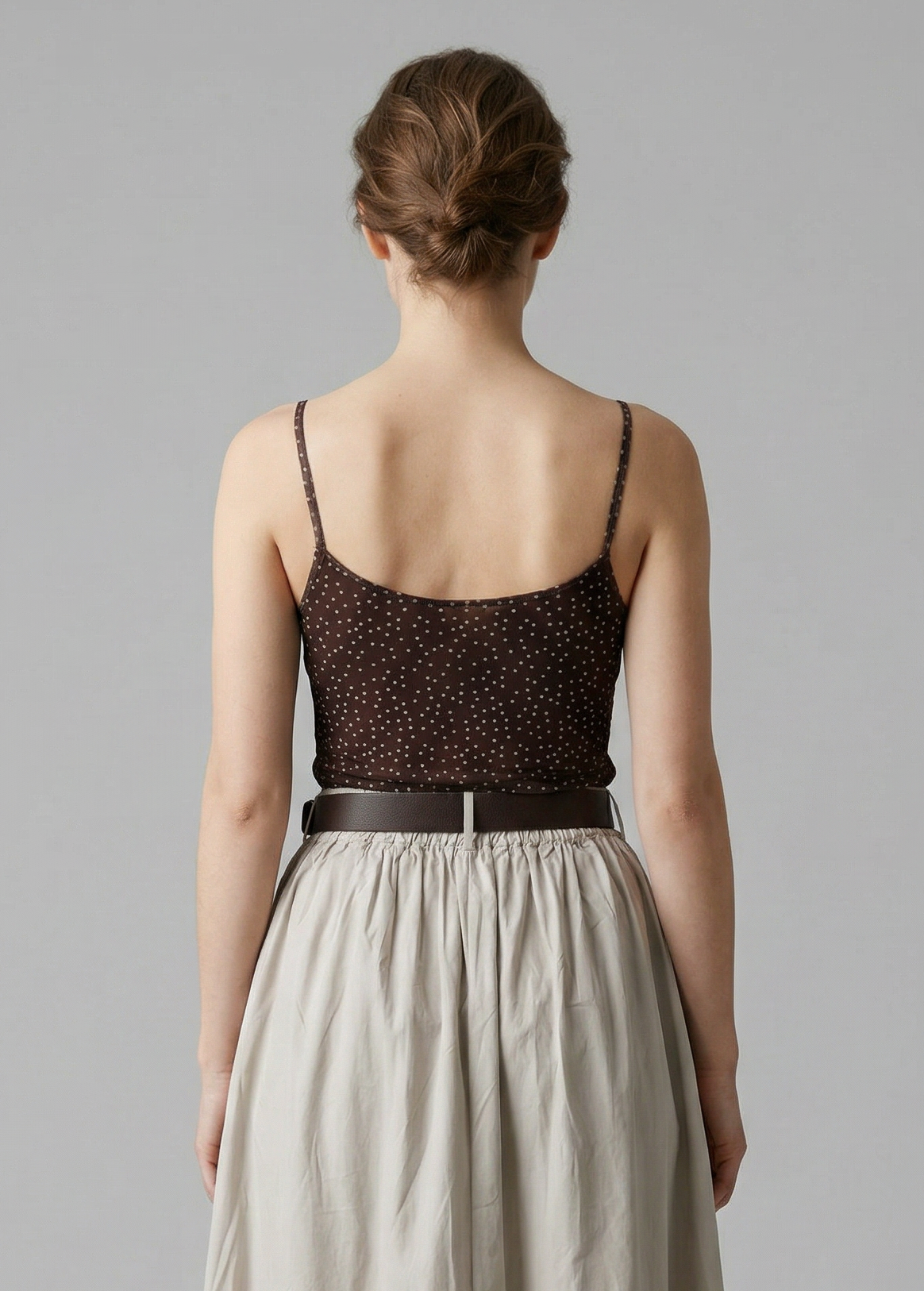 Τοπ αμάνικο με πουά σχέδιο, λεπτές τιράντες και V ντεκολτέ.