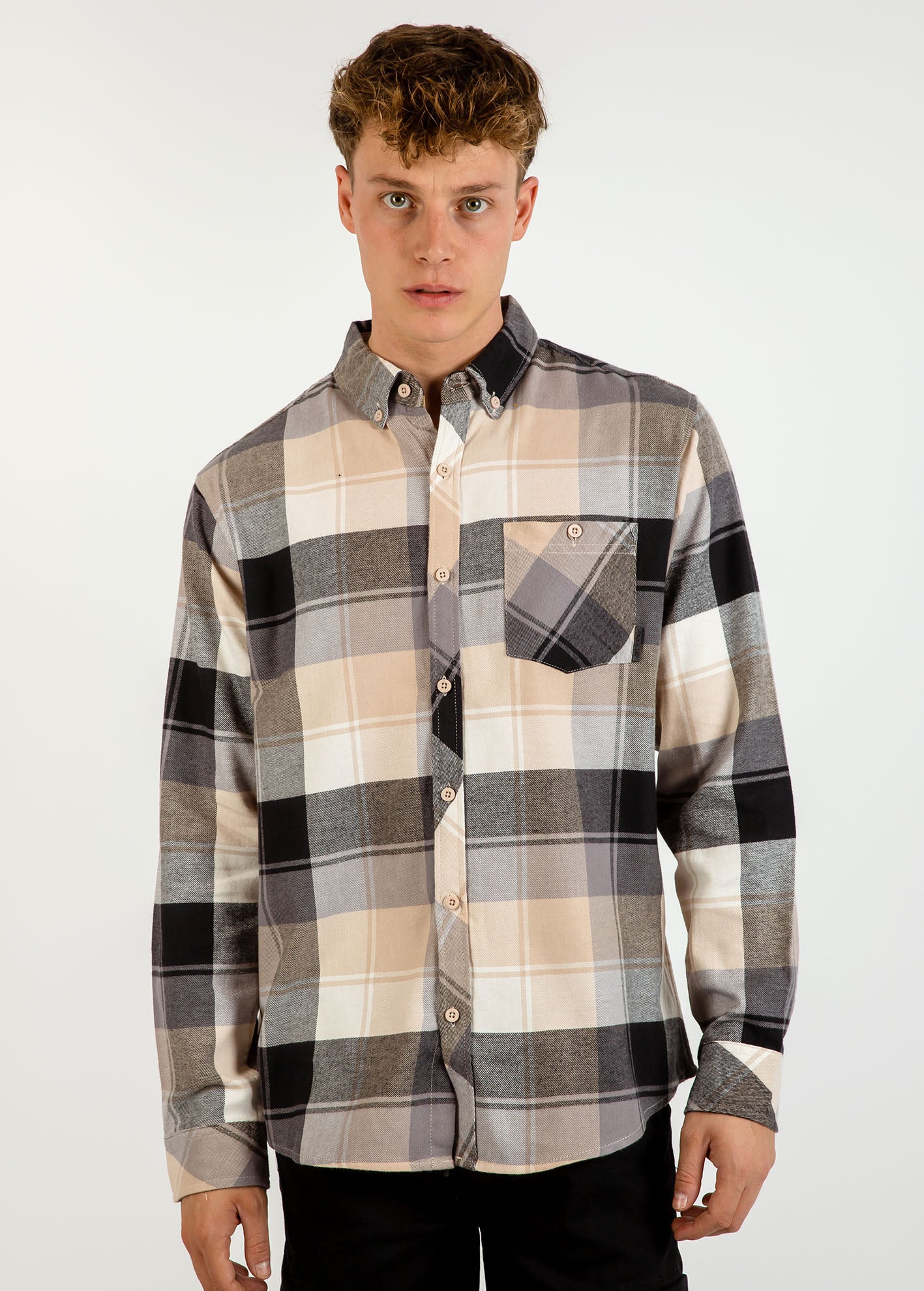Πουκάμισο relaxed fit από βαμβακερό ύφασμα με φινίρισμα φανέλας. Γιακάς και μακρύ μανίκι που καταλήγει σε μανσέτα με κουμπί. Τσέπη patch στο στήθος. Κλείσιμο μπροστά με κουμπιά.