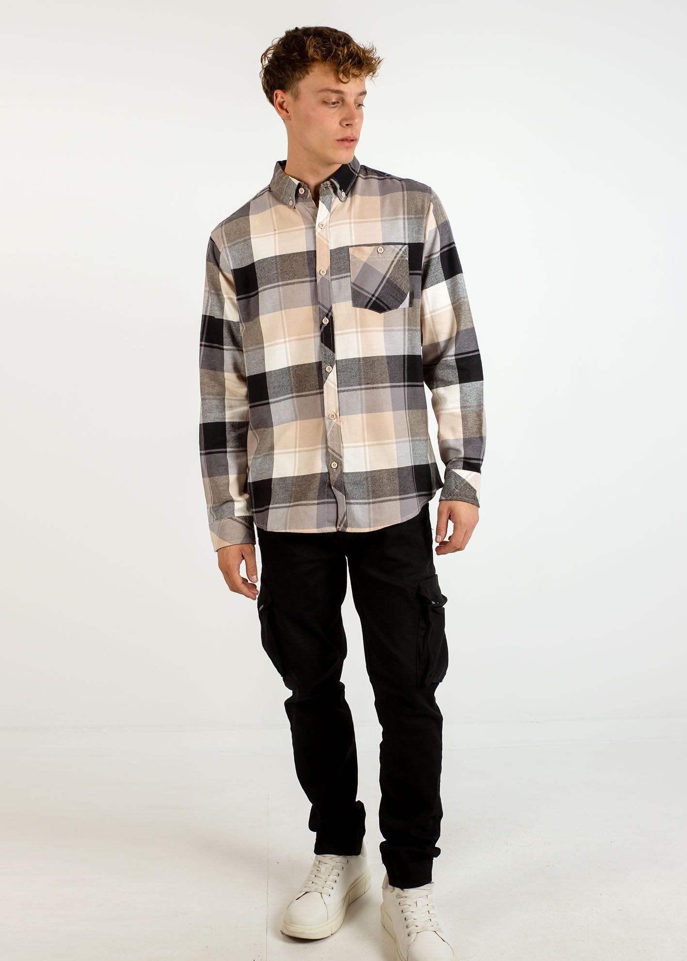 Ανδρικό καρό πουκάμισο φανέλα Regular fit 'Gagger'-BEIGE