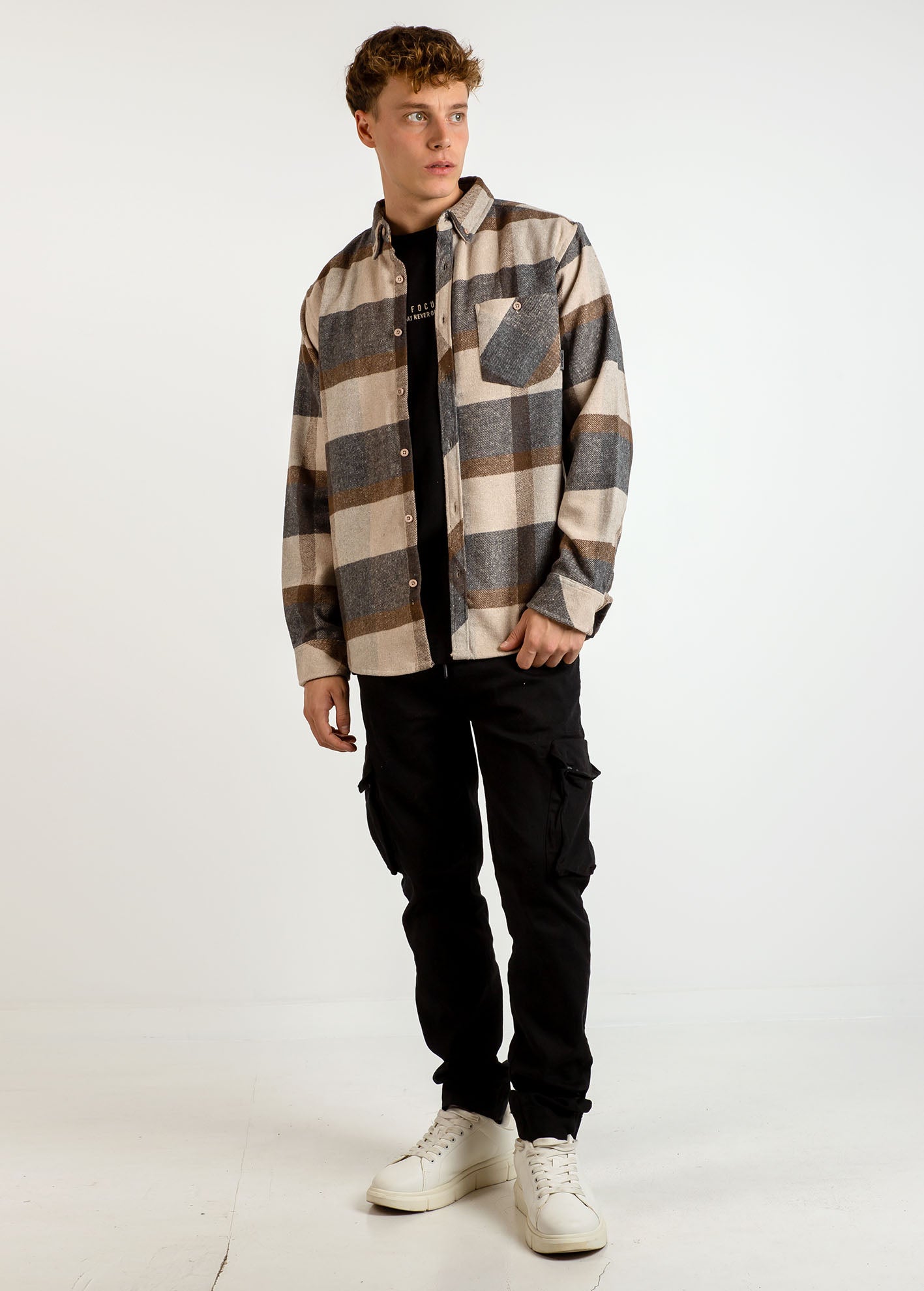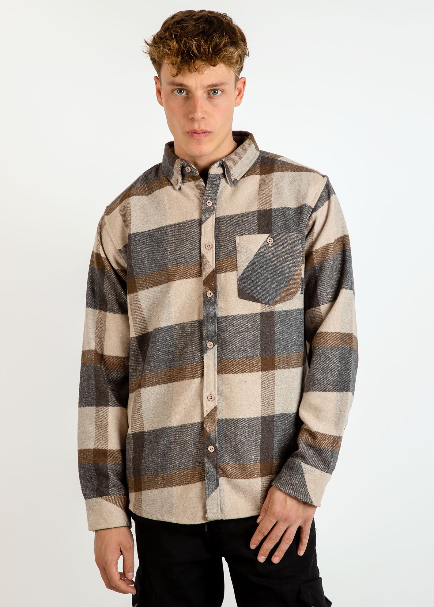 Πουκάμισο relaxed fit από βαμβακερό ύφασμα με φινίρισμα φανέλας. Γιακάς και μακρύ μανίκι που καταλήγει σε μανσέτα με κουμπί. Τσέπη patch στο στήθος. Κλείσιμο μπροστά με κουμπιά.