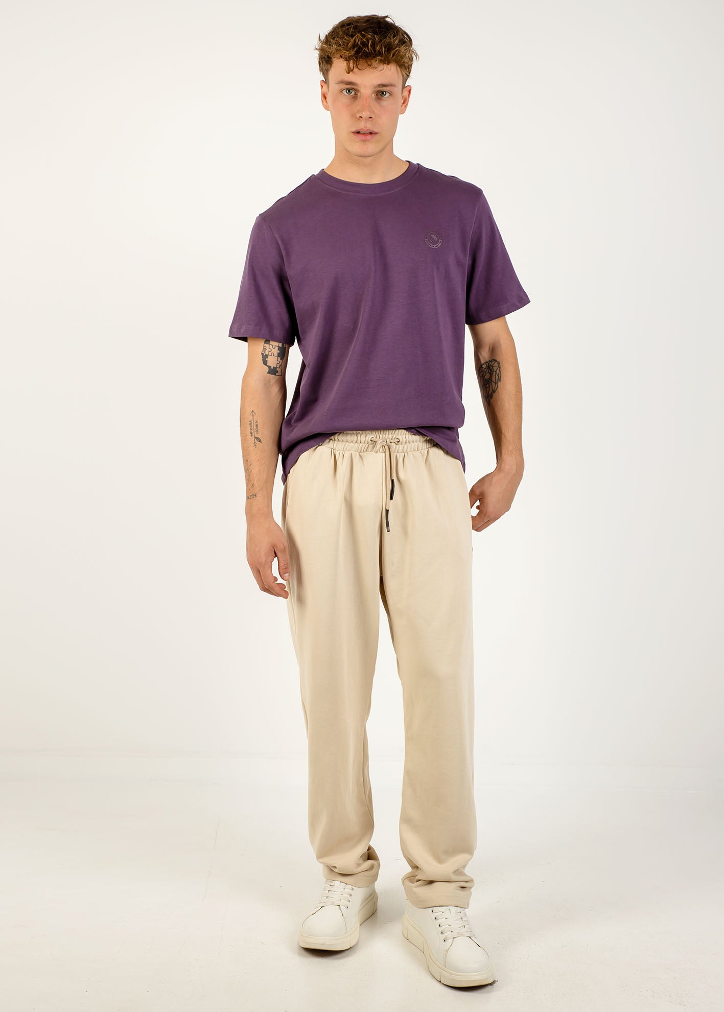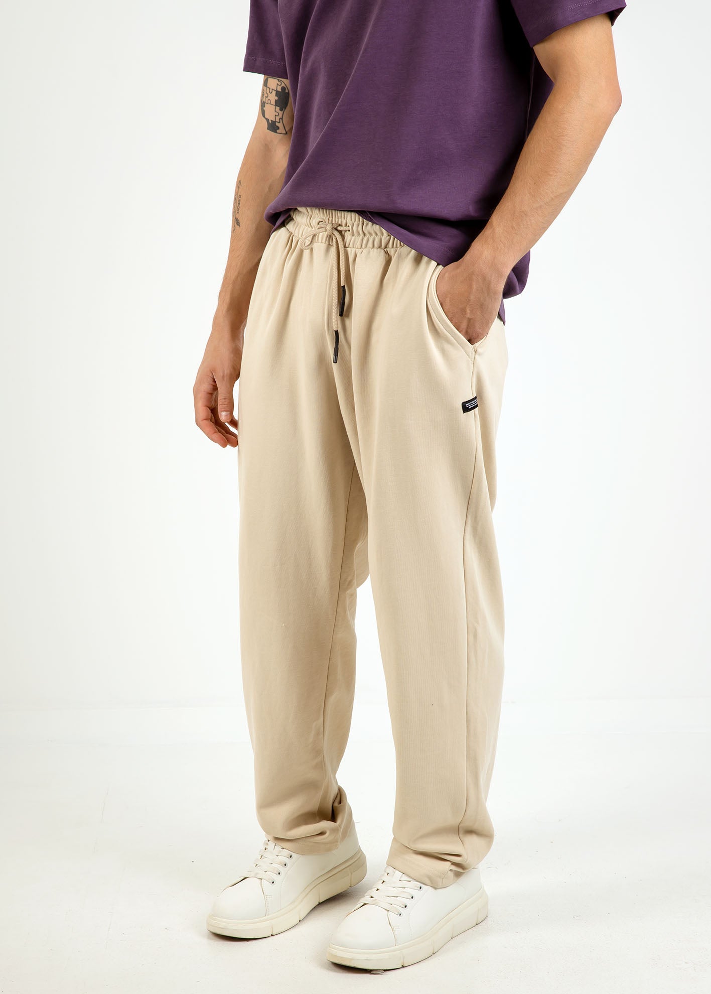 Παντελόνι φούτερ βαμβακερό χωρίς χνούδι στο εσωτερικό με ελαστική μέση και τσέπες στα πλάγια.