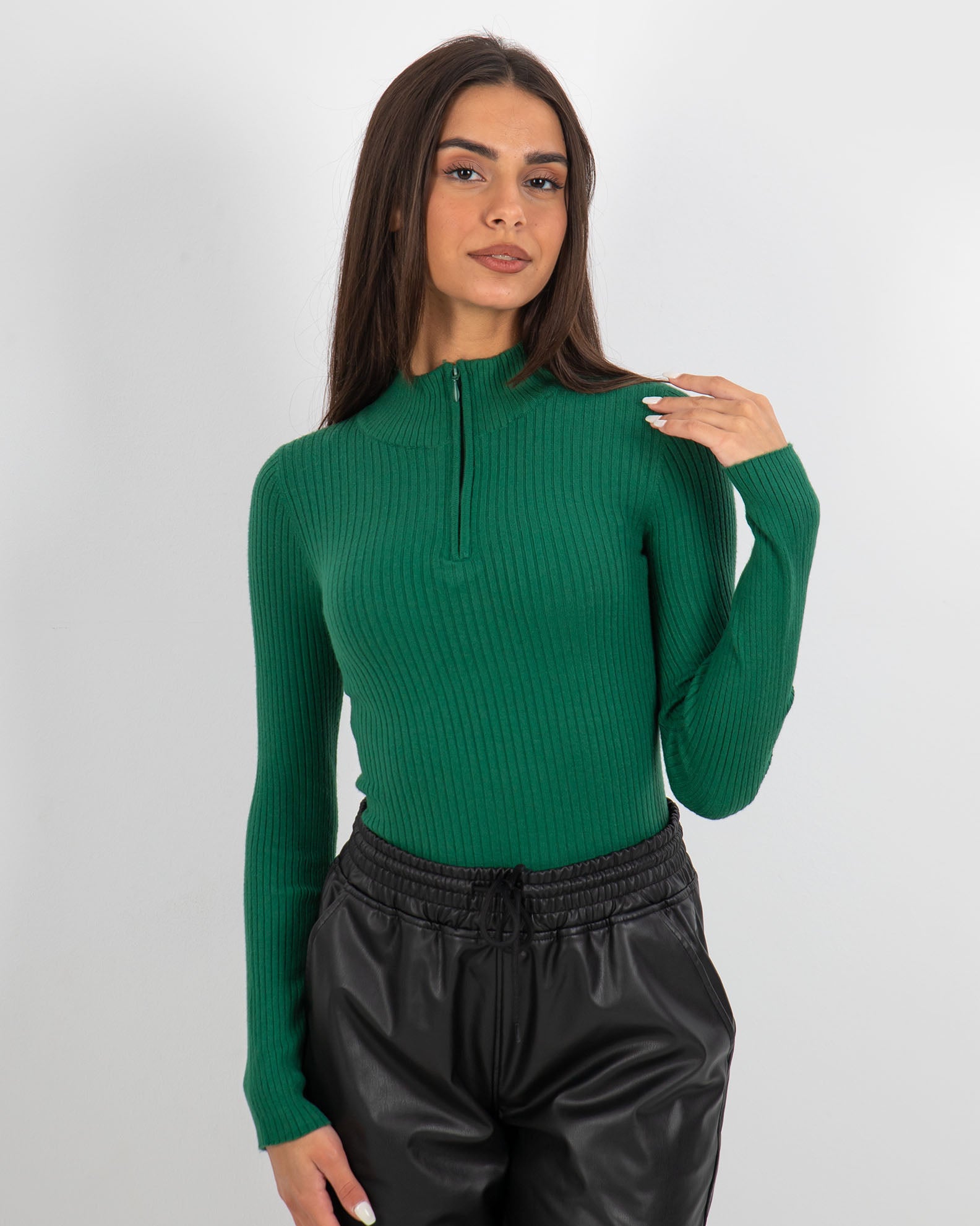 Γυναικεία Μπλούζα με Όρθιο Γιακά και Φερμουάρ 'Flora'-eden green