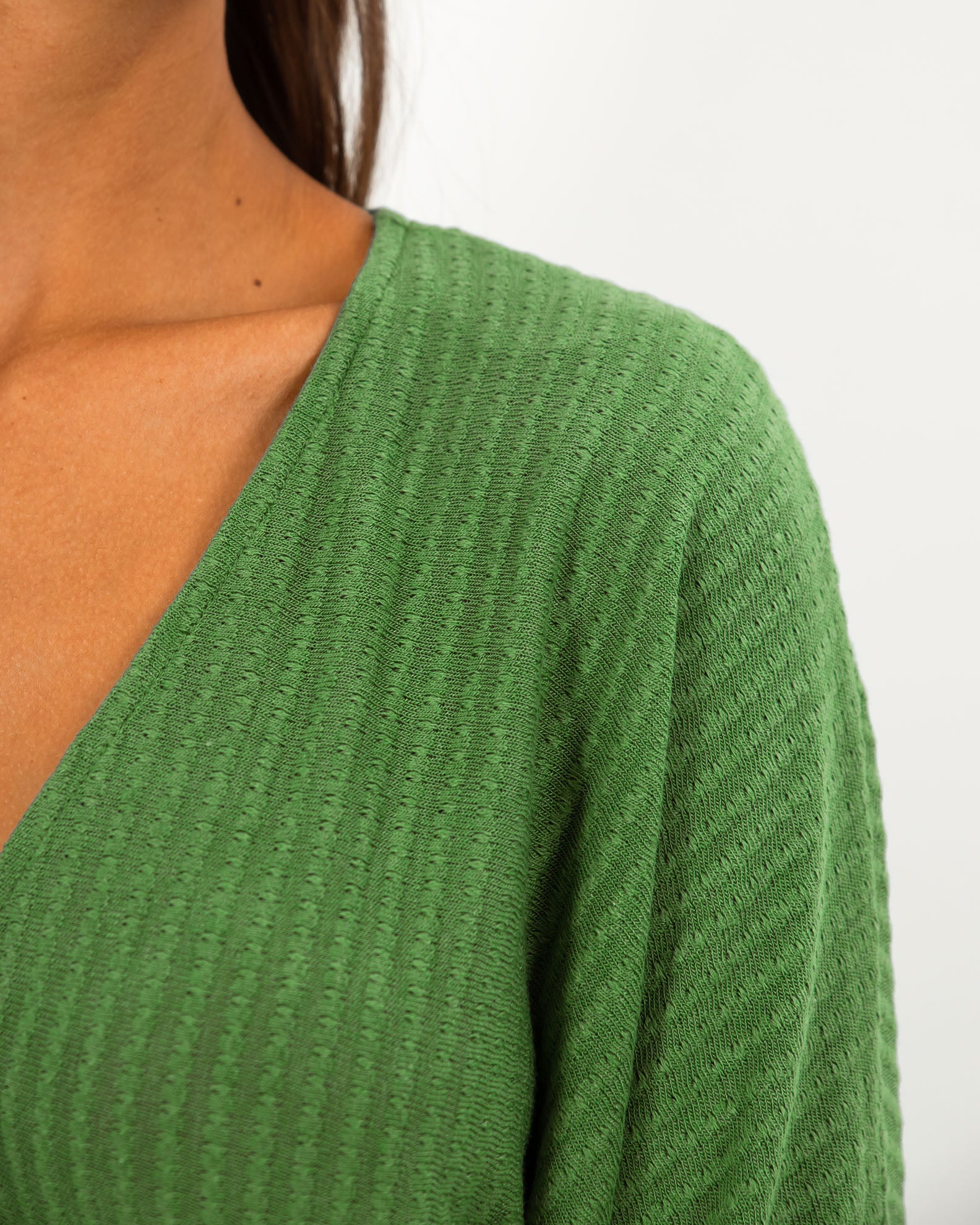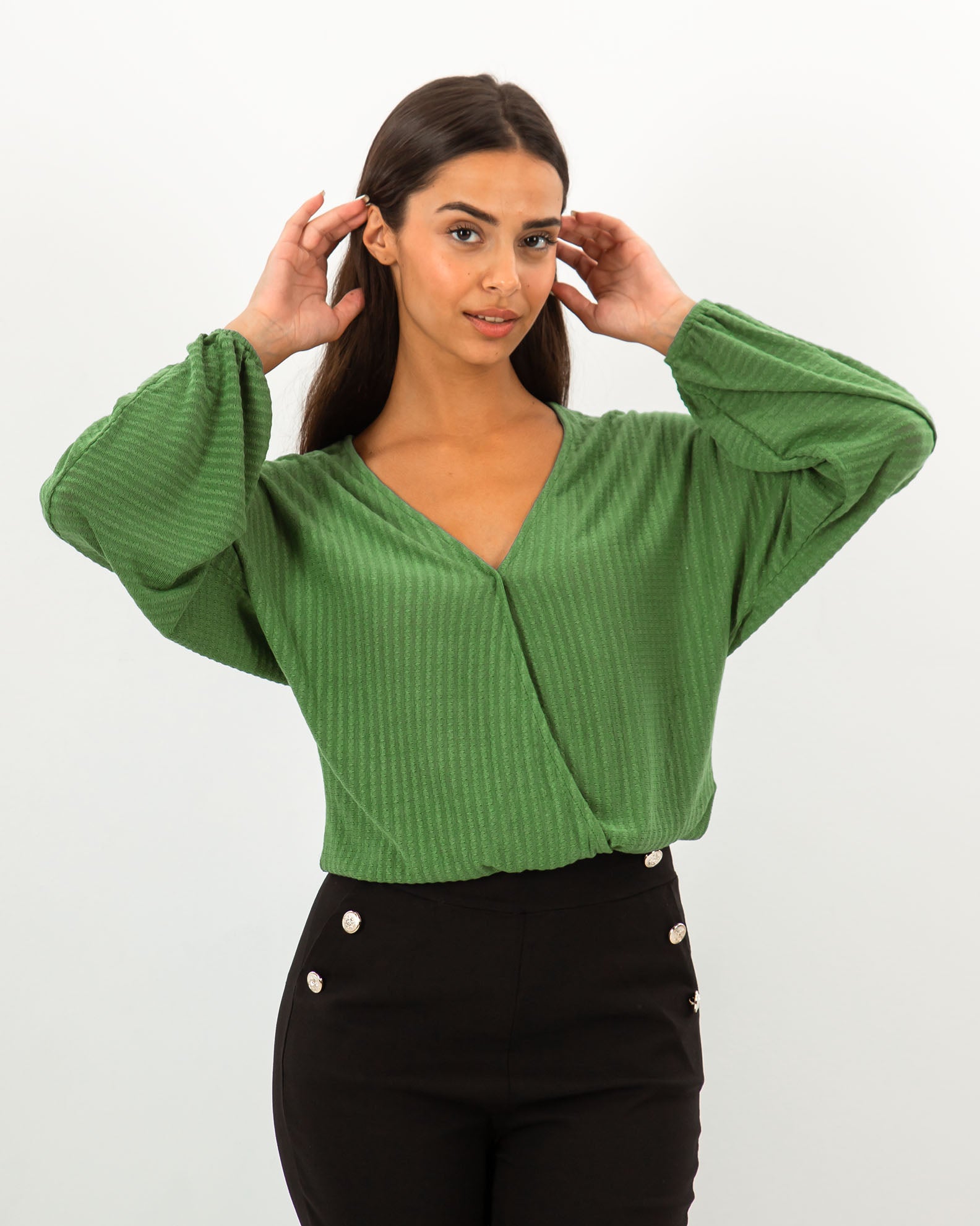 Ριπ κρουαζέ μπλούζα με μακρύ μανίκι και V ντεκολτέ. Λεπτομέρεια με ελαστικό τελείωμα.