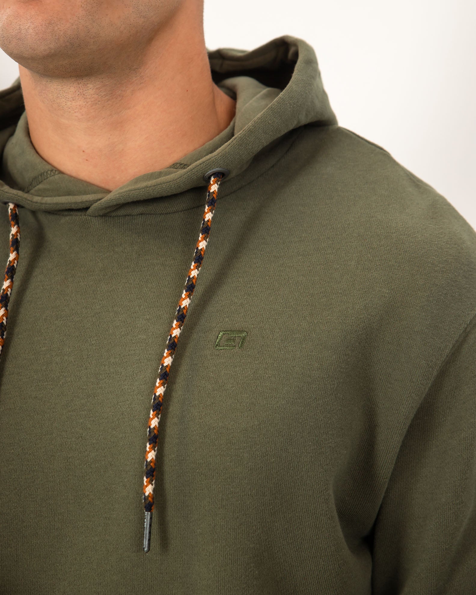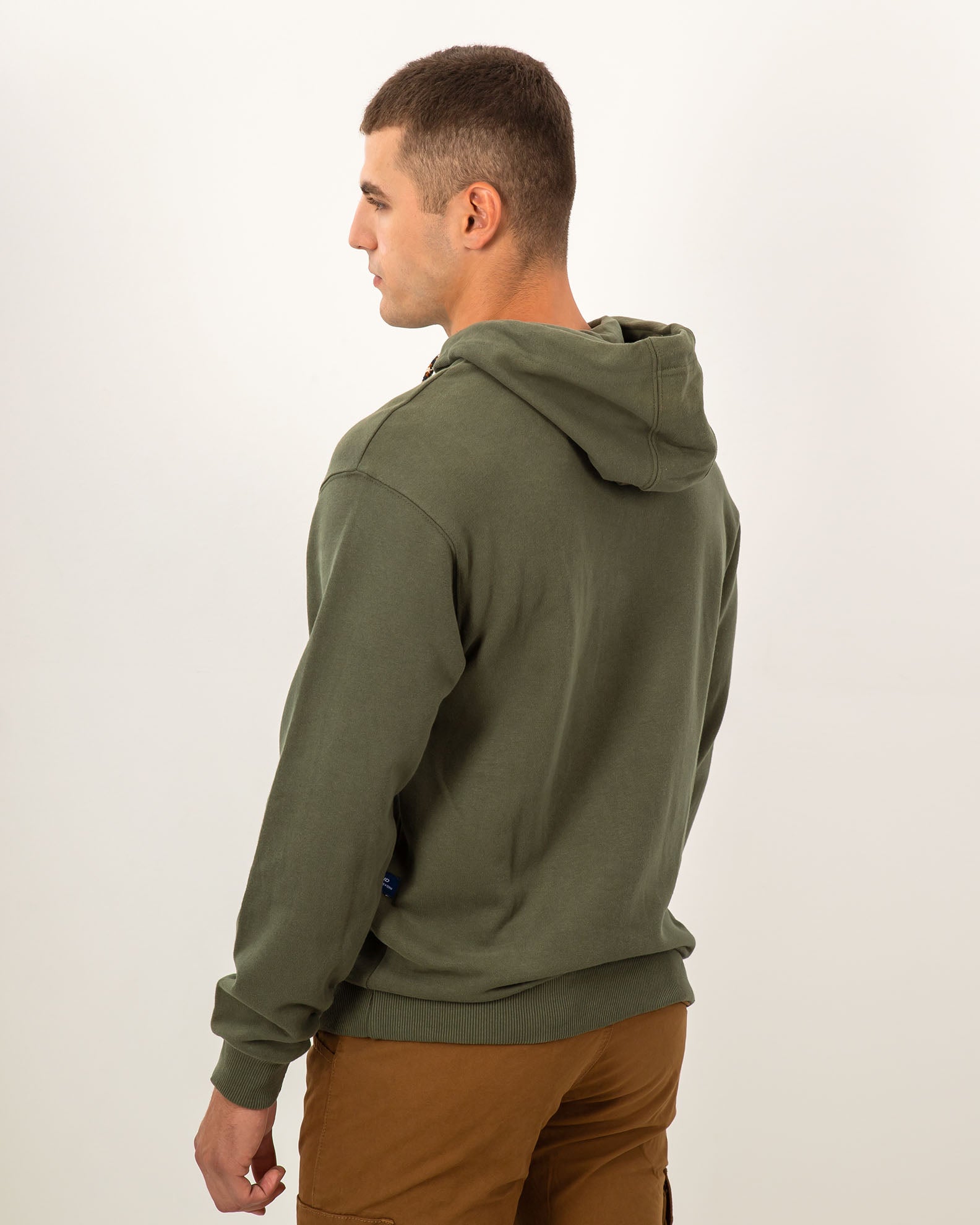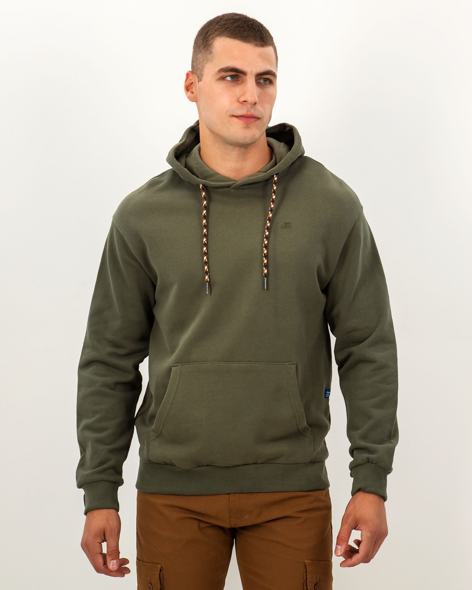 Φούτερ με κουκούλα, μακρύ μσνίκι, τσέπη μπροστά και ελαστικό τελειωμα.