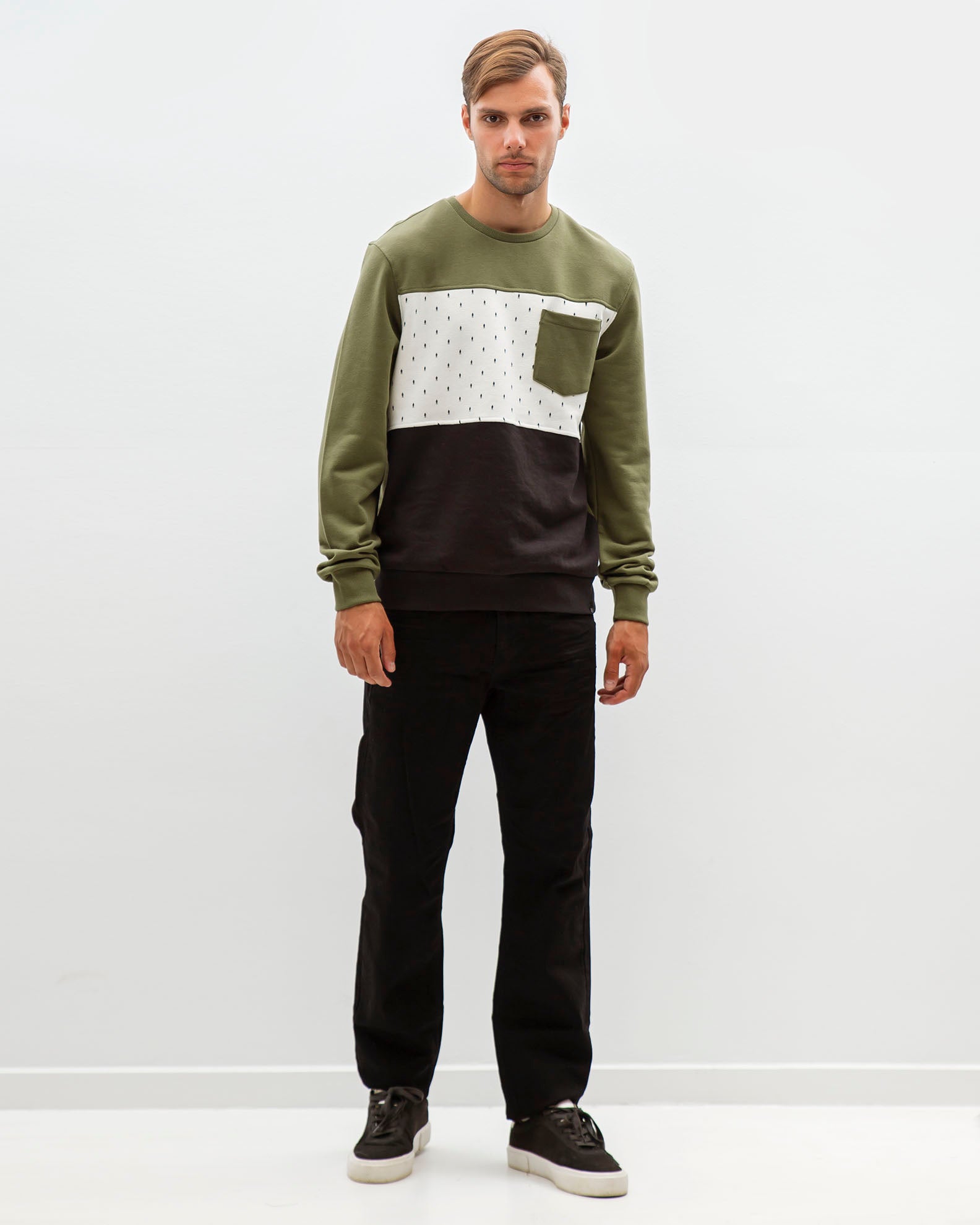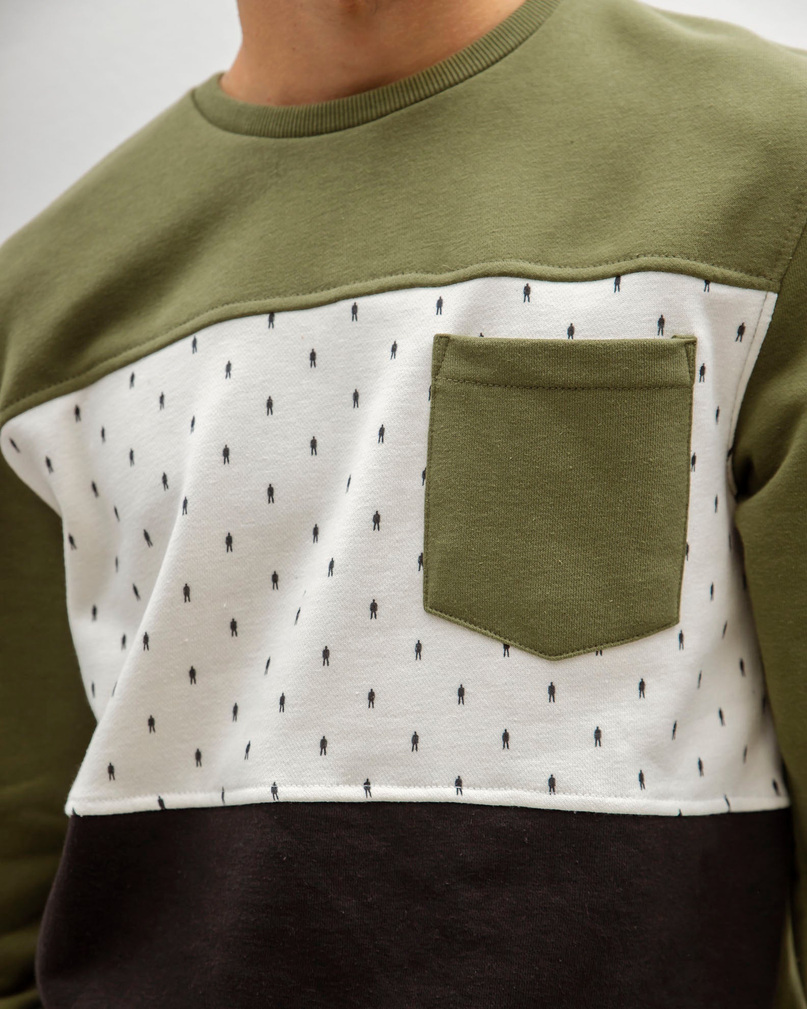 Φούτερ με σχέδιο, στρογγυλή λαιμόκοψη και μακρύ μανίκι. Ελαστικό τελείωμα και λεπτομέρεια με τσέπη patch στο στήθος.