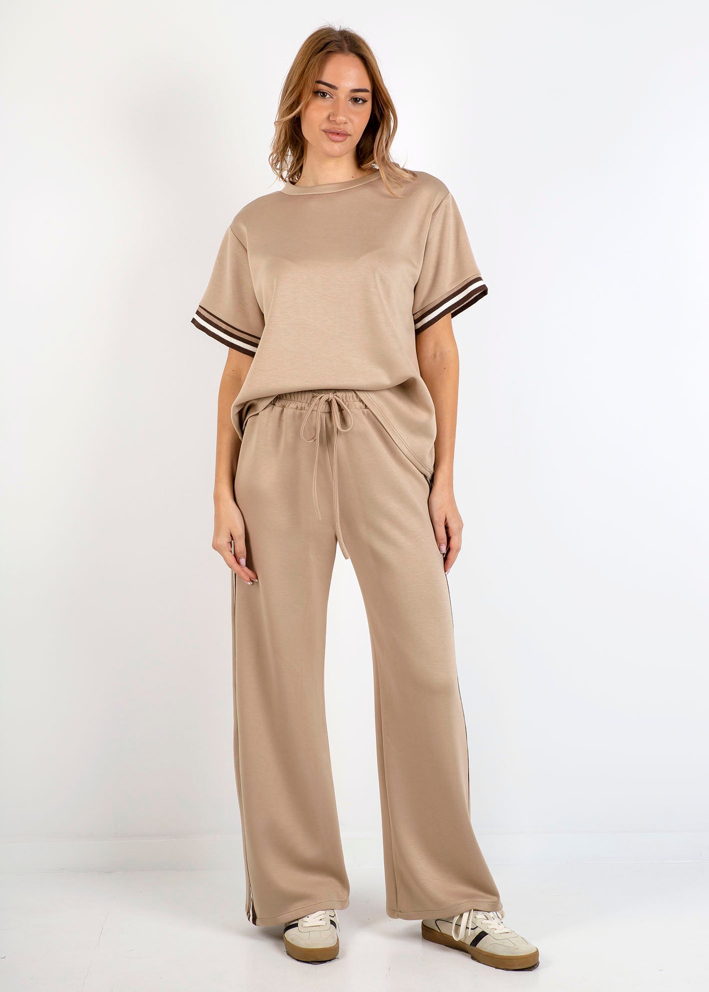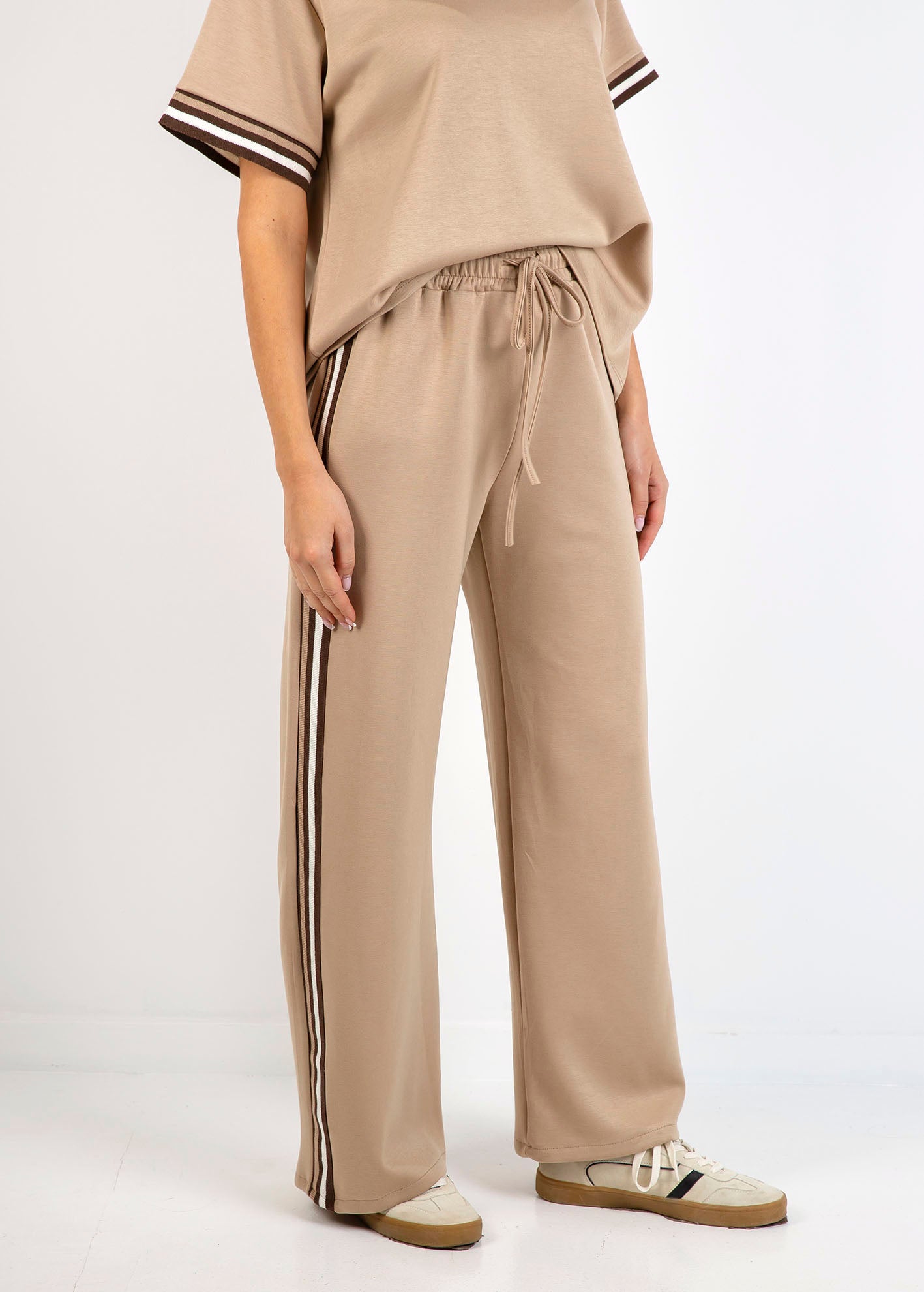 Γυναικείο παντελόνι φούτερ με ριγέ σχέδιο 'F-23936'-TAUPE