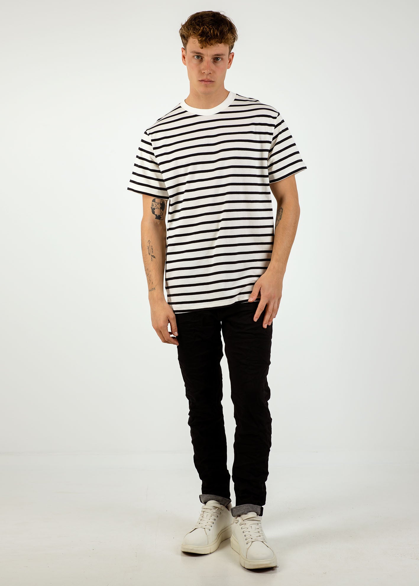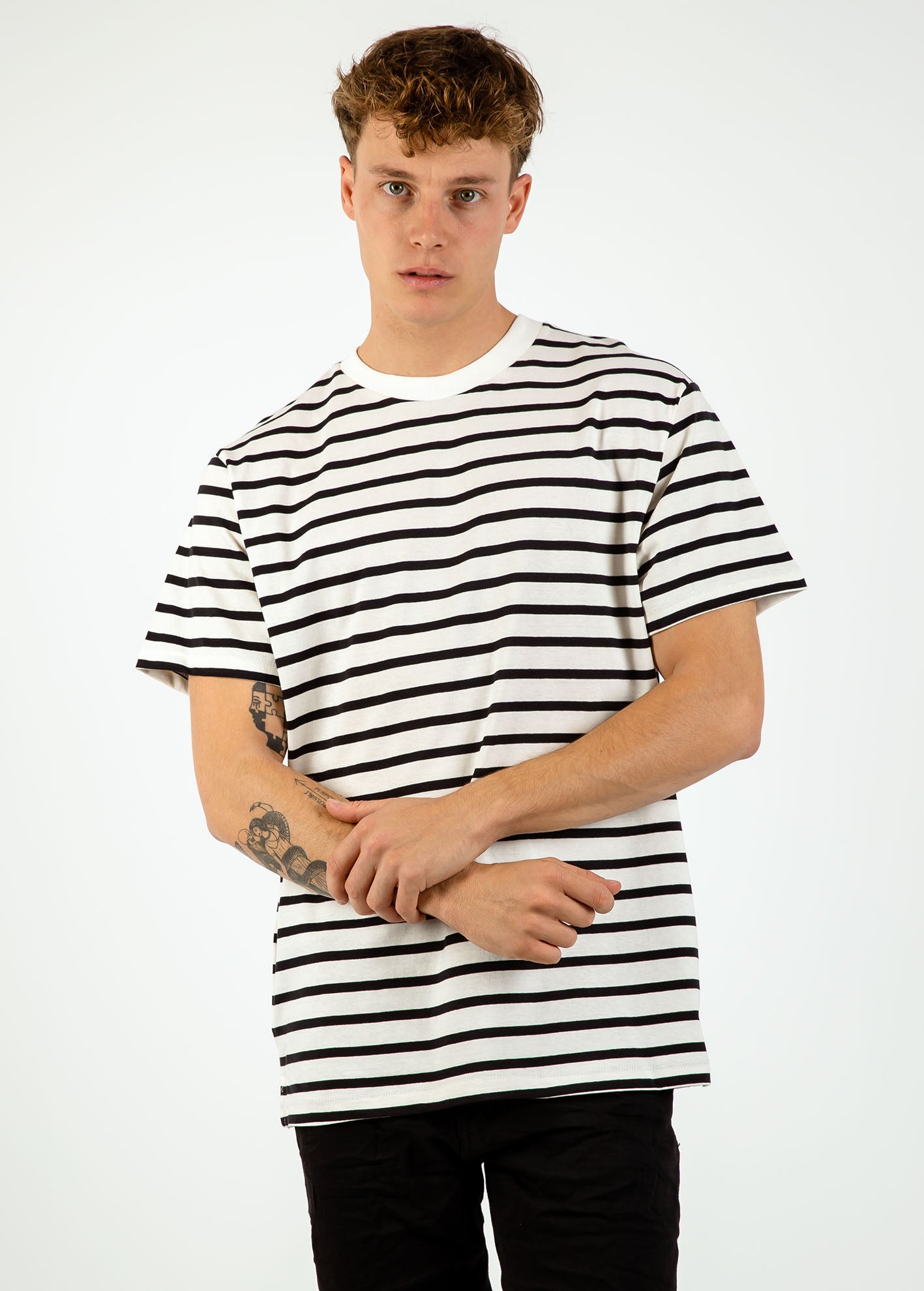 Ανδρική μπλούζα ριγέ κοντομάνικη 'Mathew'-BLACK/OFFWHITE
