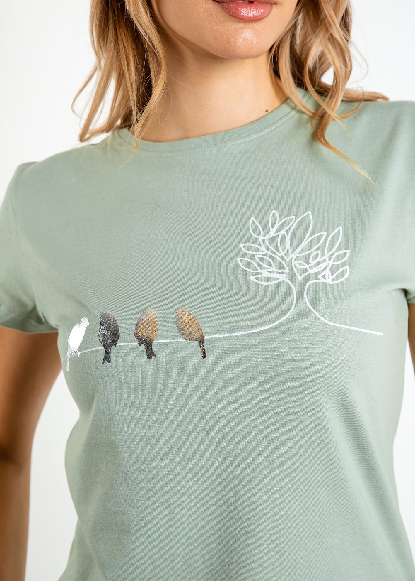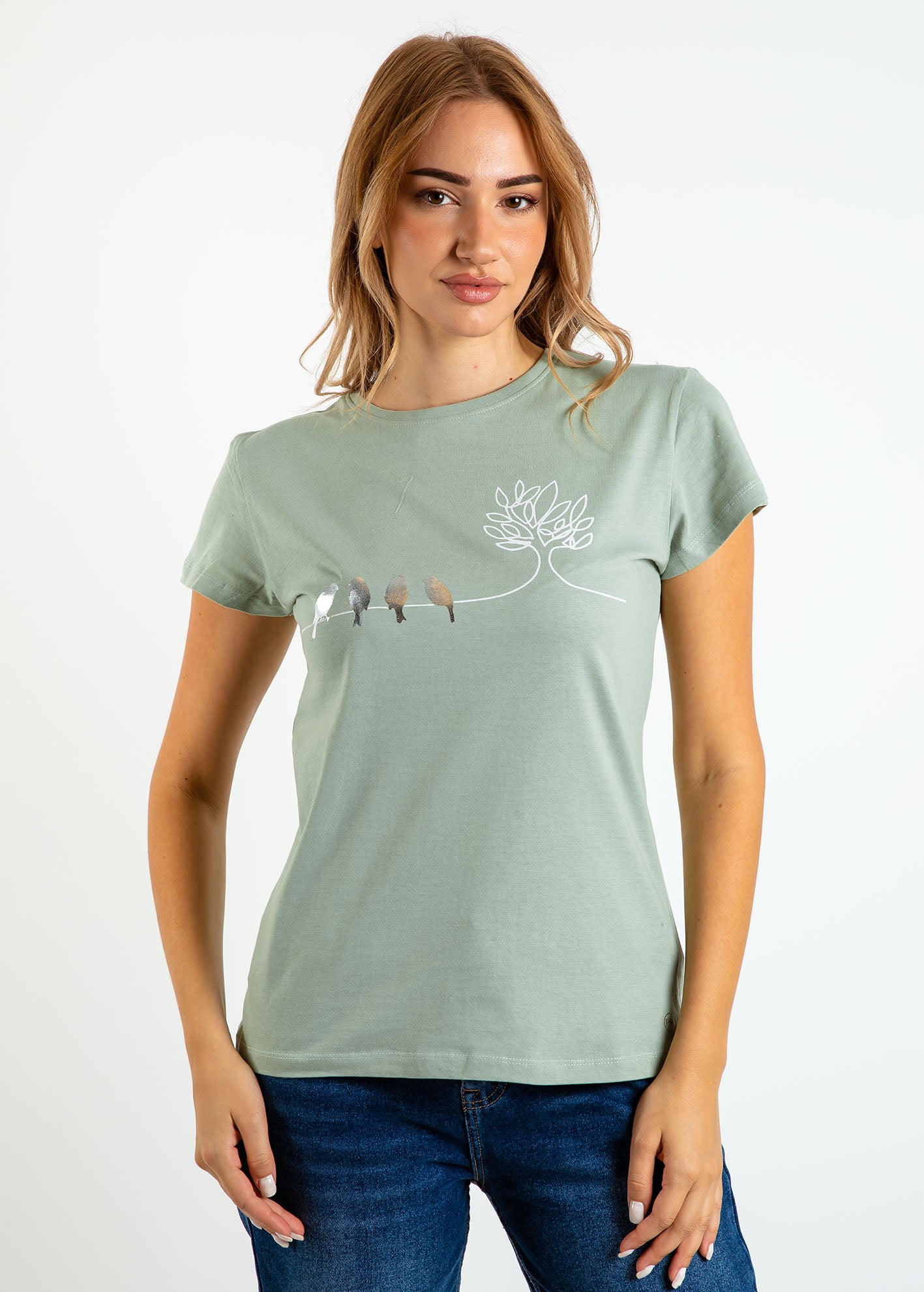Γυναικεία μπλούζα κοντομάνικη με τύπωμα 'Birds'-MINT